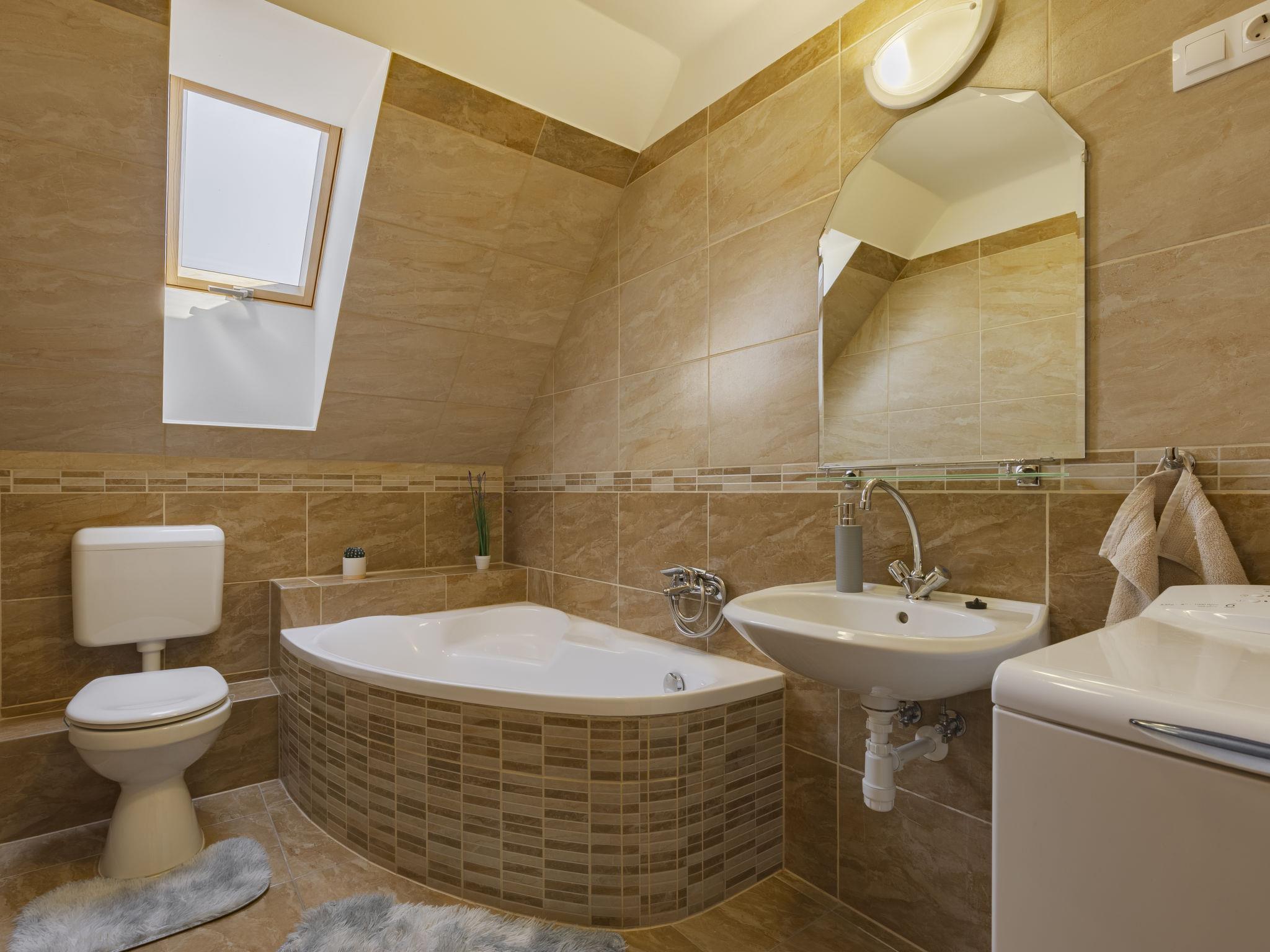 Balatonfenyves 25 km from Keszthely: Comfortable 2-family house, 2 storeys, renovated in 2022. 2 apartments in the property. In the resort, in the residential district, 700 m from the lake, 1.6 km from the beach. Private: property (fenced), small garden. Garden furniture, barbecue. In the house: WiFi, air conditioning, washing machine. Parking (for 2 cars) at the house. Grocery 200 m, supermarket 1.5 km, bicycle rental 1.5 km, grass beach 800 m, thermal baths "Csisztapuszta" 13 km. Tennis 1 km, riding stable 1.8 km, cycle lane 500 m, children's playground 1 km. Nearby attractions: Kereki Dino Park 47 km, Kis-Balaton Visitor Center 20 km, Festetics Castle 27 km, Keszthely Giant Wheel 27 km, Kristinus Wine Estate 14 km, Hévíz Thermal Bath 32 km. Owner lives in separate semi-detached house.
