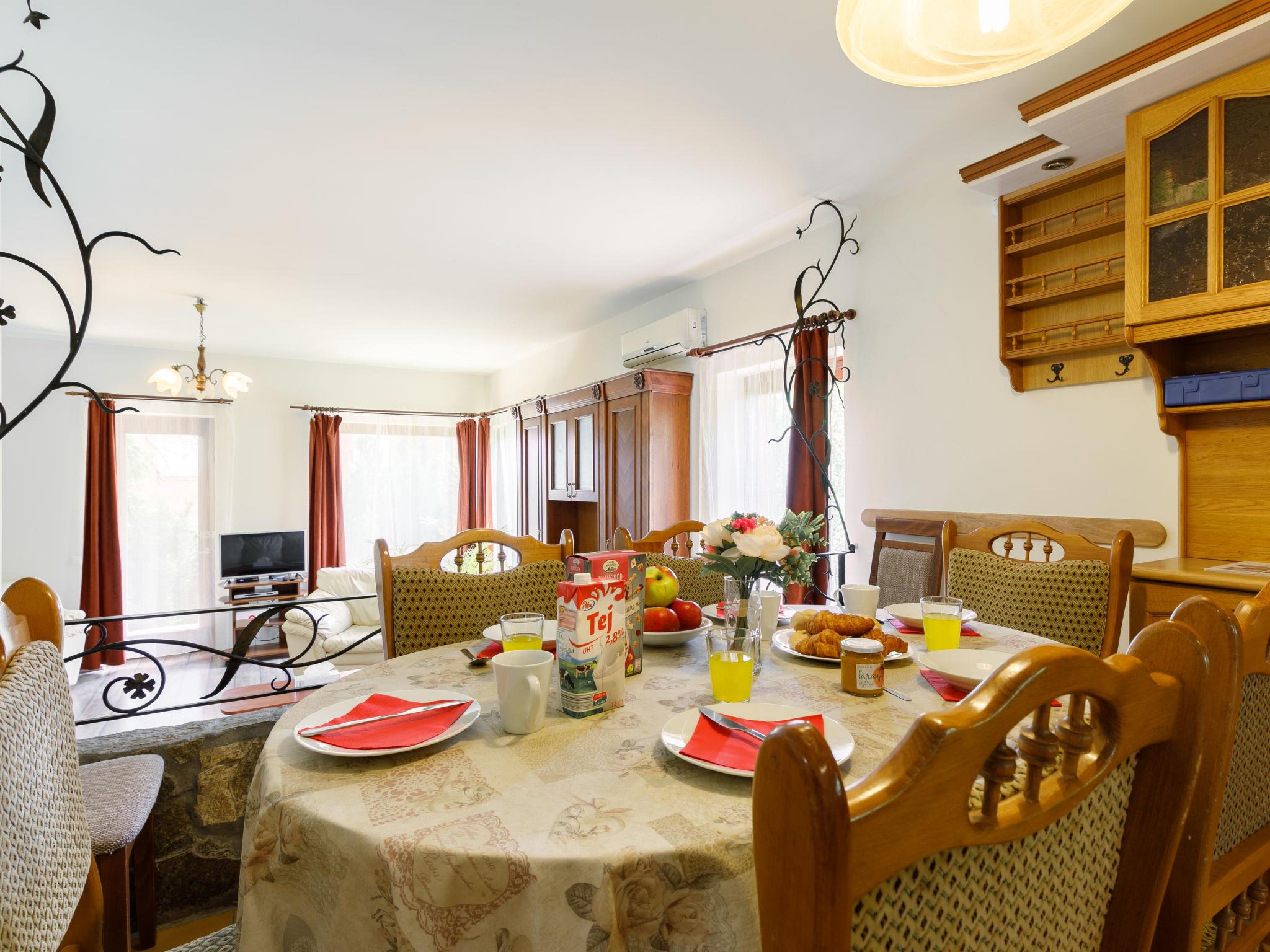 Balatonfüred 9 km from Tihany: Beautiful house "Albizia", 2 storeys, built in 2004. In the resort, in a central position, 1.2 km from the lake, 2 km from the beach. Private: beautiful garden 600 m2 (fenced) lawn and flowers, lawn for sunbathing. Fireplace. In the house: WiFi, fitness room, billiard table, central heating system, air conditioning. Supermarket 150 m, restaurant, bakery 200 m, café 300 m, bicycle rental 1 km, 3 minute walk to the centre, bus stop "Balatonfüred, városháza" 350 m, railway station "Balatonfüred" 1.8 km, grass beach 1.5 km, thermal baths "Hévíz" 66 km. Marina 1.5 km, golf course (18 hole) 12 km, sailing school 1.3 km, tennis 1 km, indoor tennis centre 2 km, riding stable 5 km, sports centre 2 km, cycle lane 10 m, children's playground 250 m. Nearby attractions: Tihany 7 km, Balaton Golf Club 9 km, Veszprém Zoo 18 km, BalatonBob Theme Park 20 km, Annagora Aquapark 2 km, Keszthely 60 km. Well-known lakes can easily be reached: Hévíz Thermal 65 km. Hiking paths: Balatonfüred 1 km. The keys‘ handover takes place by the agency Interhome in Balatonfüred, 1 km.