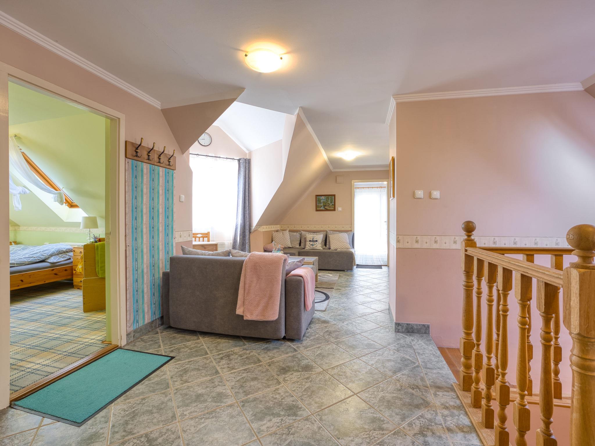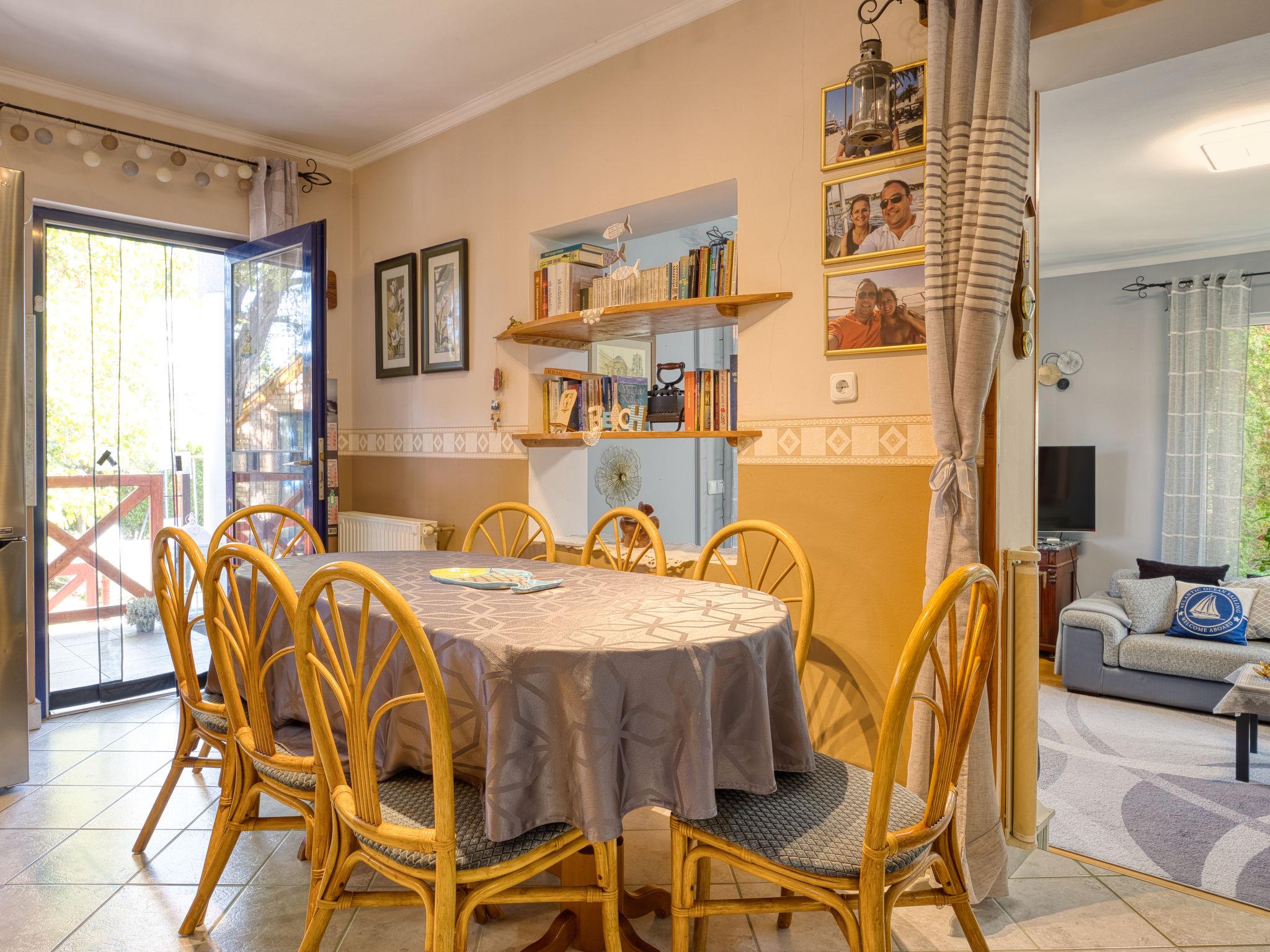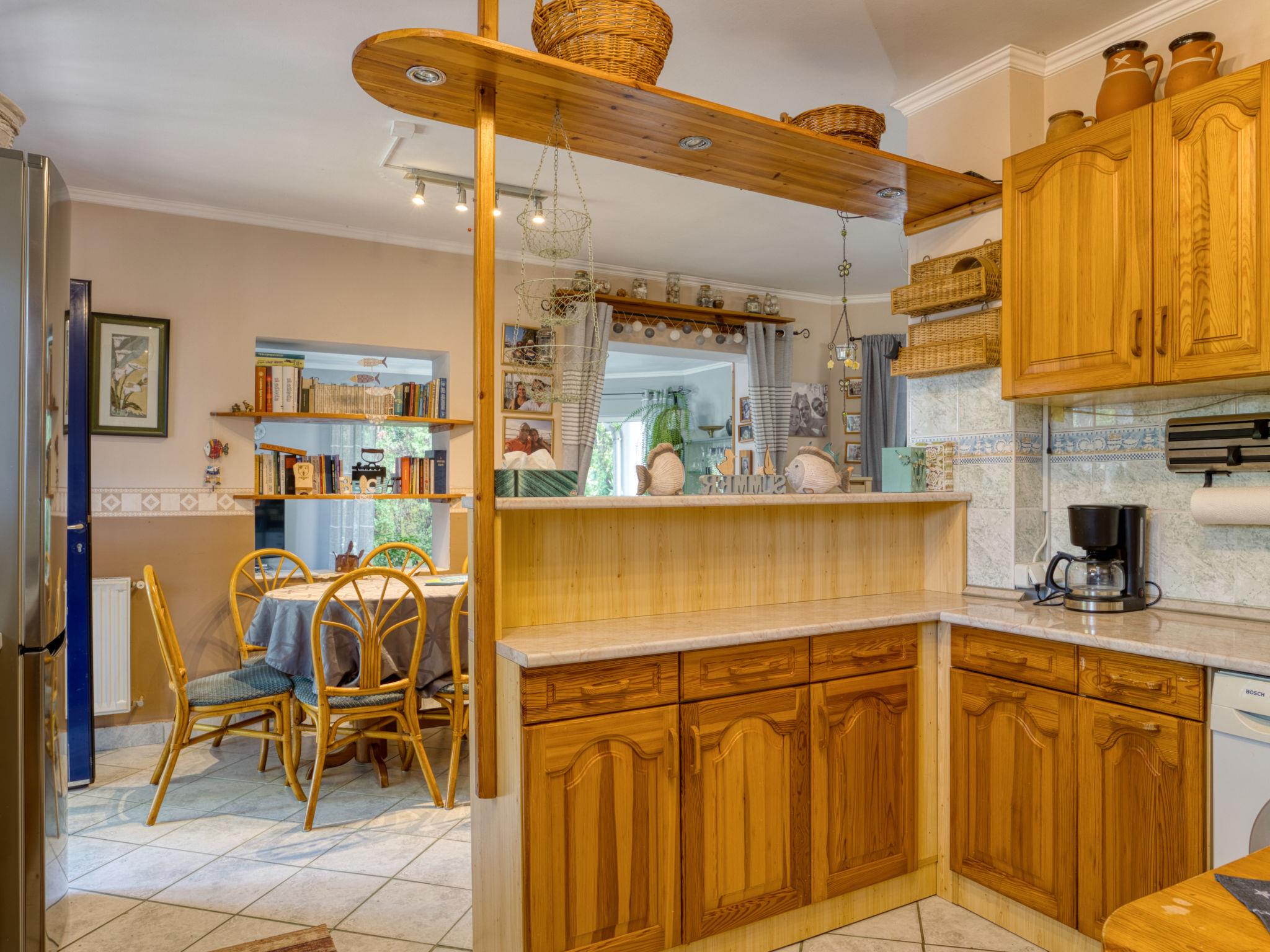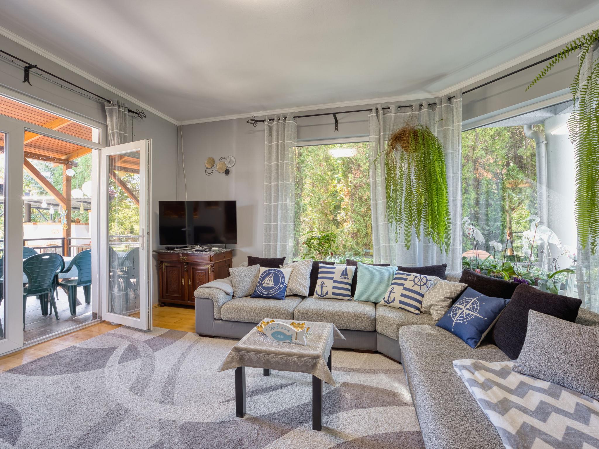 "Emöke", 7-room house 130 m2 on 2 levels. Cosy furnishings: living room with satellite TV (flat screen). Exit to the terrace. 1 room with 1 french bed. Open kitchen (oven, dishwasher, 4 ceramic glass hob hotplates, toaster, kettle, microwave, freezer, electric coffee machine) with dining table. Exit to the terrace. Shower/WC, sep. WC. No heating option. Upper floor: living room. 2 rooms, each room with 1 french bed (180 cm, length 200 cm). 1 room with 1 french bed (180 cm, length 200 cm). Exit to the balcony. 1 room with 1 sofabed. Exit to the balcony. Small kitchen (3 gas rings). Shower/WC. No heating option. Carpet. Balcony, terrace roofed, patio. Terrace furniture, barbecue, deck chairs (6). Facilities: washing machine, mosquito net, children's high chair, baby cot. Internet (WiFi, free). Please note: non-smoking house. MA19016218