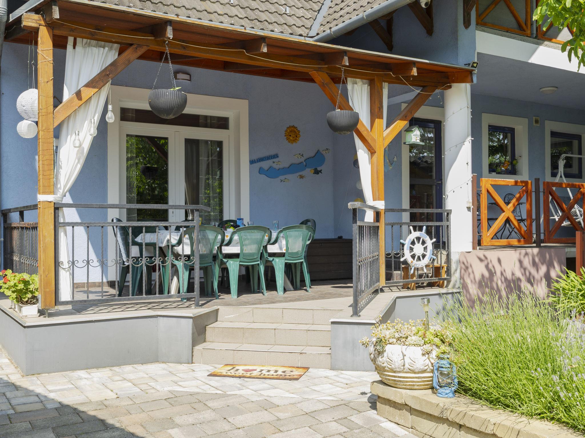 Balatonederics 12 km from Badacsony: Beautiful single-family house "Emöke", detached. In the district of Balatonederics 500 m from the centre of Baltonederics, 5 km from the centre of Balatongyörök, 12 km from the centre of Keszthely, in the residential district, 1.5 km from the lake, 1.4 km from the beach. Private: property 1'000 m2 (fenced), well-kept garden with lawn and wildlife garden, swimming pool (4 x 2 m, depth 120 cm, seasonal availability: 15.May. - 25.Sep.). Barbecue, children's playground (swing, sandbox). In the house: air conditioning. Stepped path (5 steps) to the house. Parking on the premises. Grocery 500 m, supermarket 14 km, restaurant 600 m, thermal baths "Hévíz" 20 km. Tennis 8 km, minigolf 8 km, riding stable 4 km, cycle lane 1.2 km, children's playground 550 m. Nearby attractions: Tapolca Lake Cave Visitor Centre 13 km, Festetics Nature House visitor center 13 km, Szigliget Castle 6 km, Keszthely Giant Wheel 15 km, Hévíz Thermal Bath 20 km, Festetics Castle 15 km.
