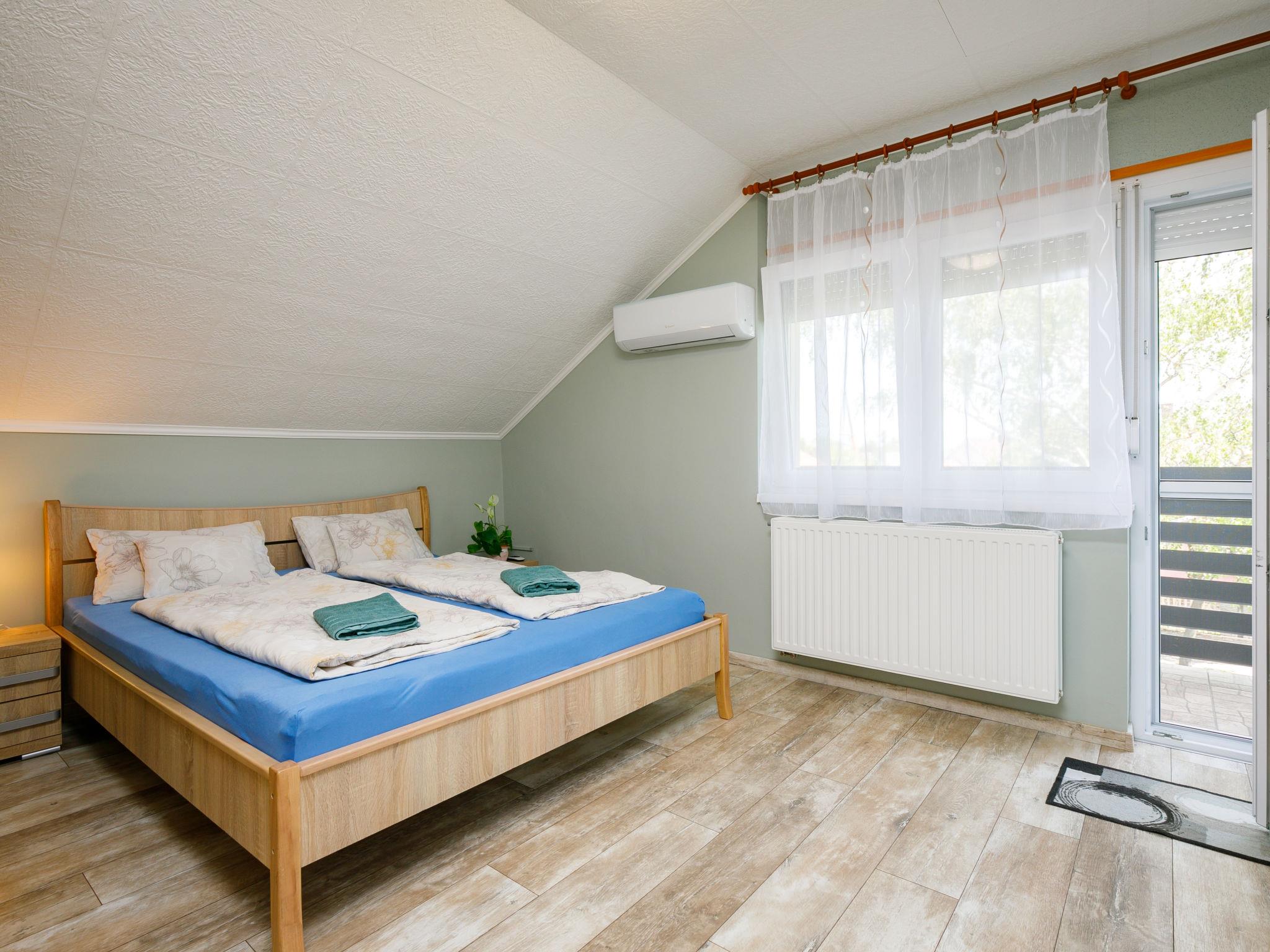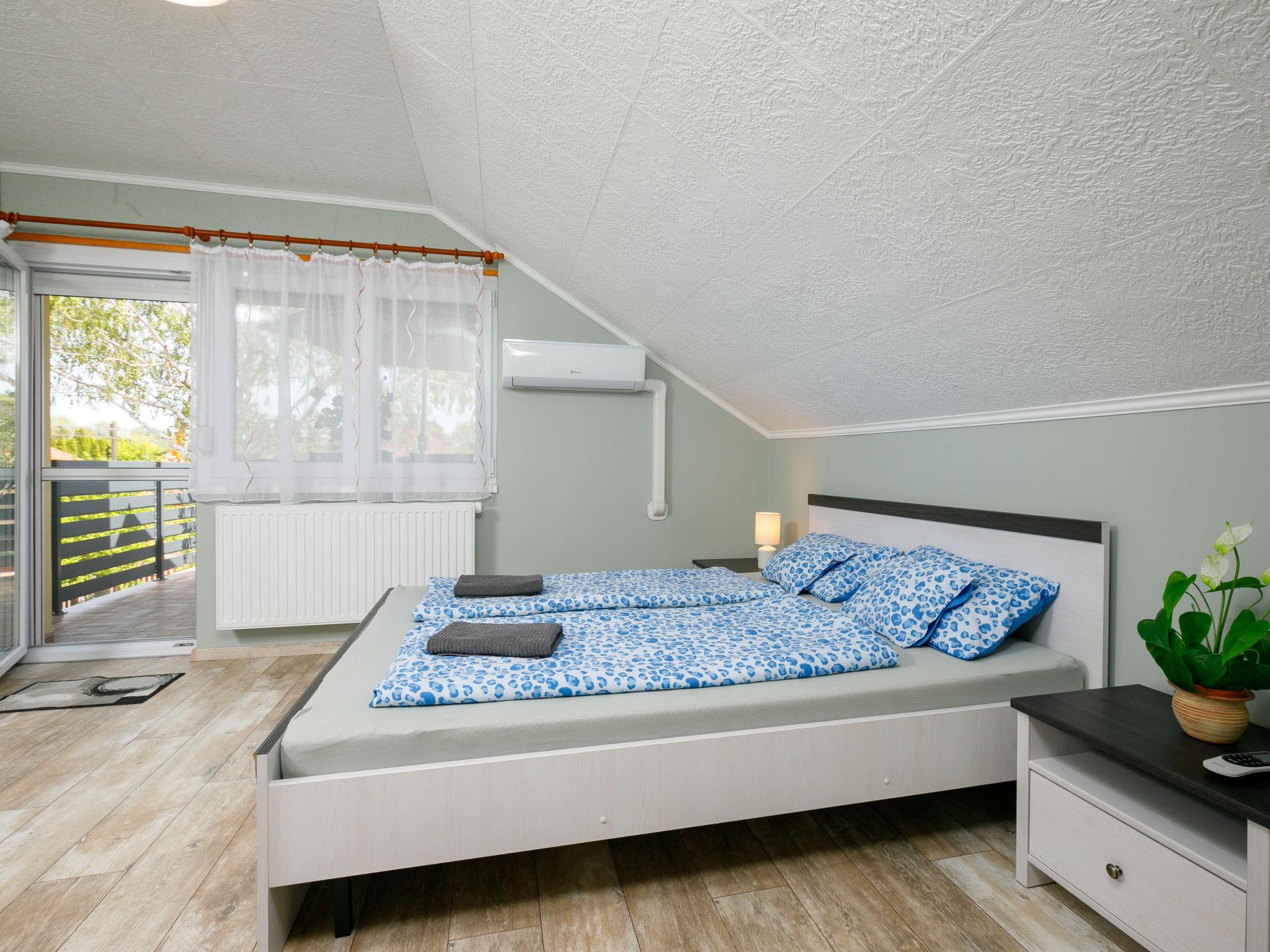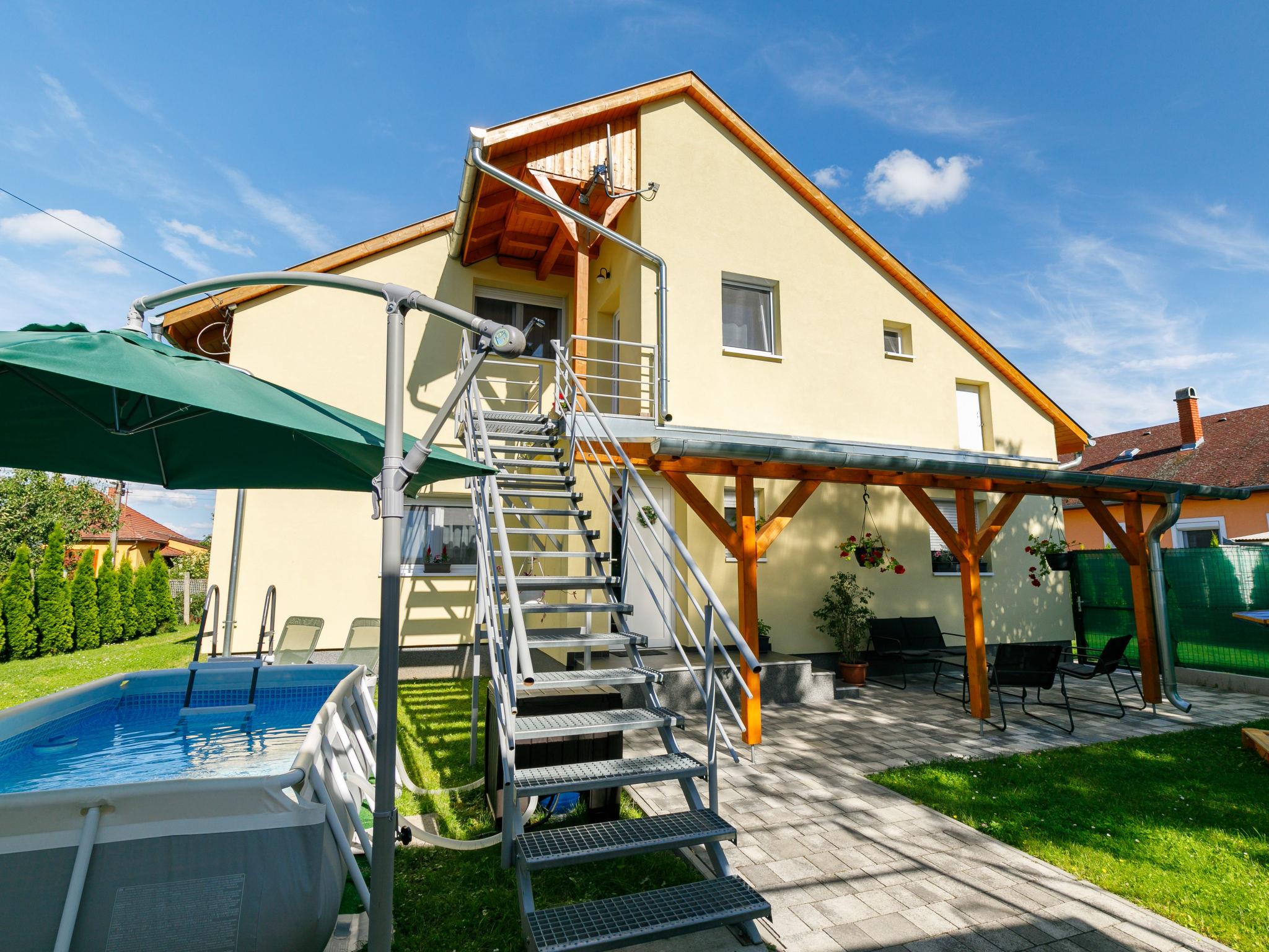Balatonkeresztúr 20 km from Keszthely: Modern 2-family house, 2 storeys in 2022. 570 m from the lake, 700 m from the beach. Private: garden (fenced), swimming pool (above ground) (3 x 2 m, seasonal availability: 01.Jun. - 15.Sep.). Garden furniture. In the house: WiFi, central heating system, air conditioning, washing machine. Parking (for 2 cars) on the premises. Grocery 260 m, supermarket 9 km, restaurant 800 m, bakery 500 m, café 450 m, bicycle rental 8 km, thermal baths "Hévíz" 25 km. Sailing school 1 km, tennis 900 m, cycle lane 50 m, children's playground 450 m. Nearby attractions: Bella Zoo Siófok 73 km, Szántód Ferry 52 km, Adventure Park Zamárdi 60 km, Festetics Castle 20 km, Hévíz Thermal Bath 25 km, Kis-Balaton Visitor Centre 14 km.