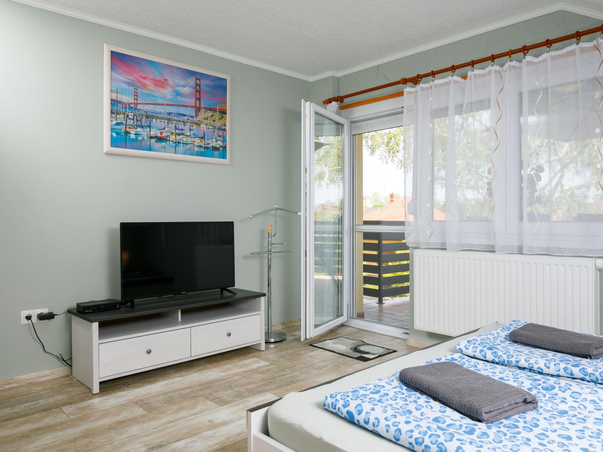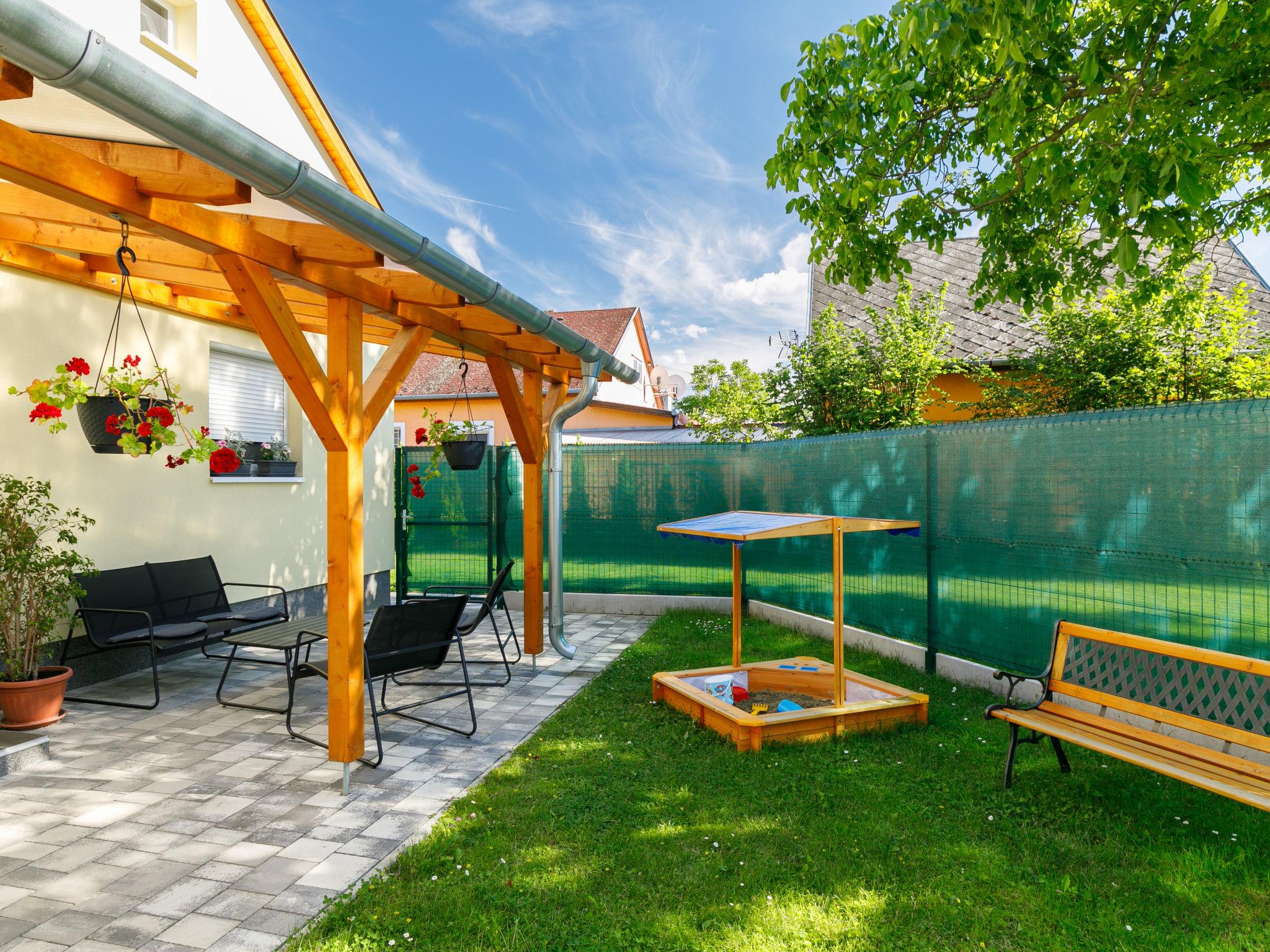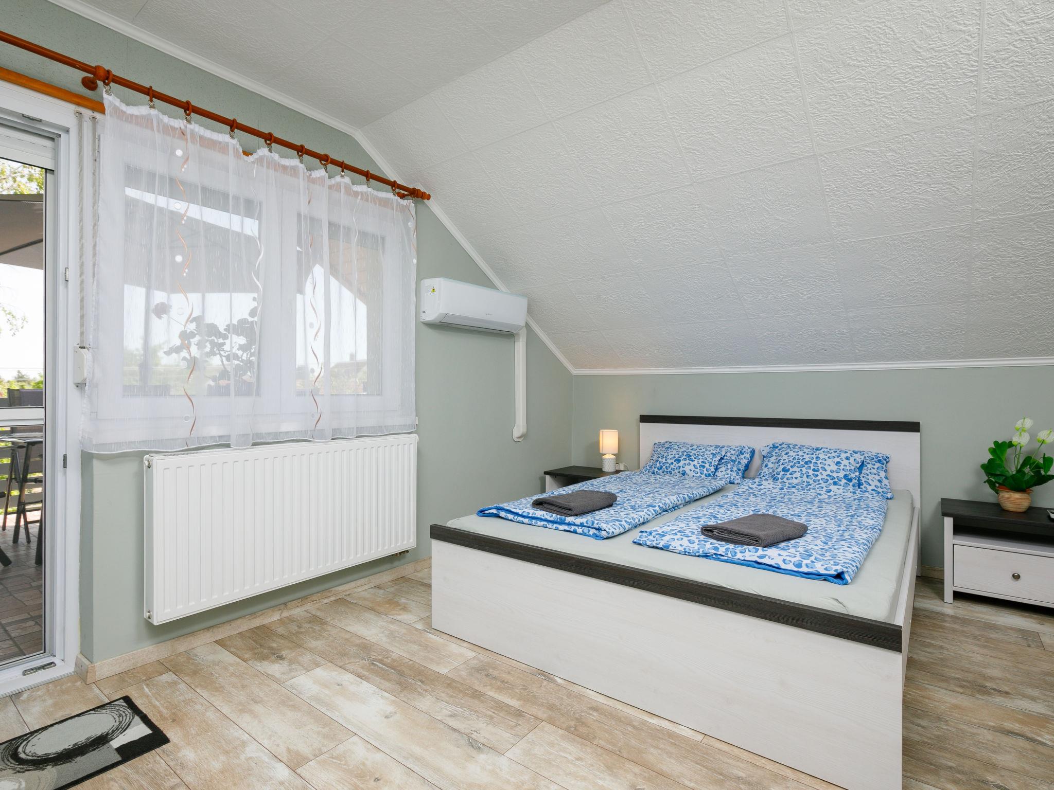 Balatonkeresztúr 20 km from Keszthely: Modern 2-family house, 2 storeys in 2022. 570 m from the lake, 700 m from the beach. Private: garden (fenced), swimming pool (above ground) (3 x 2 m, seasonal availability: 01.Jun. - 15.Sep.). Garden furniture. In the house: WiFi, central heating system, air conditioning, washing machine. Parking (for 2 cars) on the premises. Grocery 260 m, supermarket 9 km, restaurant 800 m, bakery 500 m, café 450 m, bicycle rental 8 km, thermal baths "Hévíz" 25 km. Sailing school 1 km, tennis 900 m, cycle lane 50 m, children's playground 450 m. Nearby attractions: Bella Zoo Siófok 73 km, Szántód Ferry 52 km, Adventure Park Zamárdi 60 km, Festetics Castle 20 km, Hévíz Thermal Bath 25 km, Kis-Balaton Visitor Centre 14 km.
