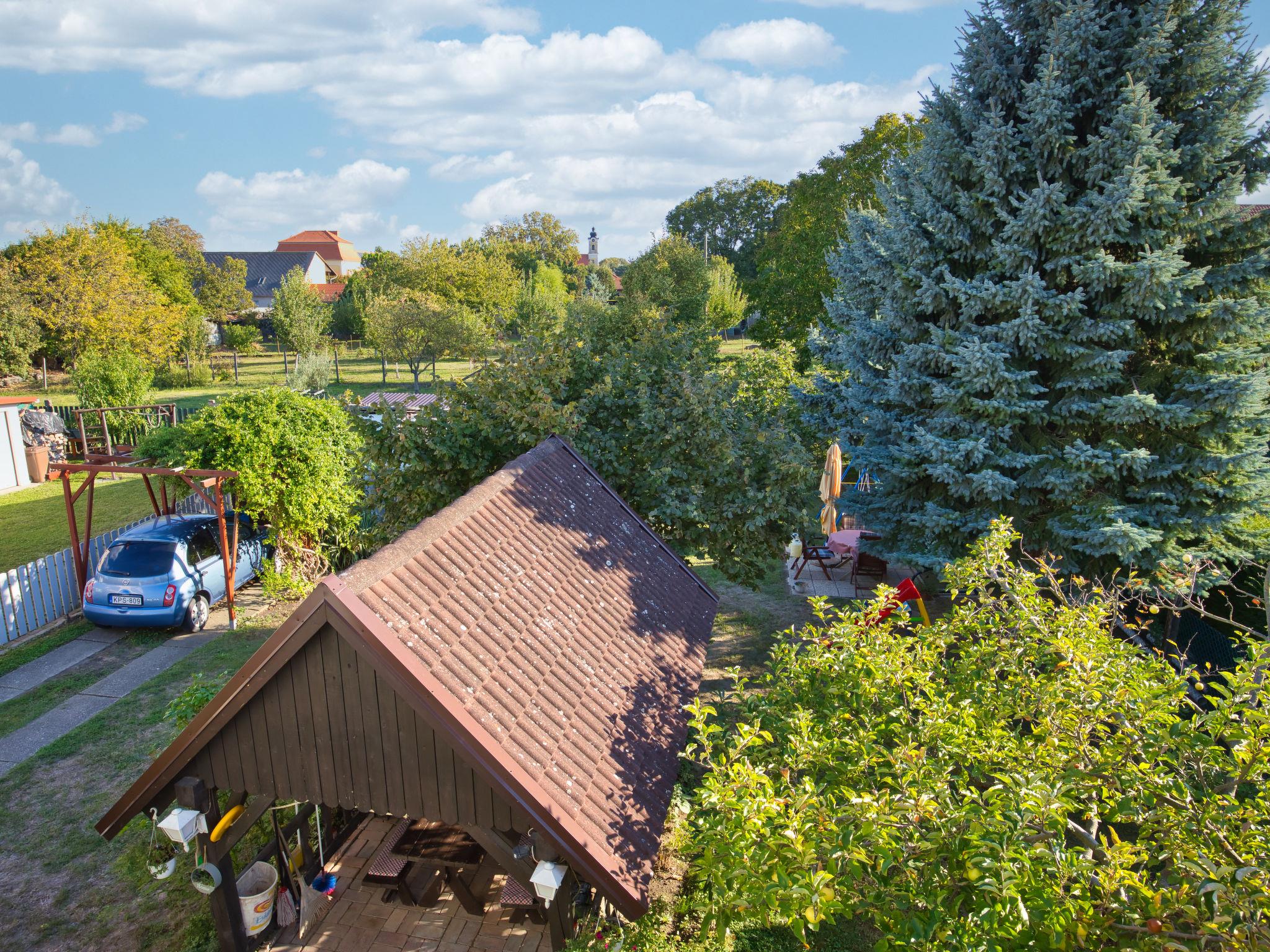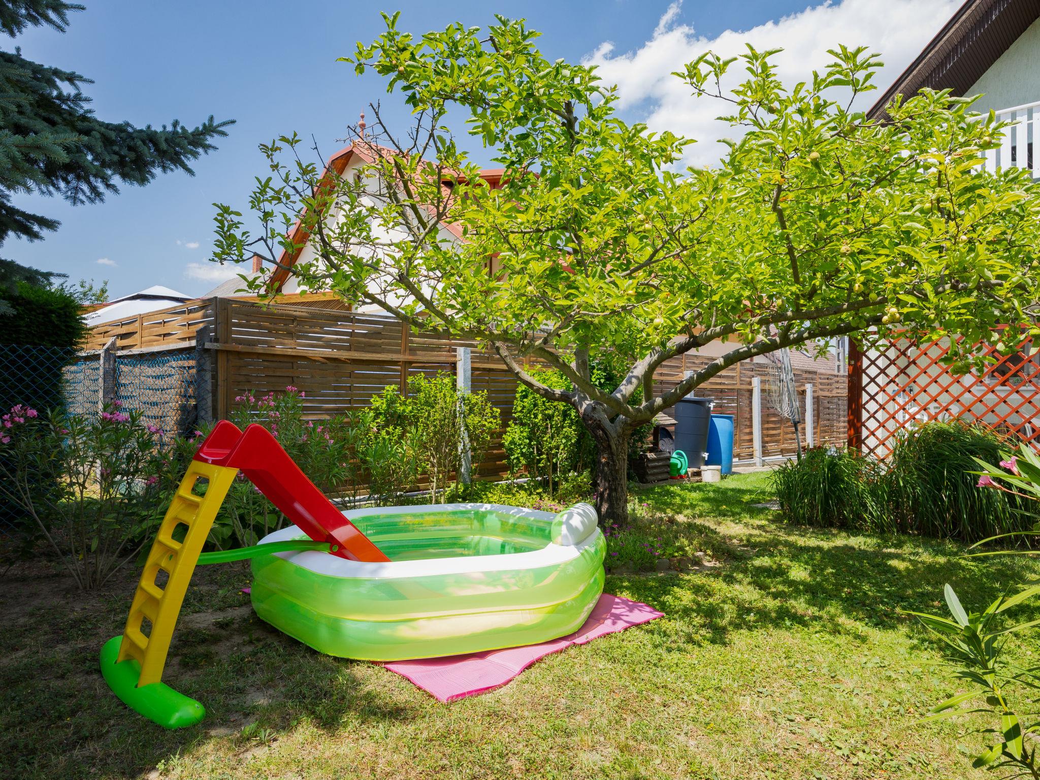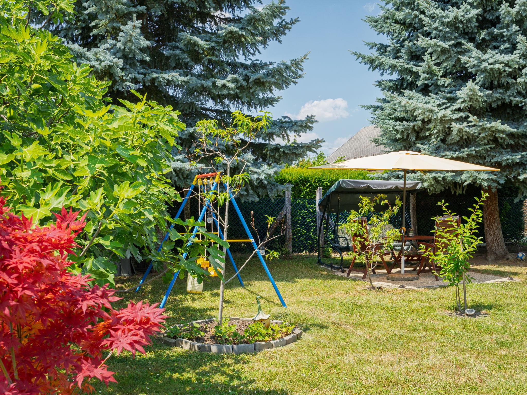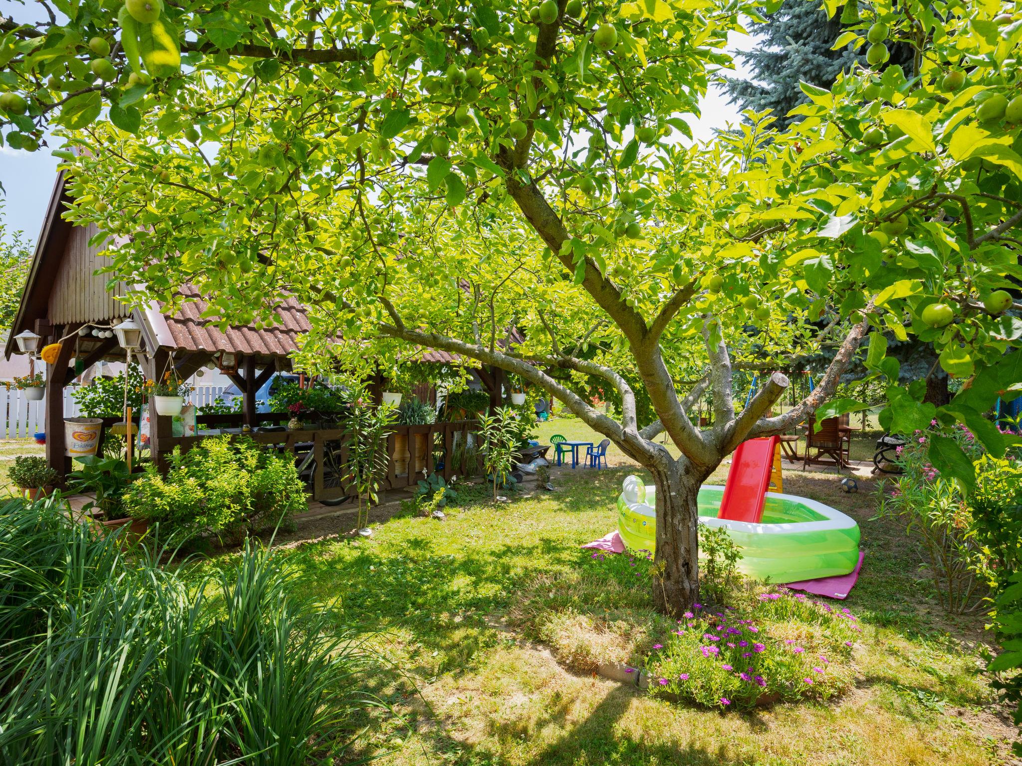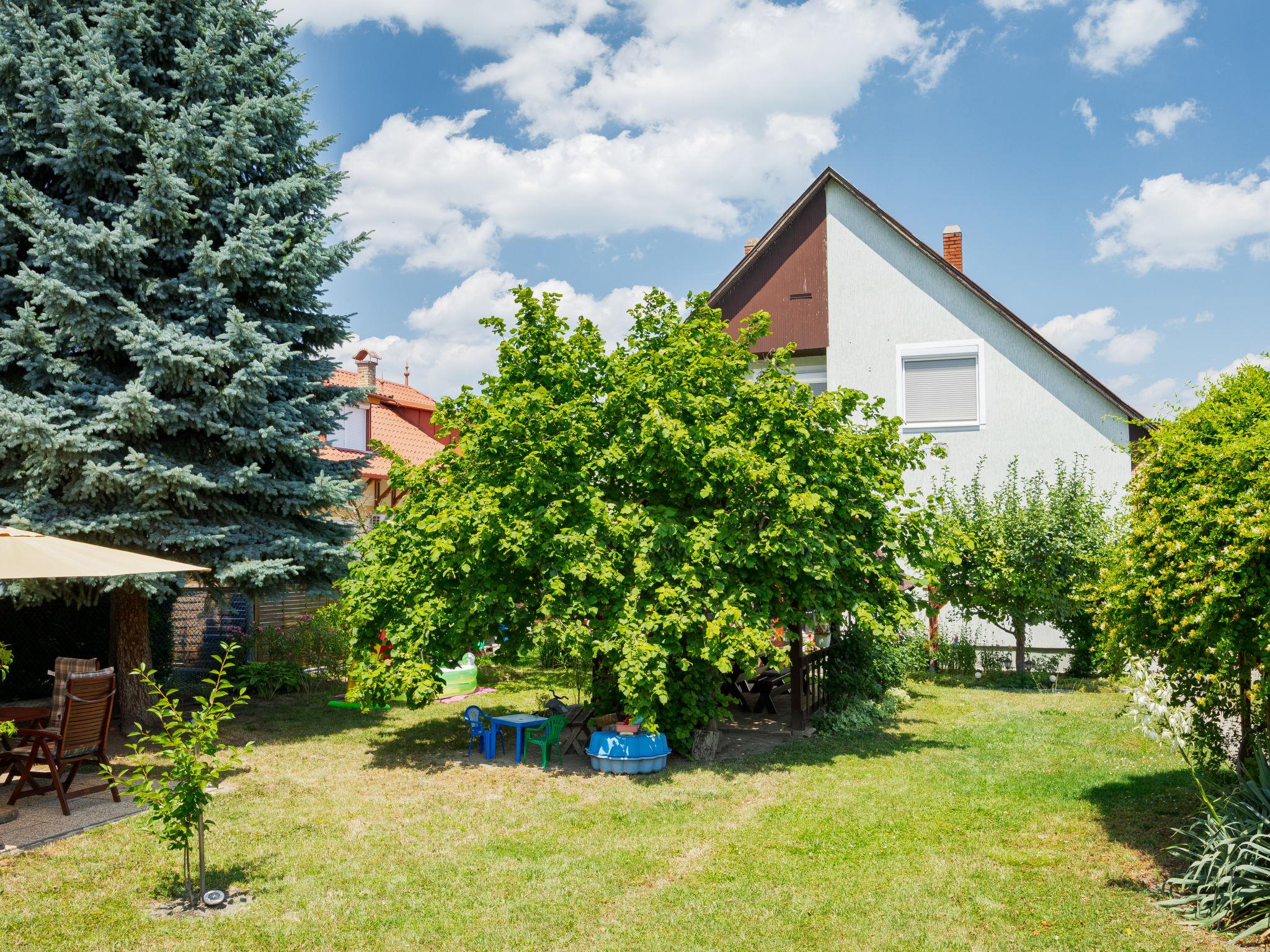 Balatonkeresztúr 19 km from Keszthely: Large 2-family house, 2 storeys. In the resort, in a quiet position in the residential district, 780 m from the lake, 650 m from the beach, in a cul-de-sac. For shared use: property (fenced). Private: garden. Pergola, garden furniture, barbecue (slide, sandbox). In the house: WiFi, central heating system. Parking (for 2 cars) on the premises. Grocery 400 m, supermarket 9 km, restaurant, bakery 400 m, bicycle rental 9 km, railway station "Balatonmáriafürdo" 1 km, thermal baths "Hévíz" 26 km. Golf course (18 hole) 36 km, tennis 8 km, riding stable 30 km, cycle lane 600 m, children's playground 270 m, fishing possibilities 750 m. Nearby attractions: Kis-Balaton Visitor Center 14 km, Festetics Nature House visitor center 25 km, Keszthely Giant Wheel 19 km, Festetics Castle 20 km, Kristinus Wine Estate 8 km, Demango Horse Riding 30 km. Please note: baby equipment on request. The owner lives in the same residence.