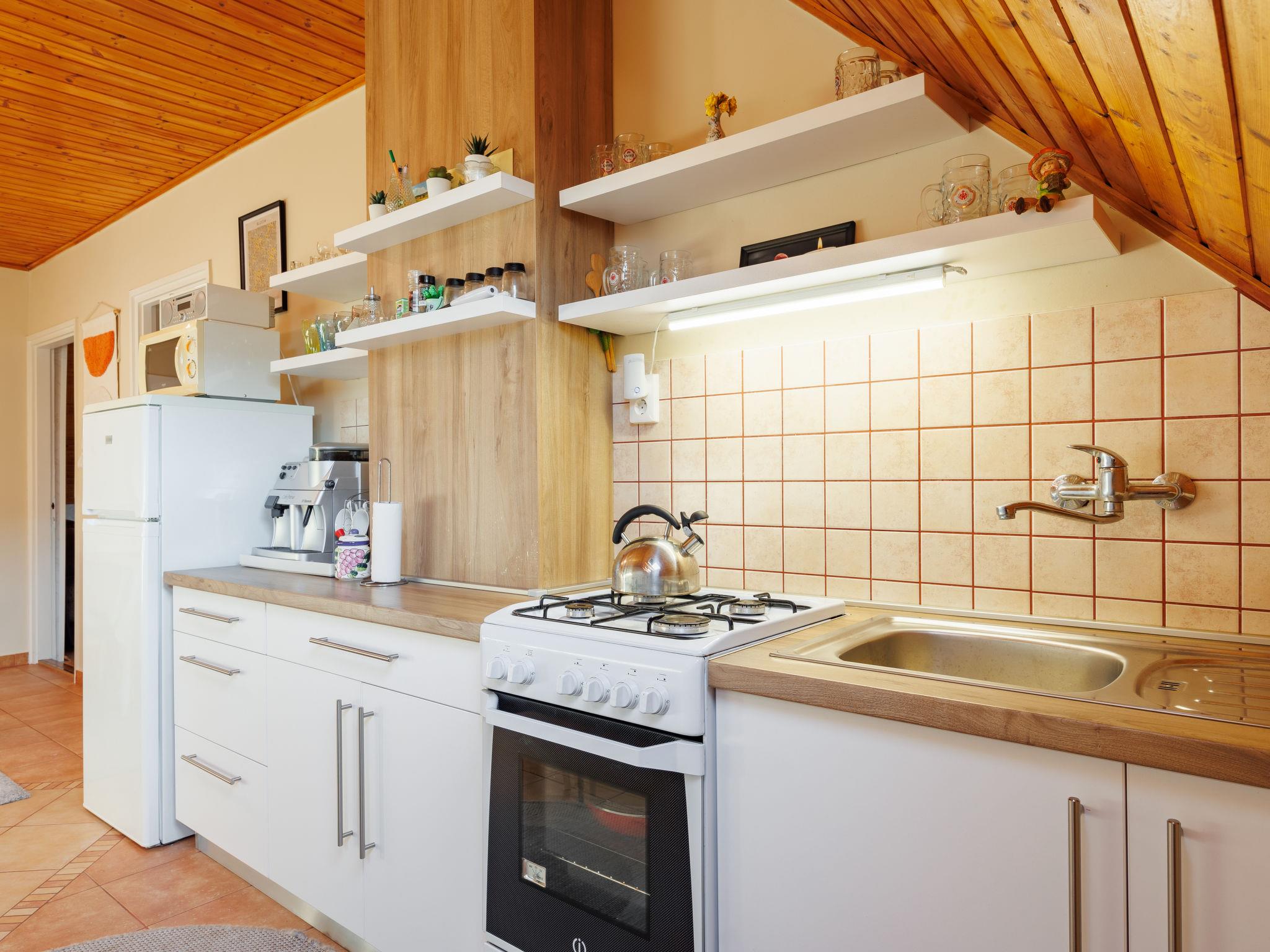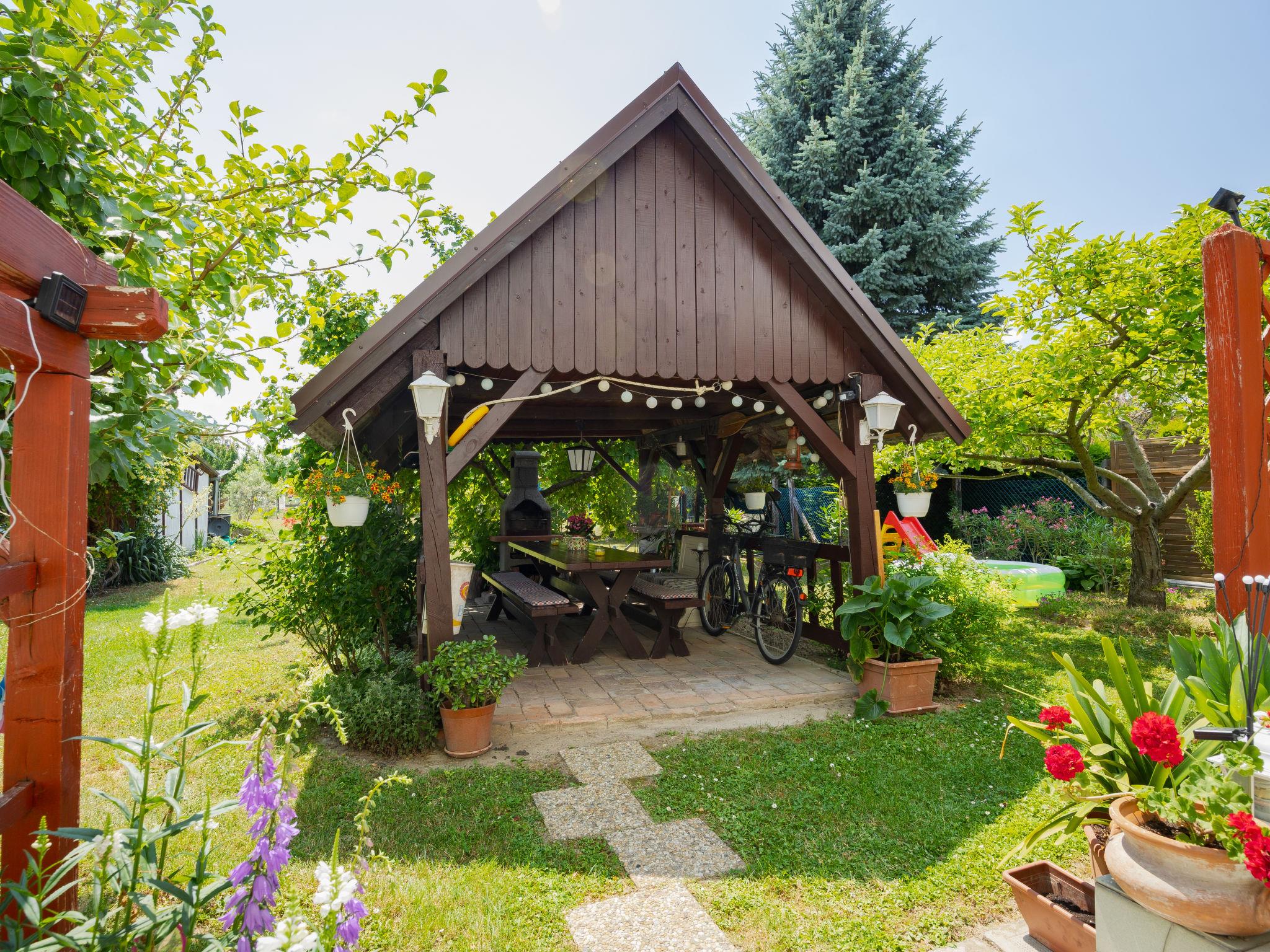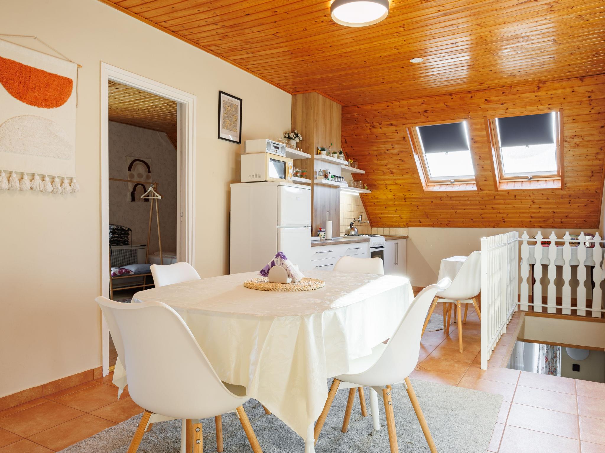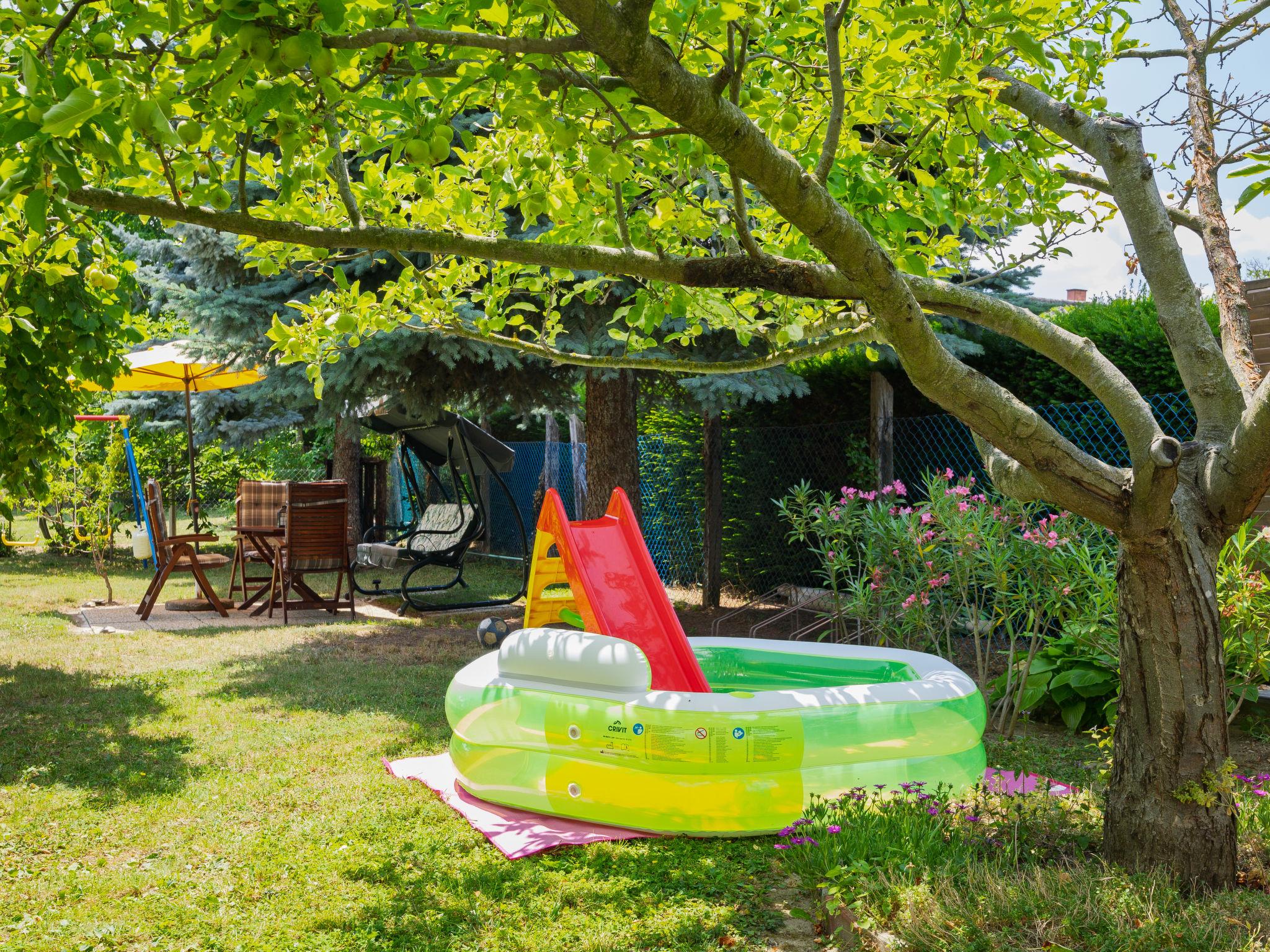 Balatonkeresztúr 19 km from Keszthely: Large 2-family house, 2 storeys. In the resort, in a quiet position in the residential district, 780 m from the lake, 650 m from the beach, in a cul-de-sac. For shared use: property (fenced). Private: garden. Pergola, garden furniture, barbecue (slide, sandbox). In the house: WiFi, central heating system. Parking (for 2 cars) on the premises. Grocery 400 m, supermarket 9 km, restaurant, bakery 400 m, bicycle rental 9 km, railway station "Balatonmáriafürdo" 1 km, thermal baths "Hévíz" 26 km. Golf course (18 hole) 36 km, tennis 8 km, riding stable 30 km, cycle lane 600 m, children's playground 270 m, fishing possibilities 750 m. Nearby attractions: Kis-Balaton Visitor Center 14 km, Festetics Nature House visitor center 25 km, Keszthely Giant Wheel 19 km, Festetics Castle 20 km, Kristinus Wine Estate 8 km, Demango Horse Riding 30 km. Please note: baby equipment on request. The owner lives in the same residence.