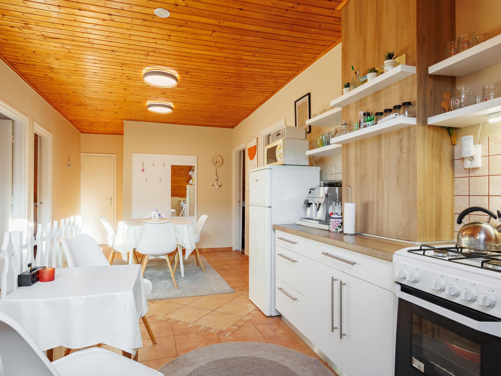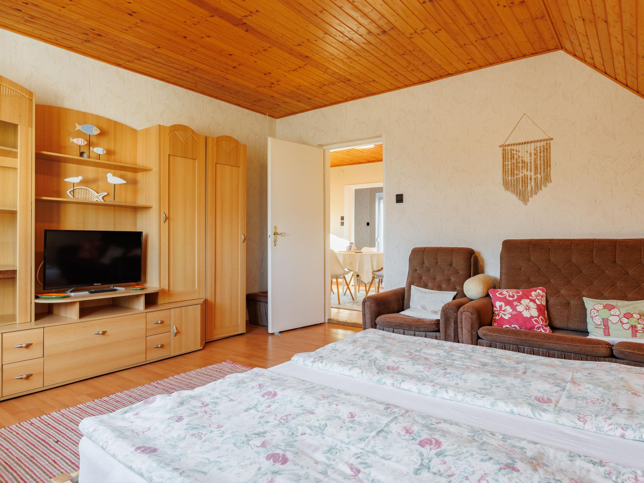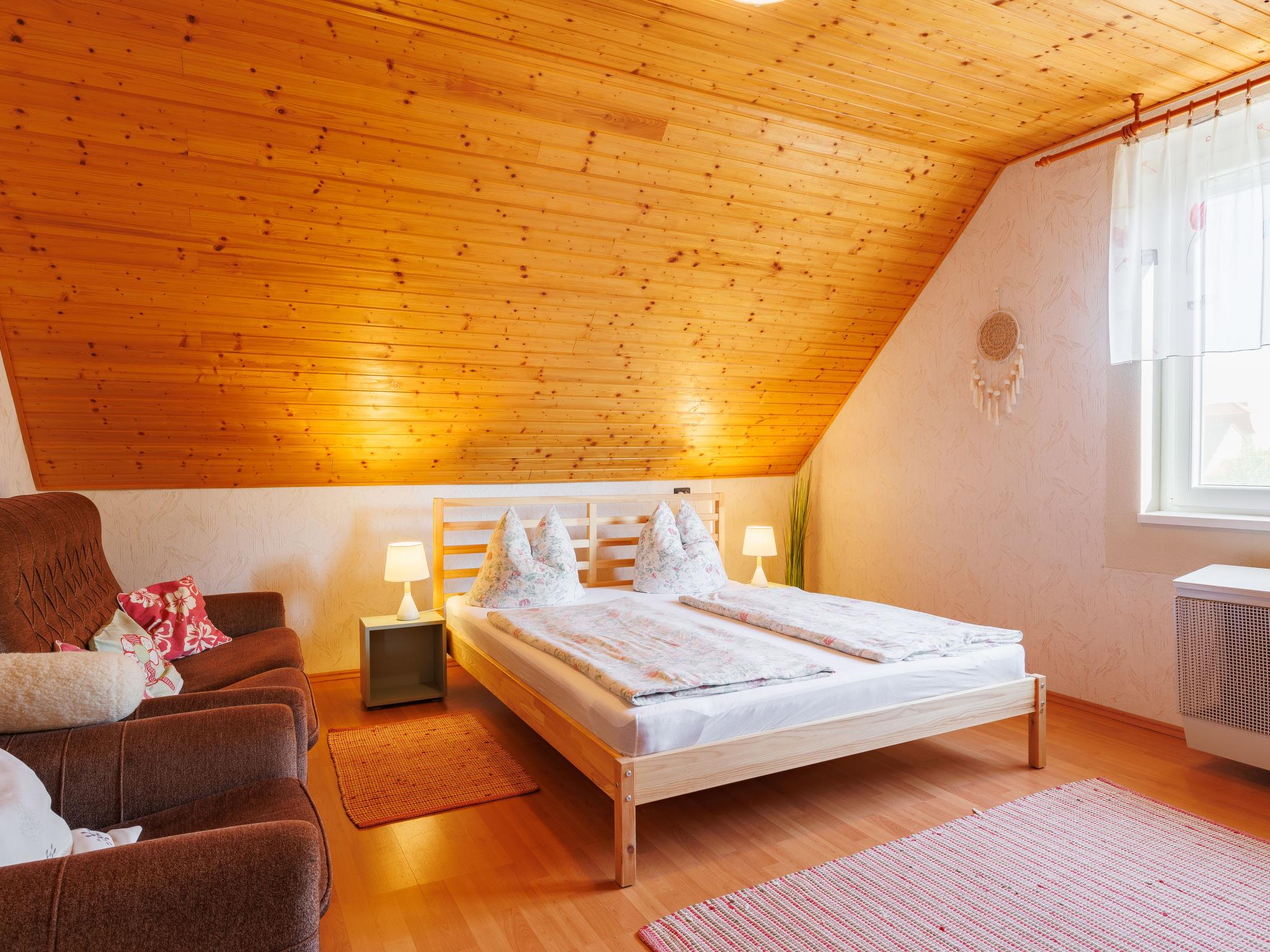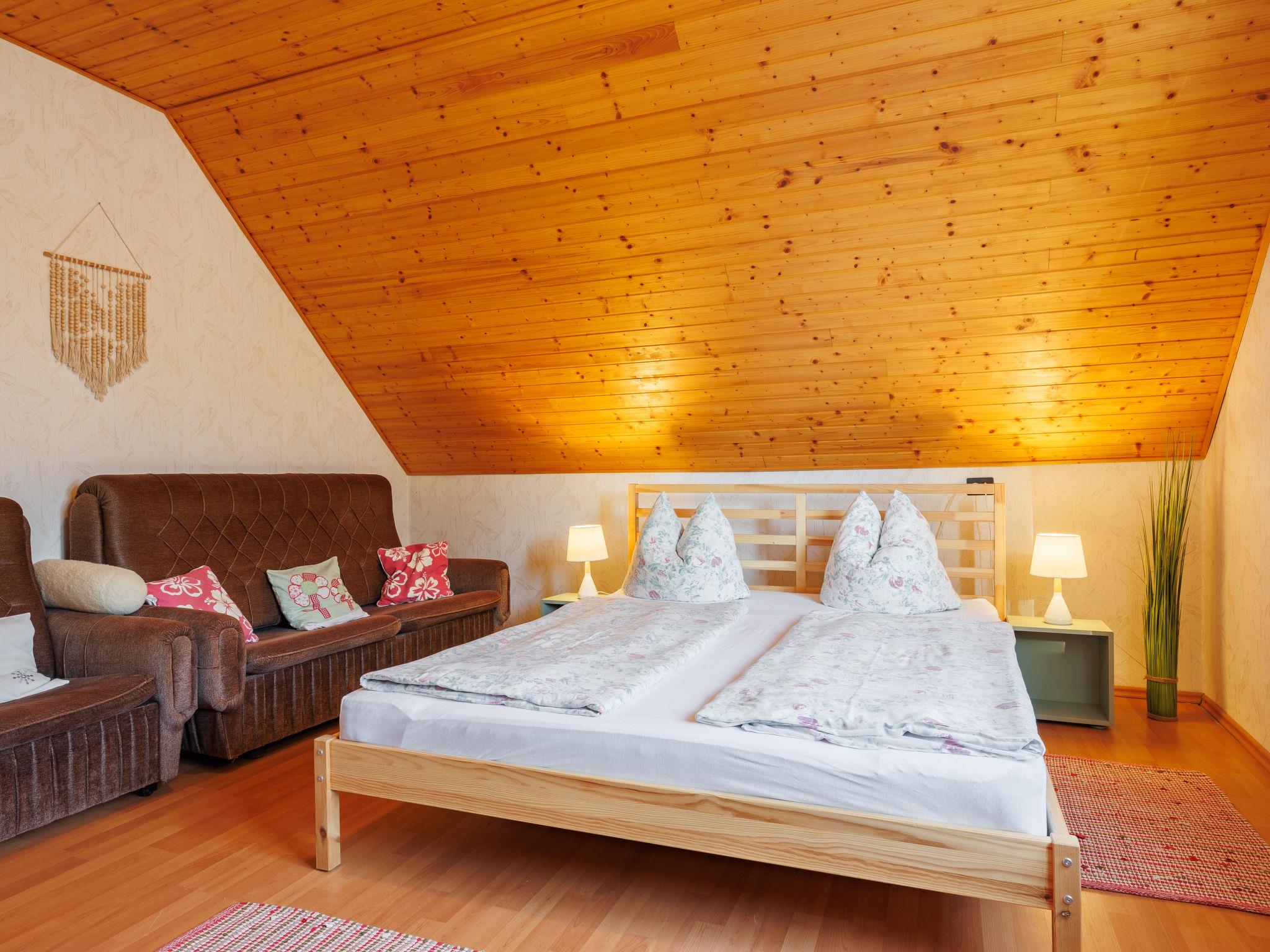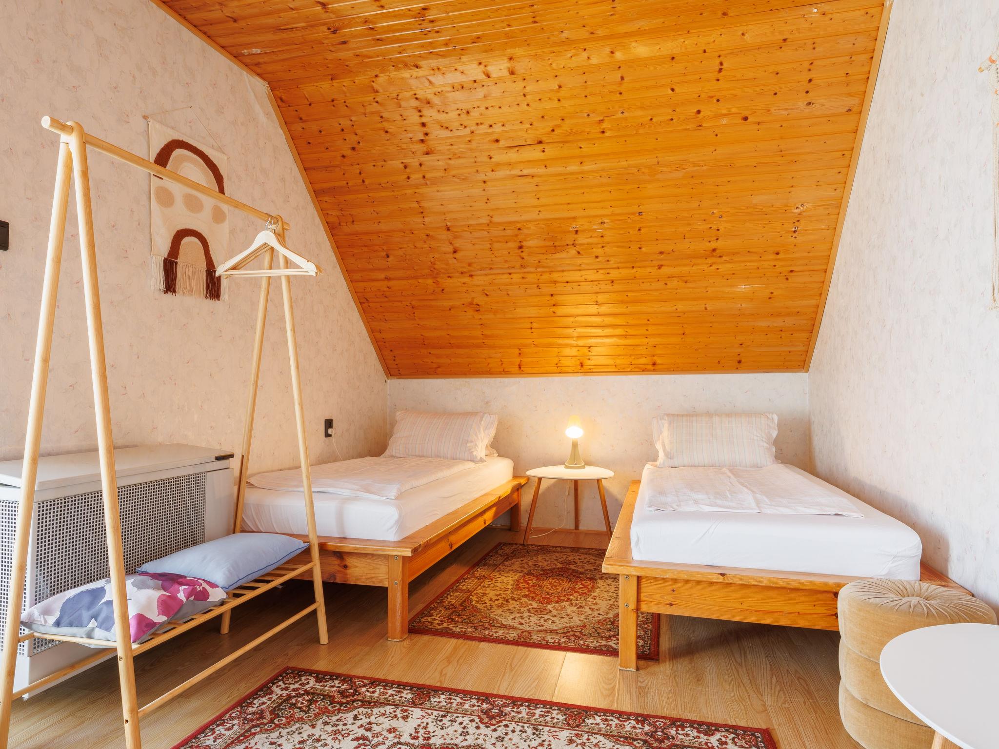 Balatonkeresztúr 19 km from Keszthely: Large 2-family house, 2 storeys. In the resort, in a quiet position in the residential district, 780 m from the lake, 650 m from the beach, in a cul-de-sac. For shared use: property (fenced). Private: garden. Pergola, garden furniture, barbecue (slide, sandbox). In the house: WiFi, central heating system. Parking (for 2 cars) on the premises. Grocery 400 m, supermarket 9 km, restaurant, bakery 400 m, bicycle rental 9 km, railway station "Balatonmáriafürdo" 1 km, thermal baths "Hévíz" 26 km. Golf course (18 hole) 36 km, tennis 8 km, riding stable 30 km, cycle lane 600 m, children's playground 270 m, fishing possibilities 750 m. Nearby attractions: Kis-Balaton Visitor Center 14 km, Festetics Nature House visitor center 25 km, Keszthely Giant Wheel 19 km, Festetics Castle 20 km, Kristinus Wine Estate 8 km, Demango Horse Riding 30 km. Please note: baby equipment on request. The owner lives in the same residence.