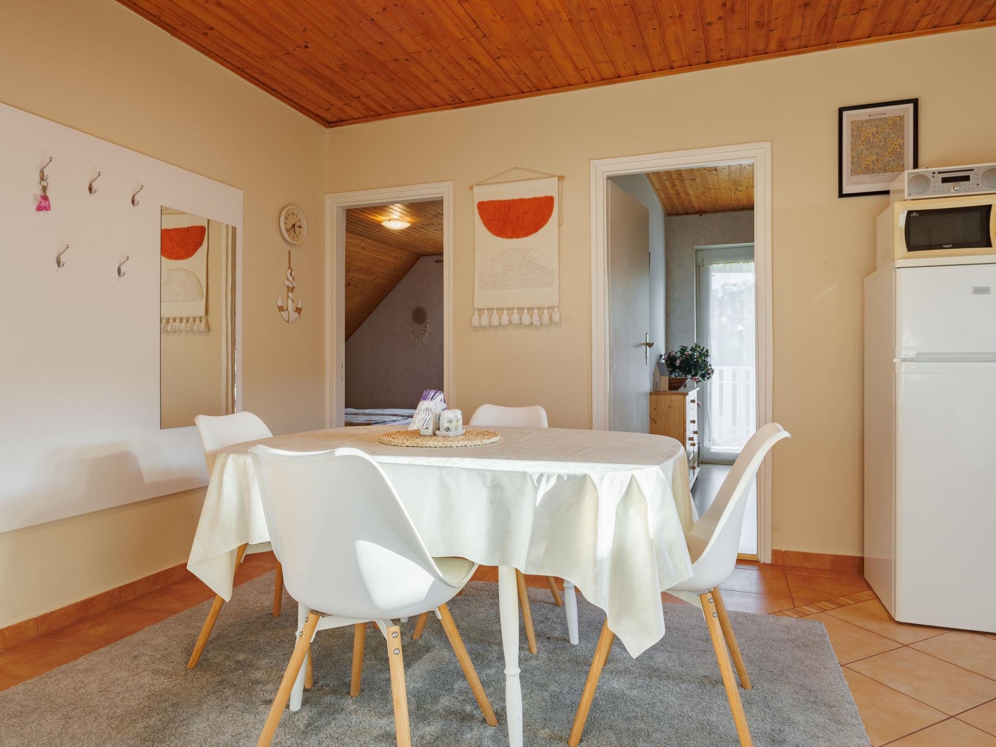 "Noisette", 3-room apartment on the upper floor. Partly with sloping ceilings, renovated in 2023, practical and comfortable furnishings: open dining room with dining table and kitchen corner. 1 double bedroom with 1 french bed (160 cm, length 190 cm), digital TV. 1 double bedroom with 1 french bed (160 cm, length 190 cm), digital TV. 1 room with 2 beds (90 cm, length 190 cm). Exit to the balcony. Open kitchen (oven, Gas stove, 4 gas rings, kettle, microwave, freezer, electric coffee machine). Shower, sep. WC. Heating (extra). Balcony, south facing position. Balcony furniture. Facilities: mosquito net, children's high chair, baby cot. Internet (WiFi). MA20018804