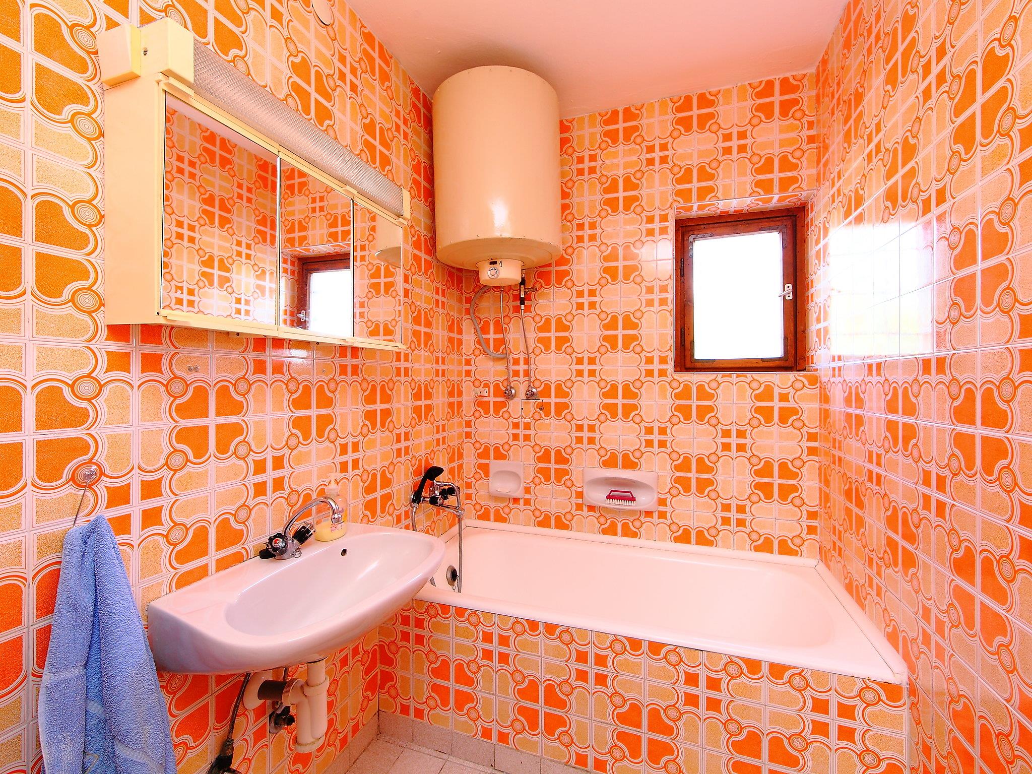 3-room semi-detached house 75 m2. Practical furnishings: living/dining room with satellite TV. Exit to the terrace. Kitchen (3 hot plates, oven). Bathroom, shower, sep. WC. No heating option. Upper floor: (spiral staircase), 1 room with 1 french bed. Exit to the balcony. 1 room with 2 beds. Terrace furniture. Parking (fenced). MA19019104
