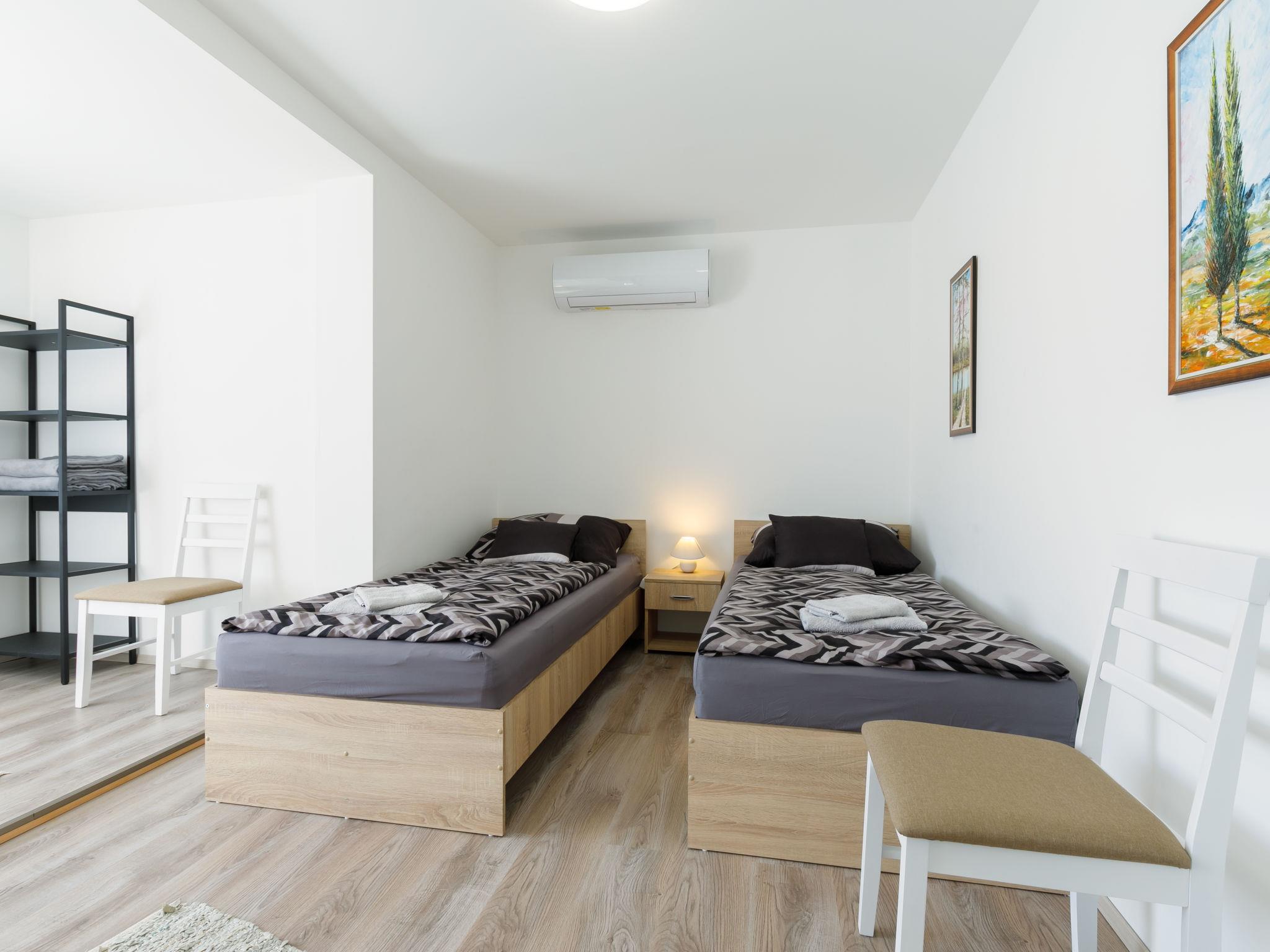 4-room apartment 55 m2, on the upper floor. Object suitable for 4 adults. Bright, renovated in 2022, very modern and stylish furnishings: entrance hall. Open living/dining room with satellite TV and flat screen. Exit to the balcony. 2 double bedrooms, each room with 2 beds. Small kitchen (2 hot plates, toaster, kettle, microwave, electric coffee machine) with dining table. Bath/shower/WC. Heating, air-conditioning. Large balcony. Balcony furniture, barbecue. Very beautiful view of the garden and the countryside. Facilities: Internet (WiFi, free). The owner lives in the same house on the ground floor, with a separate entrance. MA22050166