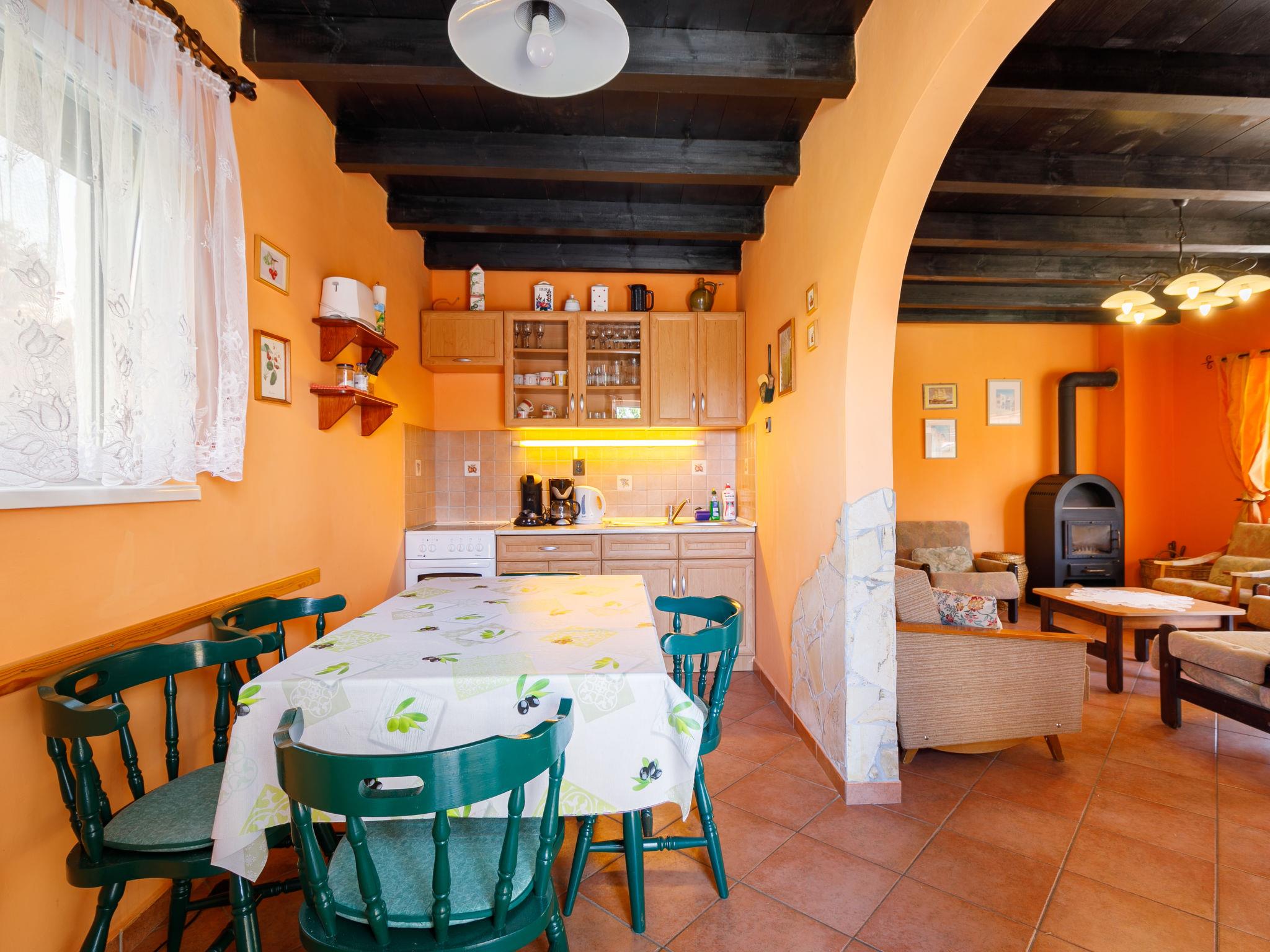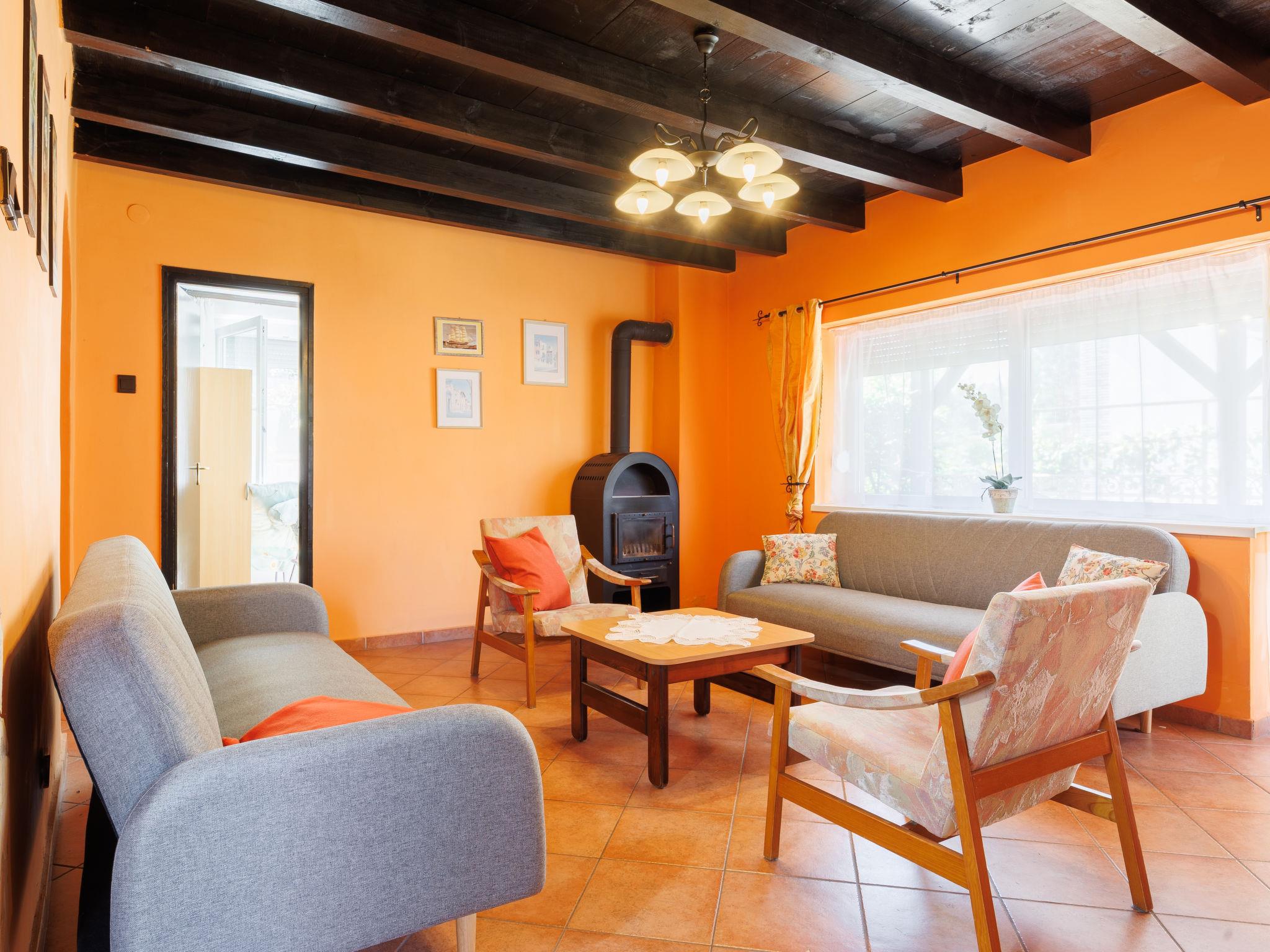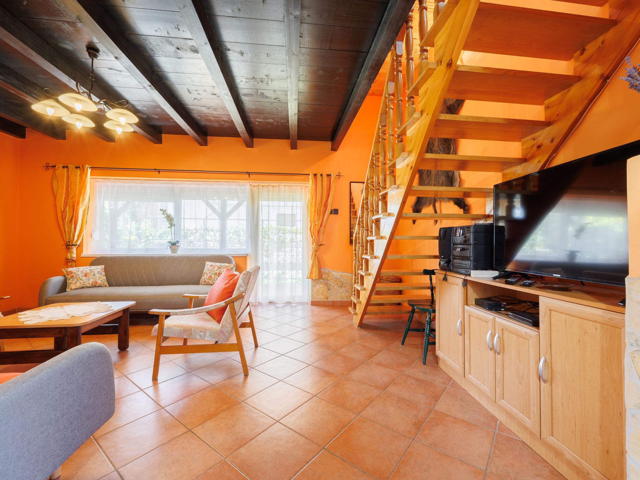 5-room house 90 m2. Comfortable furnishings: living room with Scandinavian wood stove, satellite TV and radio. Exit to the terrace. 1 room with 2 beds. Open kitchen (4 hot plates, oven, microwave, freezer). Shower, sep. WC. No heating option. Upper floor: 1 room with 2 beds. 2 rooms, each room with 1 french bed. Exit to the balcony. Sep. WC. 2 small balconies, terrace 10 m2, terrace 6 m2, patio. Terrace furniture, barbecue, deck chairs (2). Facilities: baby cot. Parking (3 cars). Maximum 1 pet/ dog allowed. MA21003825