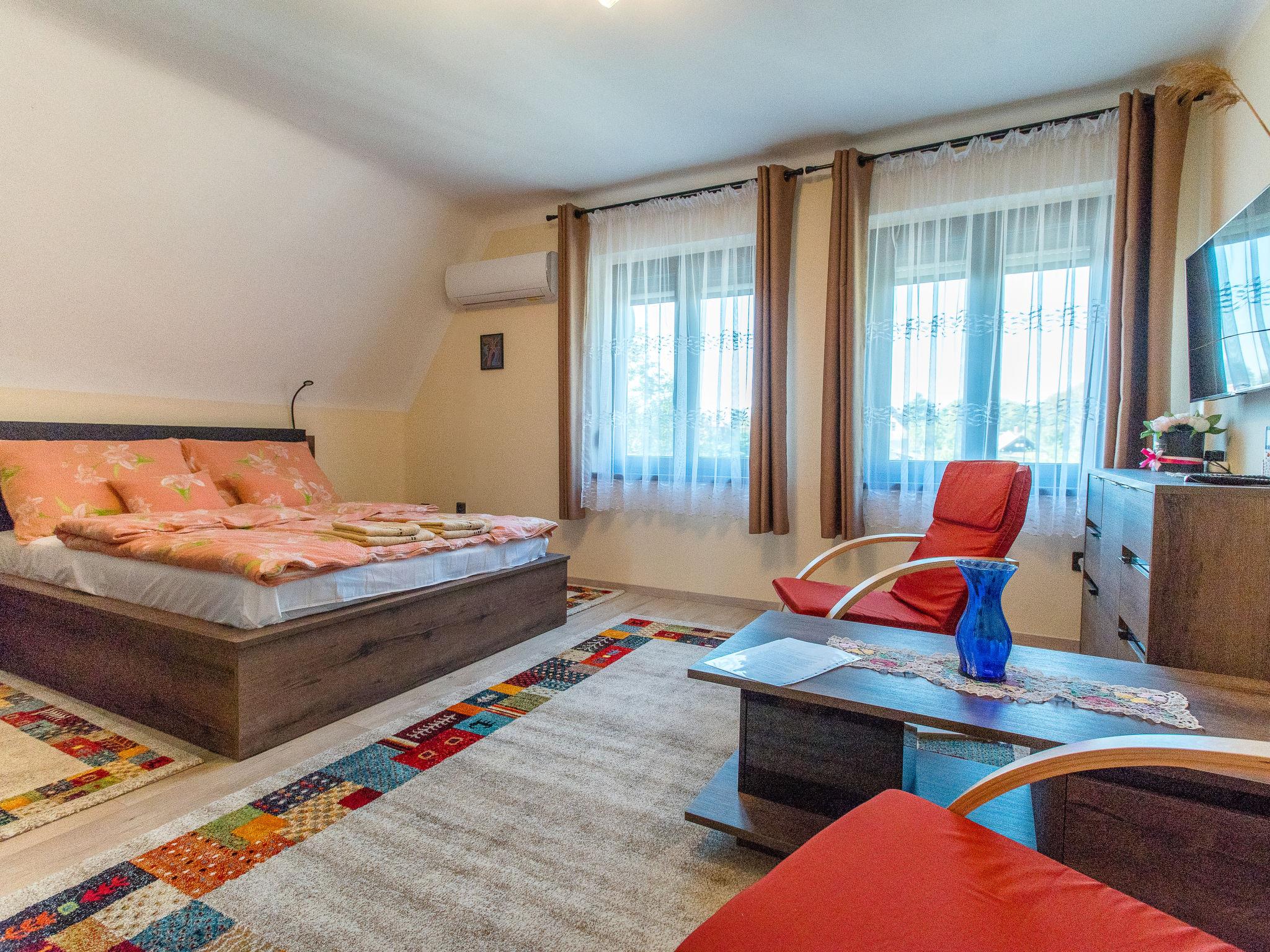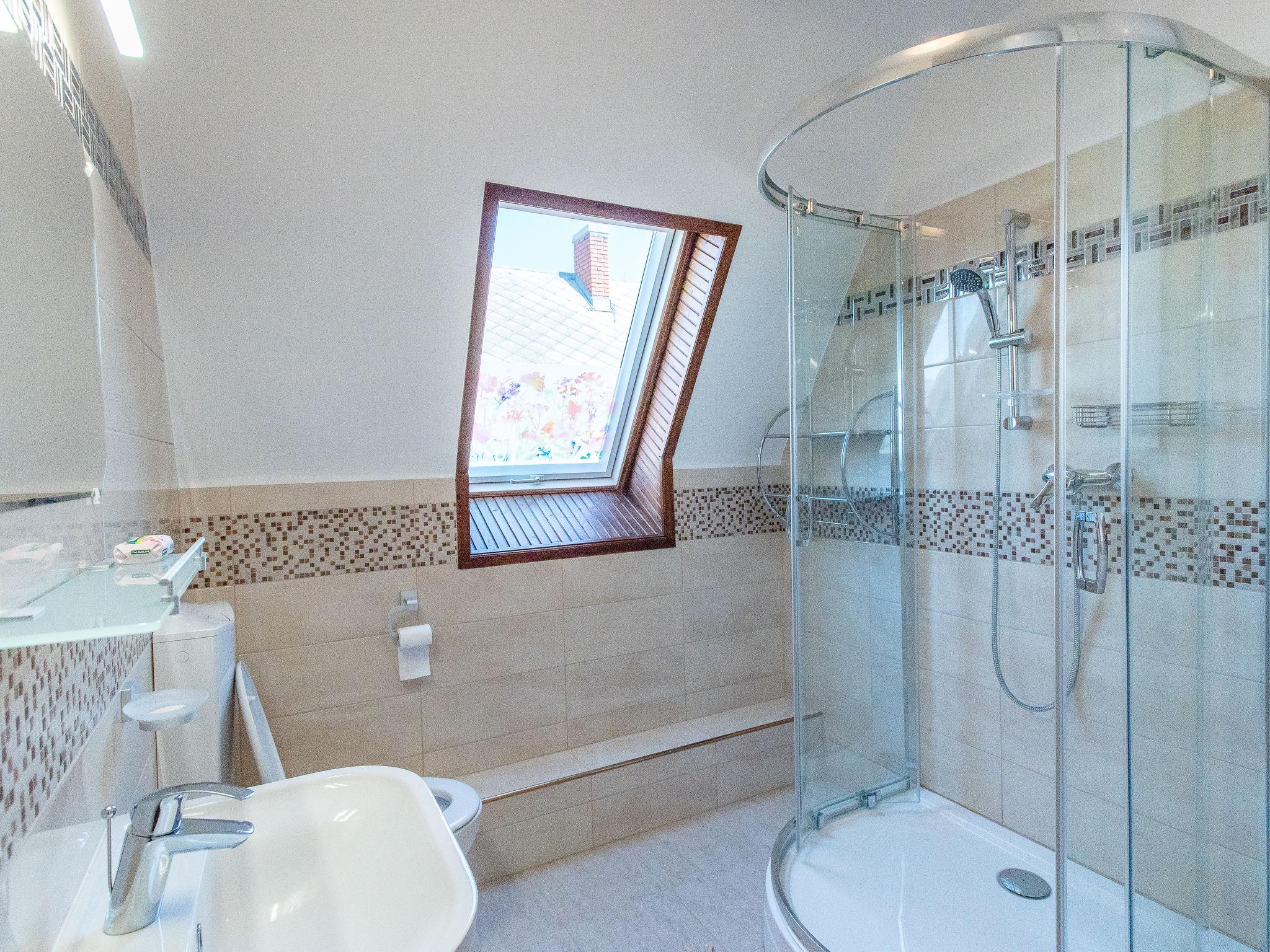 Balatonkeresztúr: Beautiful 2-family house, 2 storeys, built in 1991, renovated in 2022. In the resort, in a quiet position, 600 m from the lake. For shared use: property 980 m2 (fenced), well-kept garden with lawn and flowers. Private: swimming pool angular (8 x 4 m, 32 m2, depth 140 cm, seasonal availability: 15.May. - 15.Sep.) with shutter cover. Outdoor shower, barbecue. In the house: WiFi, air conditioning. Grocery, restaurant 500 m, grass beach 600 m. Please note: the owner lives in the same residence.
