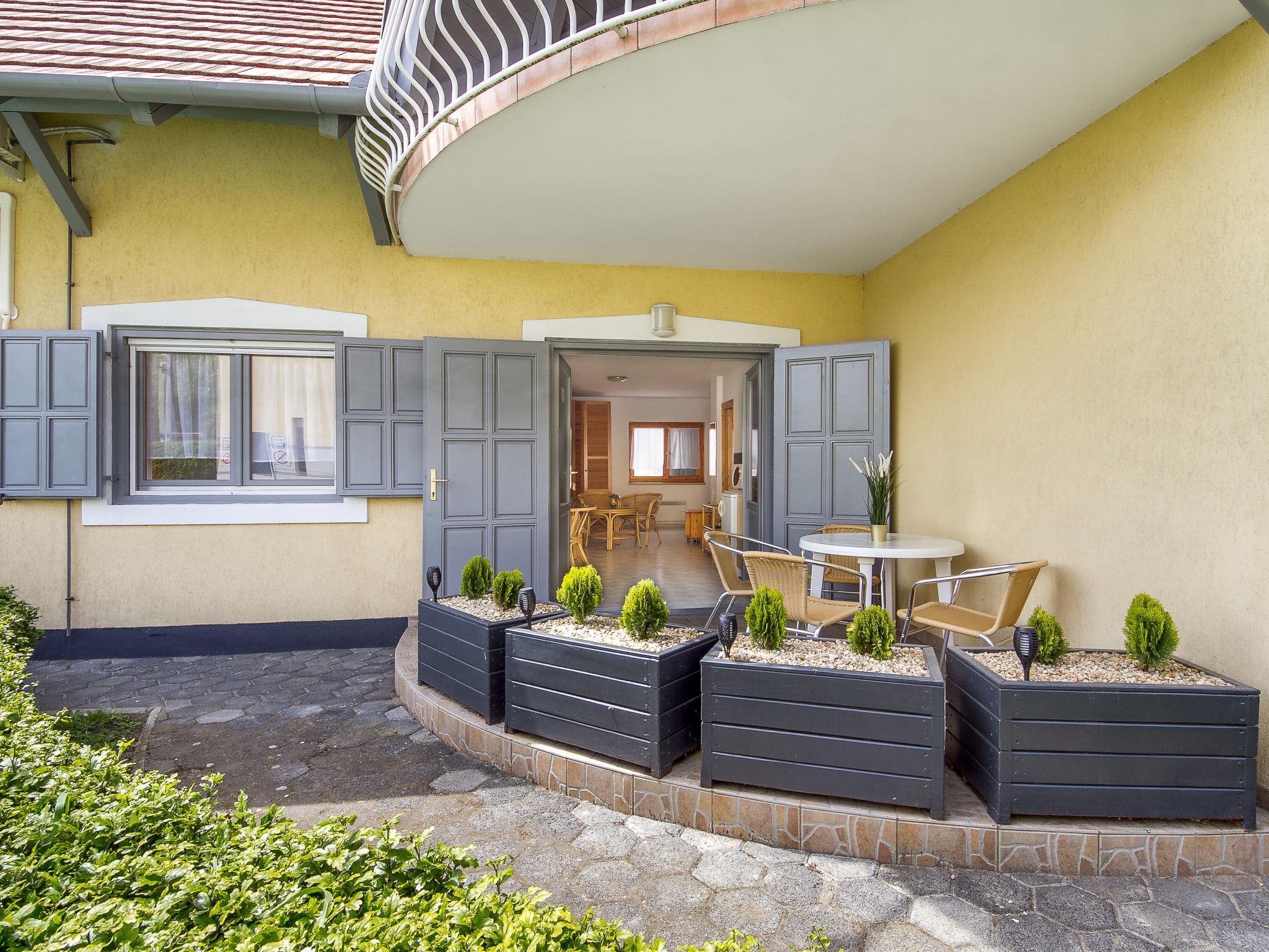 Balatonmáriafürdo 18 km from Keszthely: Apartment house. In a sunny position, 270 m from the lake, 260 m from the beach. For shared use: well-kept garden (fenced), lawn for sunbathing, swimming pool angular (7 x 4 m, depth 120 cm, seasonal availability: 01.May. - 01.Oct.) with internal staircase. Table tennis, patio, garden furniture, barbecue (swing). In the house: WiFi, air conditioning (extra). Grocery 1 km, supermarket 6 km, restaurant 180 m, bakery 1.5 km, café 800 m, bicycle rental 4 km, railway station 1 km, grass beach 100 m, thermal baths "Csiszta" 15 km. Surf school 8 km, sailing school 1 km, tennis 2 km, riding stable 700 m, cycle lane 50 m, children's playground 600 m, fishing possibilities 100 m. Nearby attractions: Hévíz Thermal Bath 20 km, Festetics palace 20 km, Rubin Winery 5 km, Airport 2 km, Somosgegyi Viewpoint 7 km, Siófok - Ferris Wheels 62 km. Please note: Additional accommodations can be booked.
