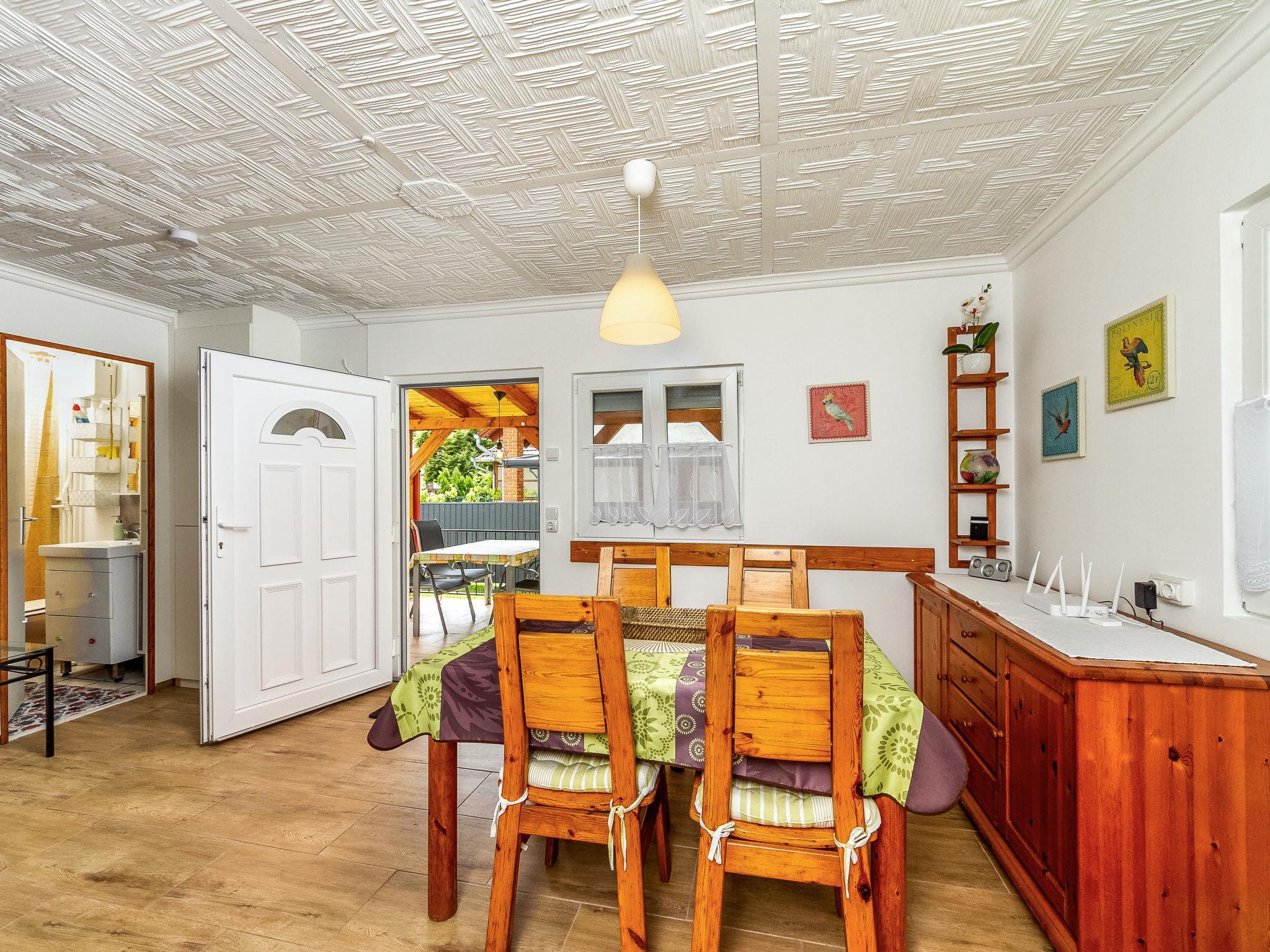 Balatonmáriafürdo 21 km from Keszthely: Small, comfortable semi-detached house "Mediana", renovated in 2022. In the resort. Private: property (fenced), lawn for sunbathing. Fireplace. In the house: WiFi, air conditioning, washing machine. Parking (for 2 cars). Grocery 170 m, restaurant 1 km, railway station "Máriaszolotelep" 10 km, thermal baths "Hévíz" 27 km. Tennis 3 km, riding stable 6 km, cycle lane 200 m, children's playground 2 km. Nearby attractions: Kis-Balaton Visitor Center 15 km, Bobo Fun Park 26 km, Zalacsány Adventure Park 33 km, Festetics Castle 22 km, Kristinus Wine Estate 10 km, Festetics Castle 22 km. The owner does not accept any youth groups.