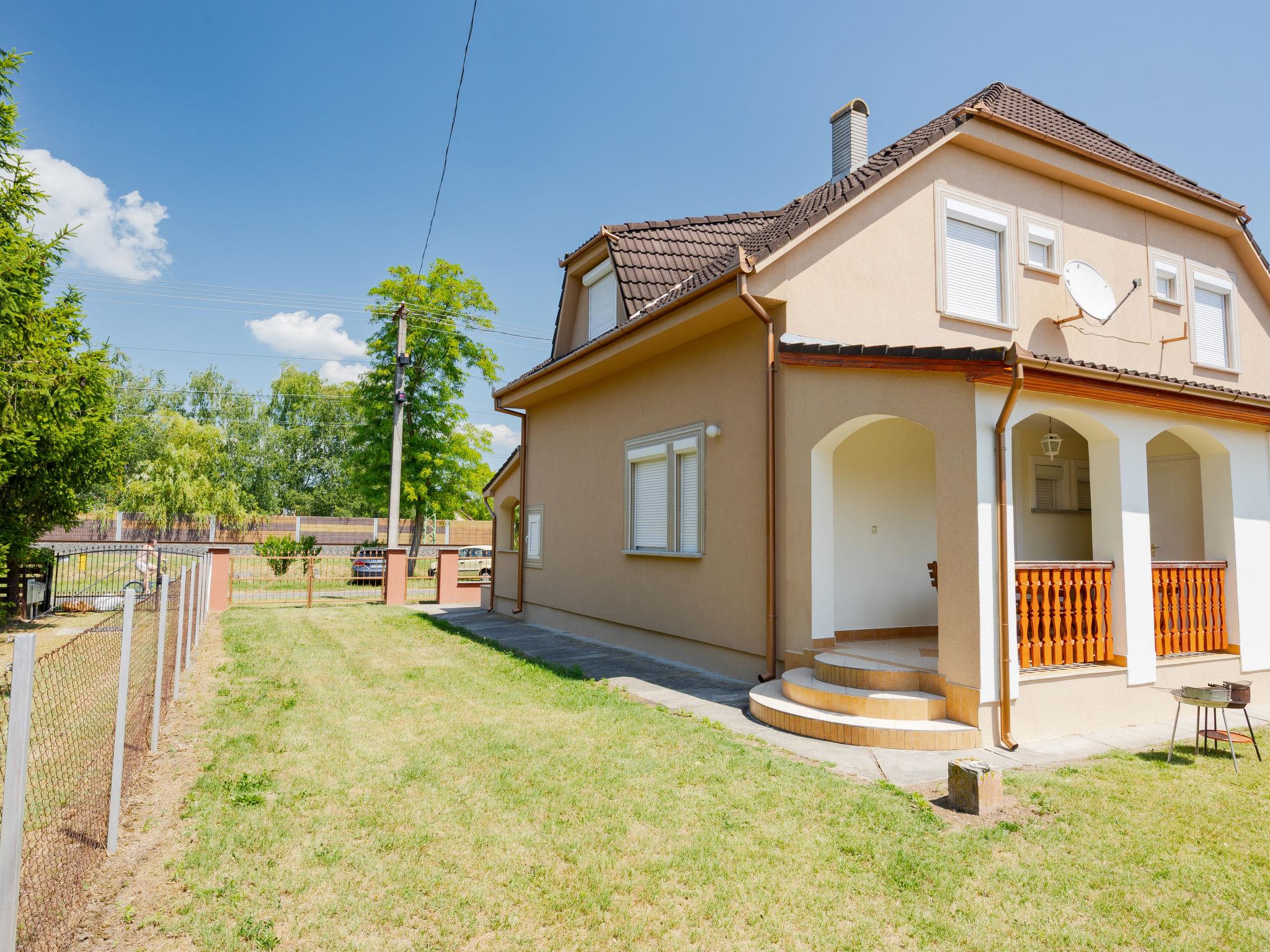Balatonmáriafürdo 20 km from Keszthely: Beautiful, comfortable semi-detached house, 2 storeys. In a sunny position, 150 m from the lake, 1 km from the beach. For shared use: garden 300 m2 (fenced), lawn for sunbathing. Children's playground (swing). Private: barbecue. In the house: WiFi. Grocery, restaurant, grass beach 150 m. Well-known lakes can easily be reached: Hévíz Thermal 25 km. Please note: railway line closeby.