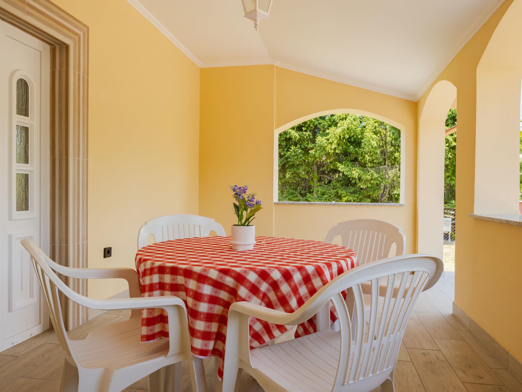 "Daisy 2", 4-room semi-detached house 90 m2 on 2 levels. Partly with sloping ceilings, cosy furnishings: living/dining room with 1 sleeping facility, dining table and satellite TV. Exit to the terrace. Open kitchen (3 hot plates, oven, microwave, freezer). Shower/WC. No heating option. Upper floor: entrance hall. 1 room with 1 bed (70 cm, length 180 cm). 1 room with 2 beds. 1 room with 1 french bed (160 cm, length 200 cm). Shower/WC. Terrace 12 m2, terrace 20 m2. Terrace furniture. Facilities: Internet (WiFi, free). Parking (fenced 2 cars). MA20014147