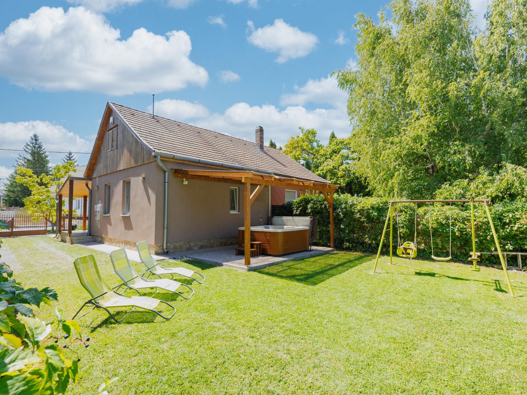 Balatonmáriafürdö 28 km from Balatonlelle: Cosy, comfortable semi-detached house "Wild Grape". In a sunny position in the residential district, 200 m from the lake, 600 m from the beach. Private: hot tub, terrace, barbecue (swing). In the house: WiFi, air conditioning. Parking (for 2 cars) on the premises. Grocery 650 m, restaurant 550 m, bicycle rental 6 km, bus stop "Balatonmáriafürdo, Bükkfa utca" 1.3 km, railway station "Balatonmáriafürdo" 2.5 km, thermal baths "Csisztafürdo" 33 km. Golf course (18 hole) 36 km, tennis 6 km, riding stable 30 km, cycle lane 200 m, children's playground 2 km. Nearby attractions: Kis-Balaton Visitor Center 14 km, Festetics Castle - Keszthely 22 km, Balatonlelle Ferris Wheel 29 km, Siófok Water Tower 62 km, Balaton Museum - Keszthely 18 km, Petting Zoo - Fenyvespuszta 29 km. Please note: railway line closeby 100 m from the property.