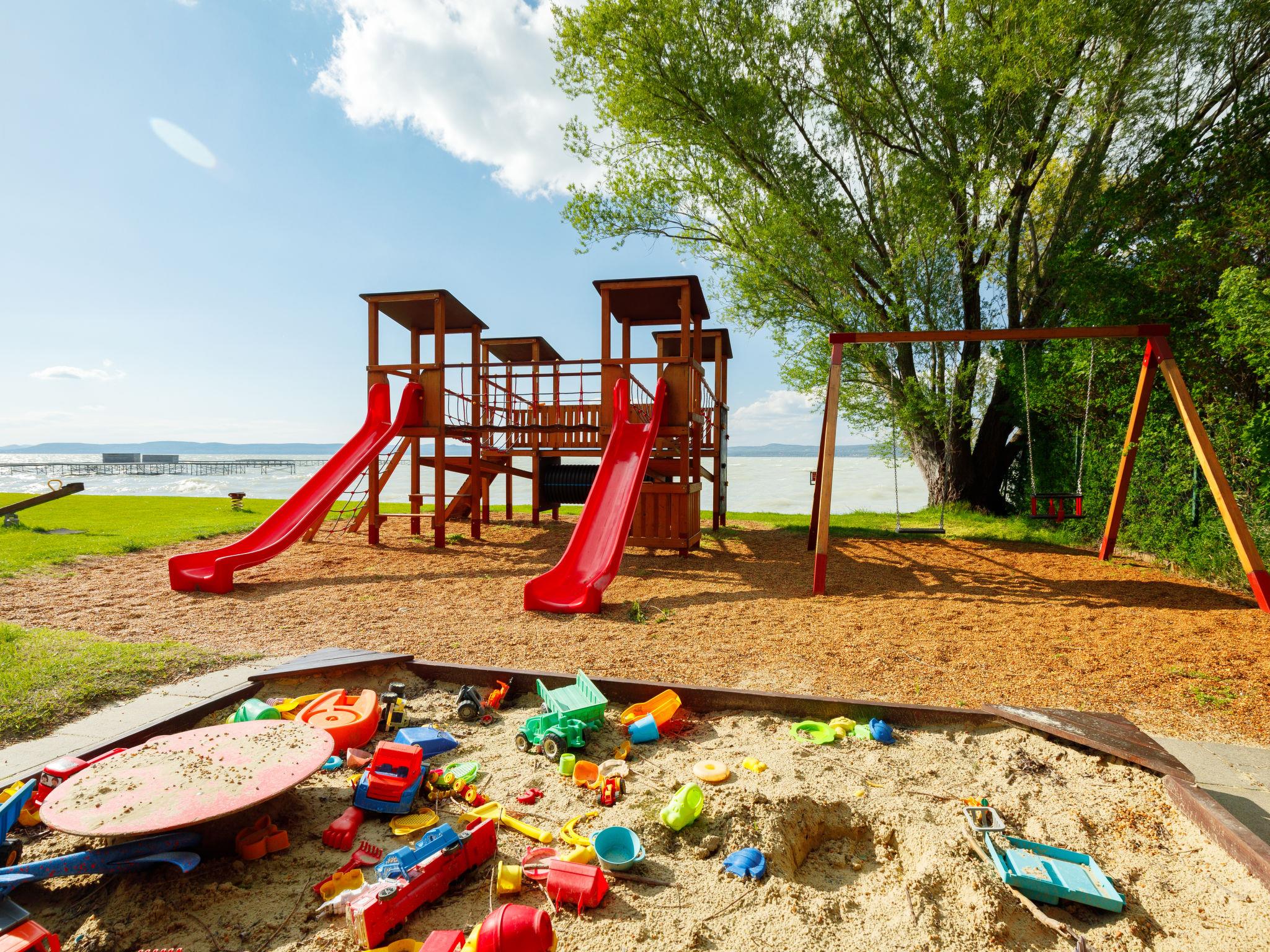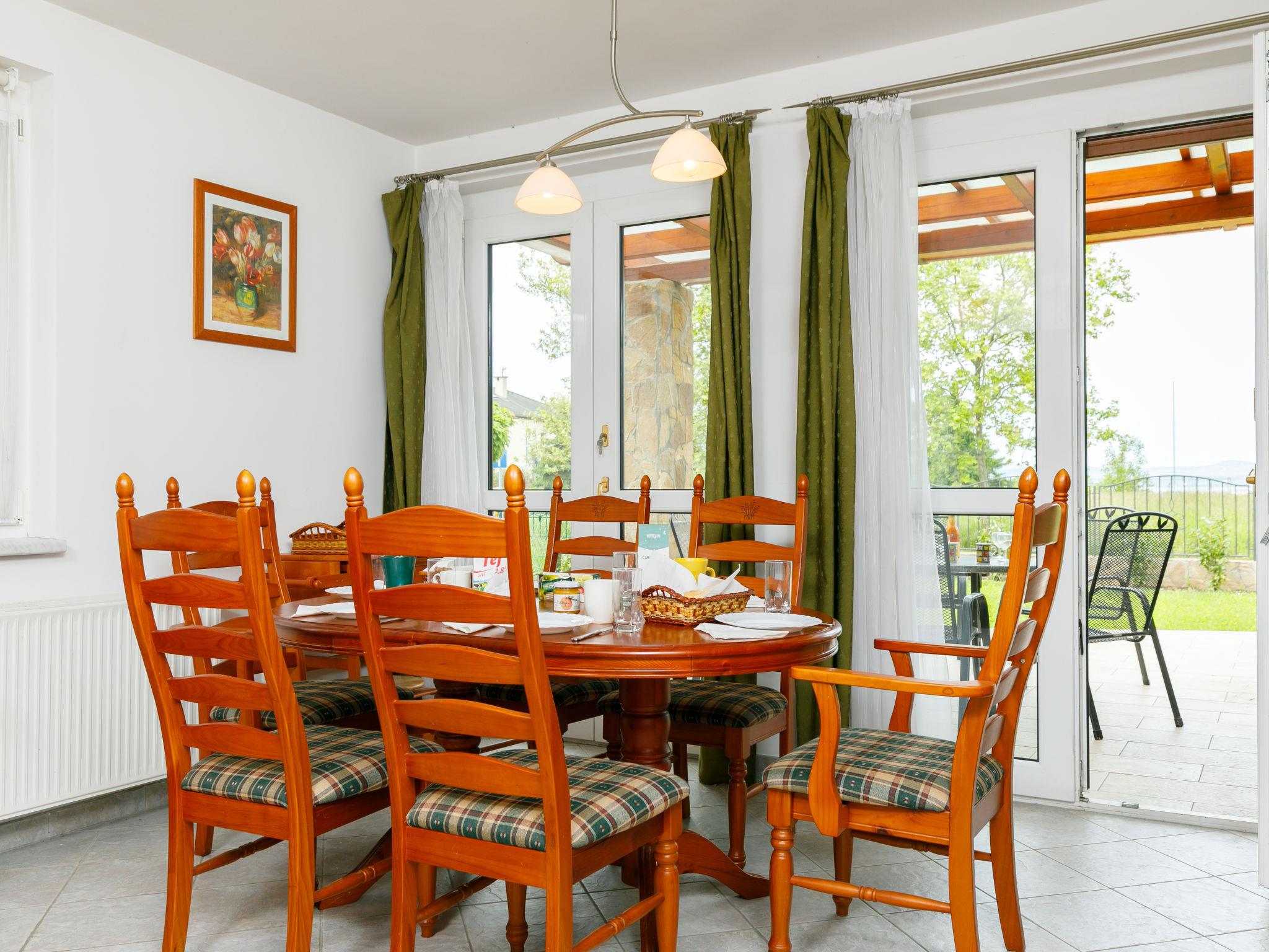 Balatonoszöd 8 km from Balatonlelle: Large, beautiful house "Lavender", 2 storeys. In a sunny position residential area (villas), 100 m from the lake, from the beach. Private: property (fenced), garden lawn. Terrace, barbecue. In the house: WiFi, central heating system, air conditioning, burglar alarm system, washing machine. Roofed, parking. Grocery 3 km, supermarket 8 km, restaurant 140 m, bakery 3 km, café 2 km, thermal baths "Csiszta" 38 km. Surf school 6 km, sailing school 8 km, tennis 2 km, cycle lane 50 m, children's playground 50 m. Nearby attractions: Siófok Giant Wheels 30 km, Kereki Dinosaur Park 17 km, Tihany 15 km, Bella Zoo Siófok 26 km, Festetics Castle 62 km. Please note: baby equipment (included).