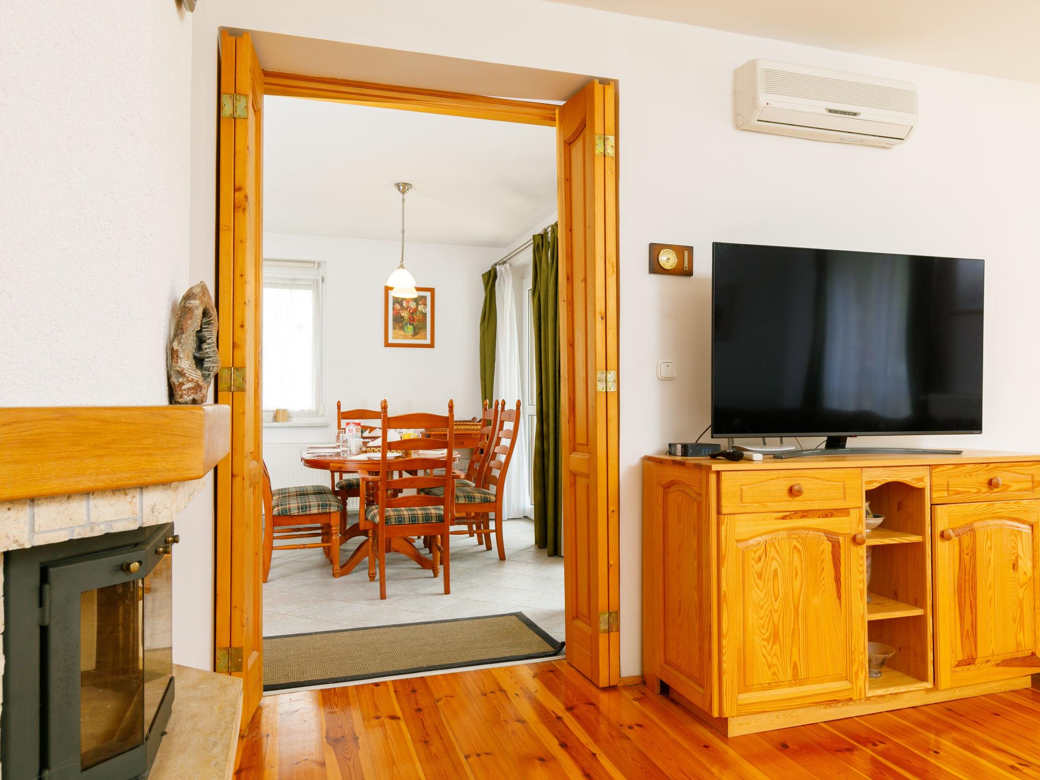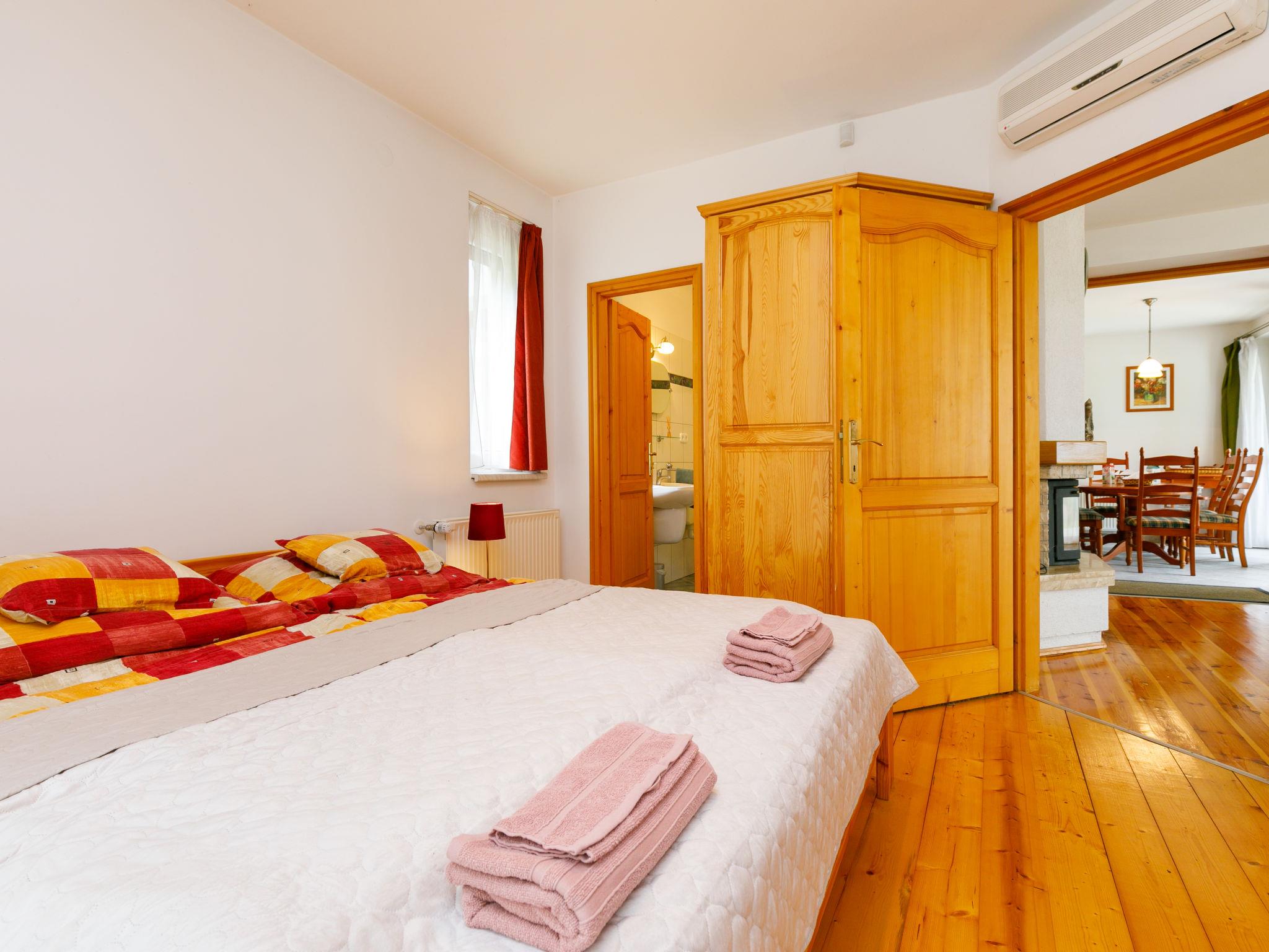 5-room house on 2 levels. Spacious and bright, comfortable and tasteful furnishings: living room with digital TV, flat screen and air conditioning. Exit to the terrace. 1 double bedroom with 1 french bed (2 x 90 cm, length 200 cm), bath/WC, wood-burning stove and air conditioning. Open kitchen (oven, dishwasher, 4 ceramic glass hob hotplates, kettle, microwave, freezer, electric coffee machine) with dining table. Exit to the terrace. Sep. WC. Heating. Upper floor: large, 1 room with 1 double sofabed and 1 french bed (2 x 90 cm, length 200 cm), digital TV, flat screen and air conditioning. Exit to the balcony. 1 room with 1 french bed (2 x 80 cm, length 200 cm), air conditioning. Exit to the balcony. 1 room with 2 beds (90 cm, length 200 cm), air conditioning. Exit to the balcony. Bath/shower/WC. Large terrace, north-west facing position. Terrace furniture, barbecue (portable), deck chairs (4), covered balcony. Panoramic view of the lake. Facilities: washing machine, children's high chair, baby cot. Internet (WiFi). Suitable for families. MA24090140