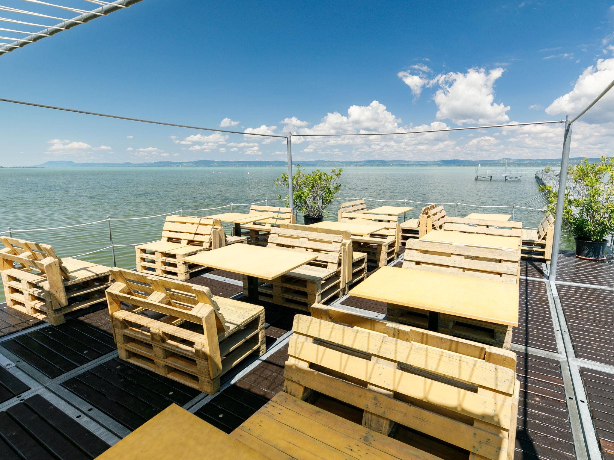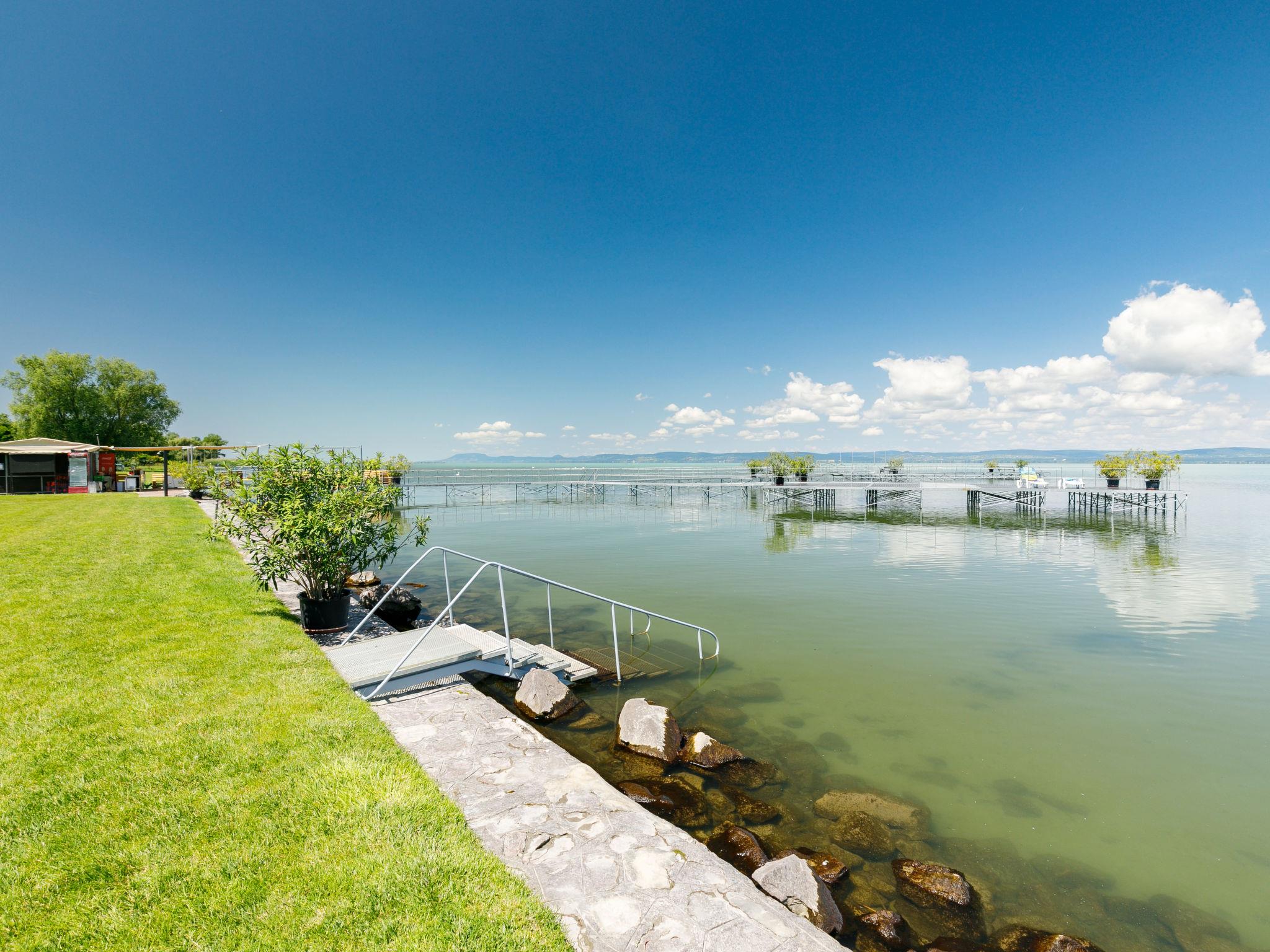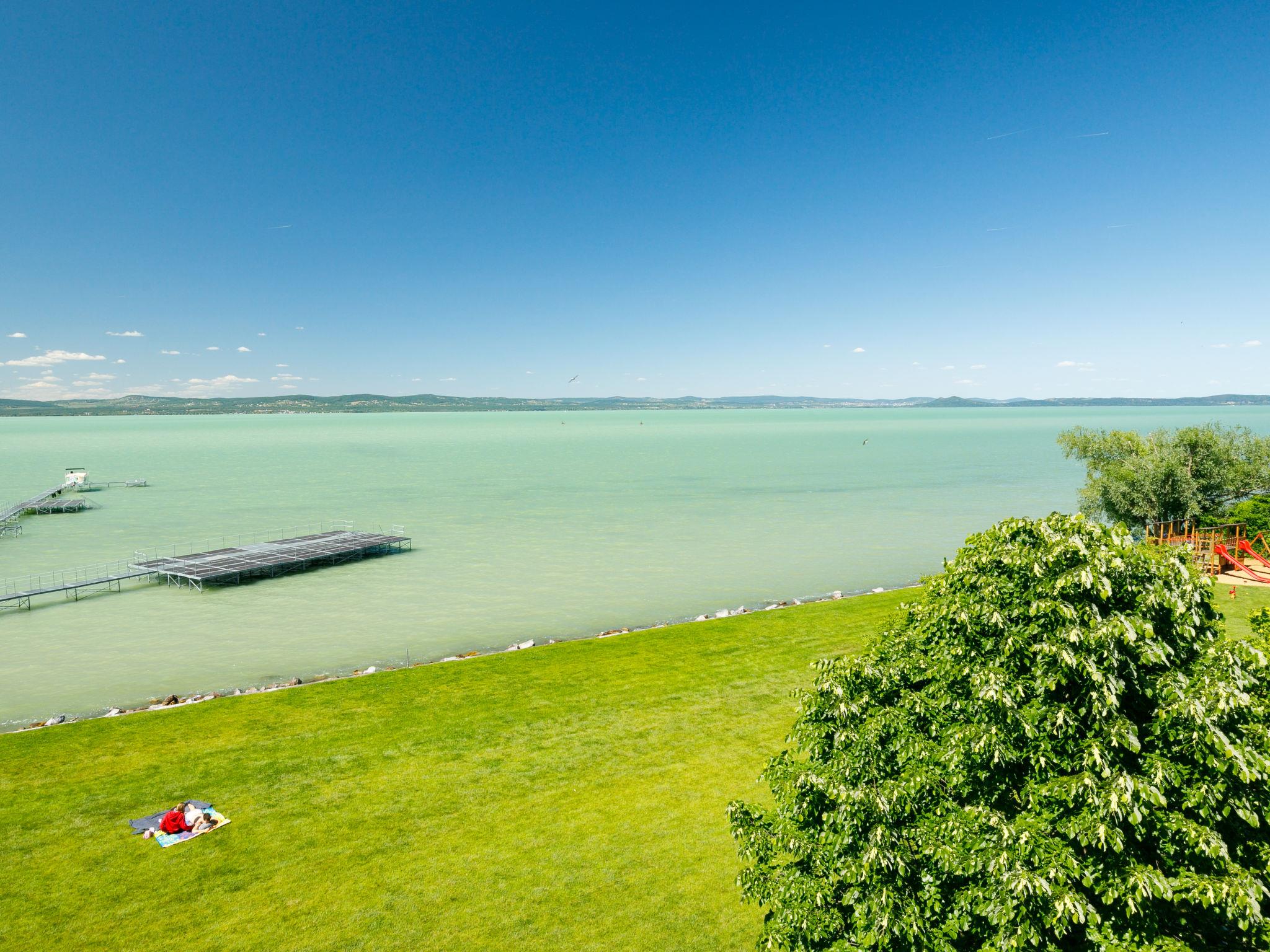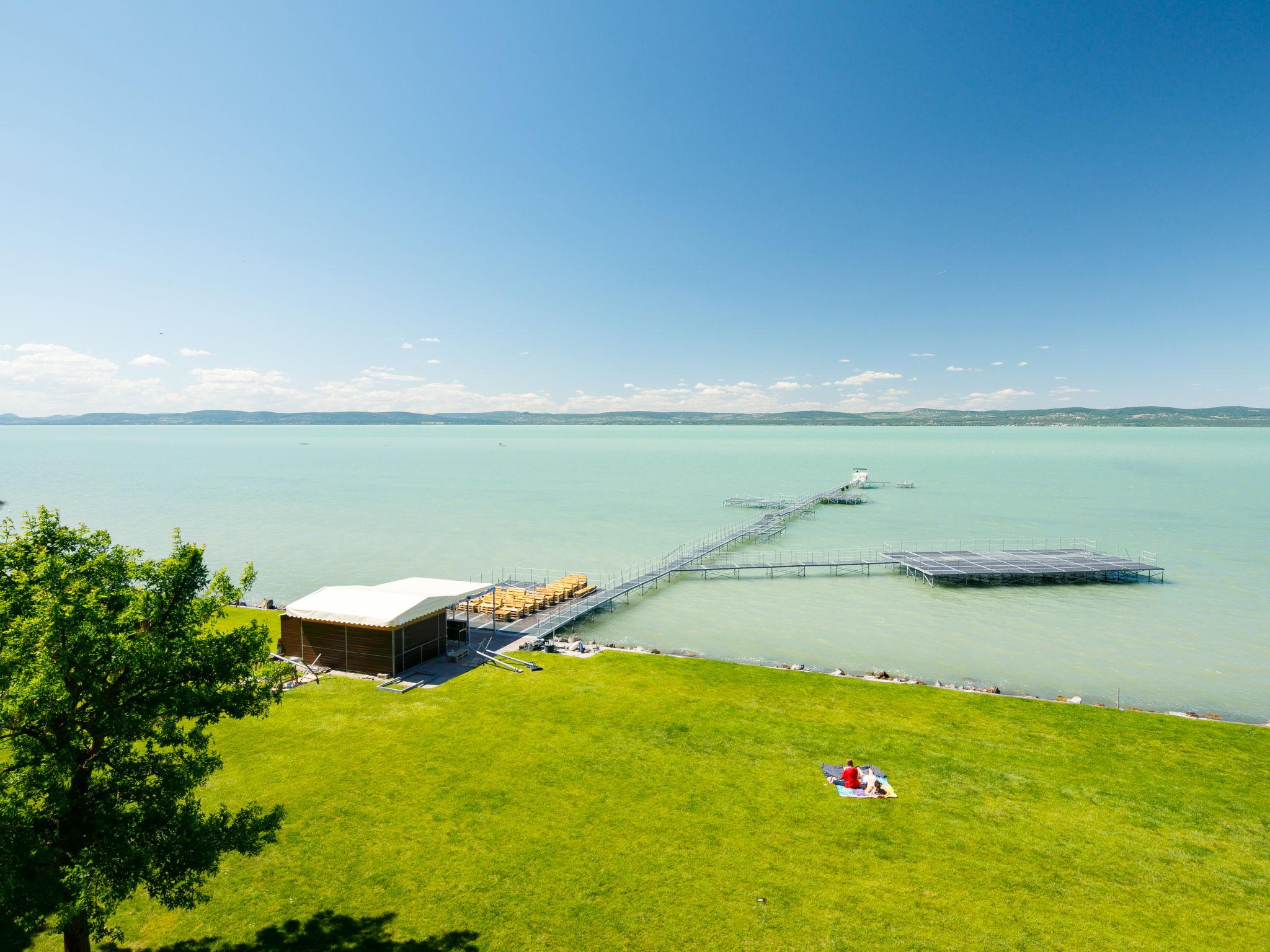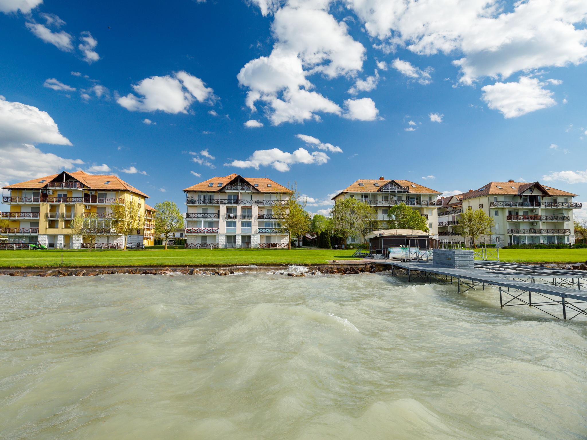 Balatonoszöd 8 km from Balatonlelle: Residence. In the resort, in a sunny position, from the lake, 20 m from the beach, direct access to the beach. For shared use: outdoor shower, table tennis, barbecue, children's playground (slide, swing, sandbox), bathing jetty. In the house: WiFi, lift, air conditioning, washing machine. Grocery 3 km, supermarket 8 km, restaurant 2 km, bakery 3 km, café 2 km, grass beach 20 m, thermal baths "Csiszta" 38 km. Surf school 6 km, sailing school 8 km, tennis 2 km, cycle lane 50 m, children's playground 50 m. Nearby attractions: Siófok Giant Weels 30 km, Kereki Dinosaur Park 17 km, Tihany 15 km, Bella Zoo Siófok 26 km. Please note: baby equipment on request.