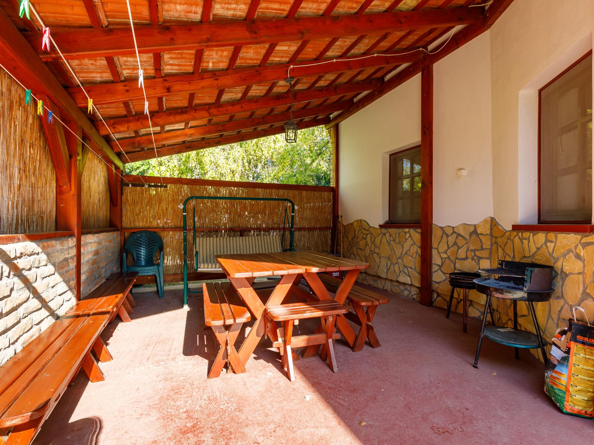 "Tamas", 3-room house 80 m2. Cosy furnishings: living/dining room with open-hearth fireplace (only for decoration), dining table and satellite TV (flat screen). 1 room with 2 beds and air conditioning. 1 double bedroom with 1 french bed and air conditioning. Open kitchen (oven, 4 ceramic glass hob hotplates, toaster, kettle, microwave, electric coffee machine). Hip bath, sep. WC. No heating option. Terrace. Terrace furniture, barbecue, deck chairs (2). Facilities: washing machine, children's high chair, baby cot (extra). Internet (WiFi, free). Please note: non-smoking house. 1 small pet/ dog allowed. EG19022084