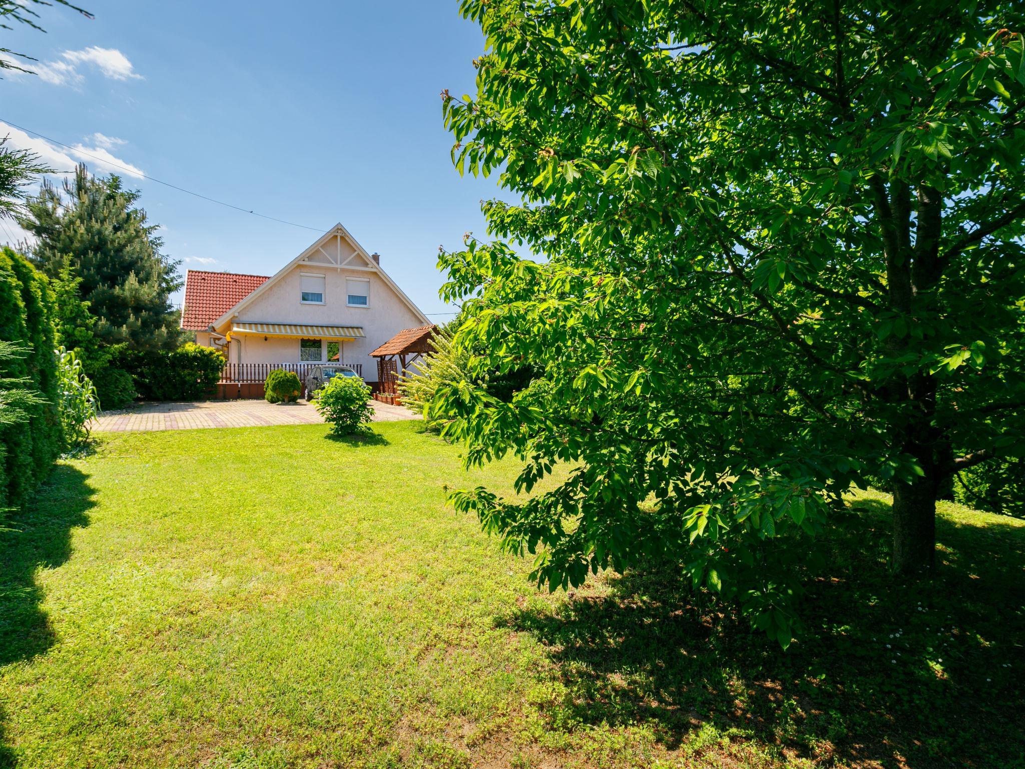 Balatönöszöd 10 km from Balatonboglár: Cosy house "Scarlett", 2 storeys. On the outskirts, in a quiet, sunny position, 1.8 km from the lake, 2 km from the beach, located by a road. Private: beautiful, well-kept garden 700 m2, lawn for sunbathing. (sandbox). In the house: WiFi, washing machine. Grocery 2 km, restaurant 1.6 km, bus stop 250 m, grass beach 1.8 km.