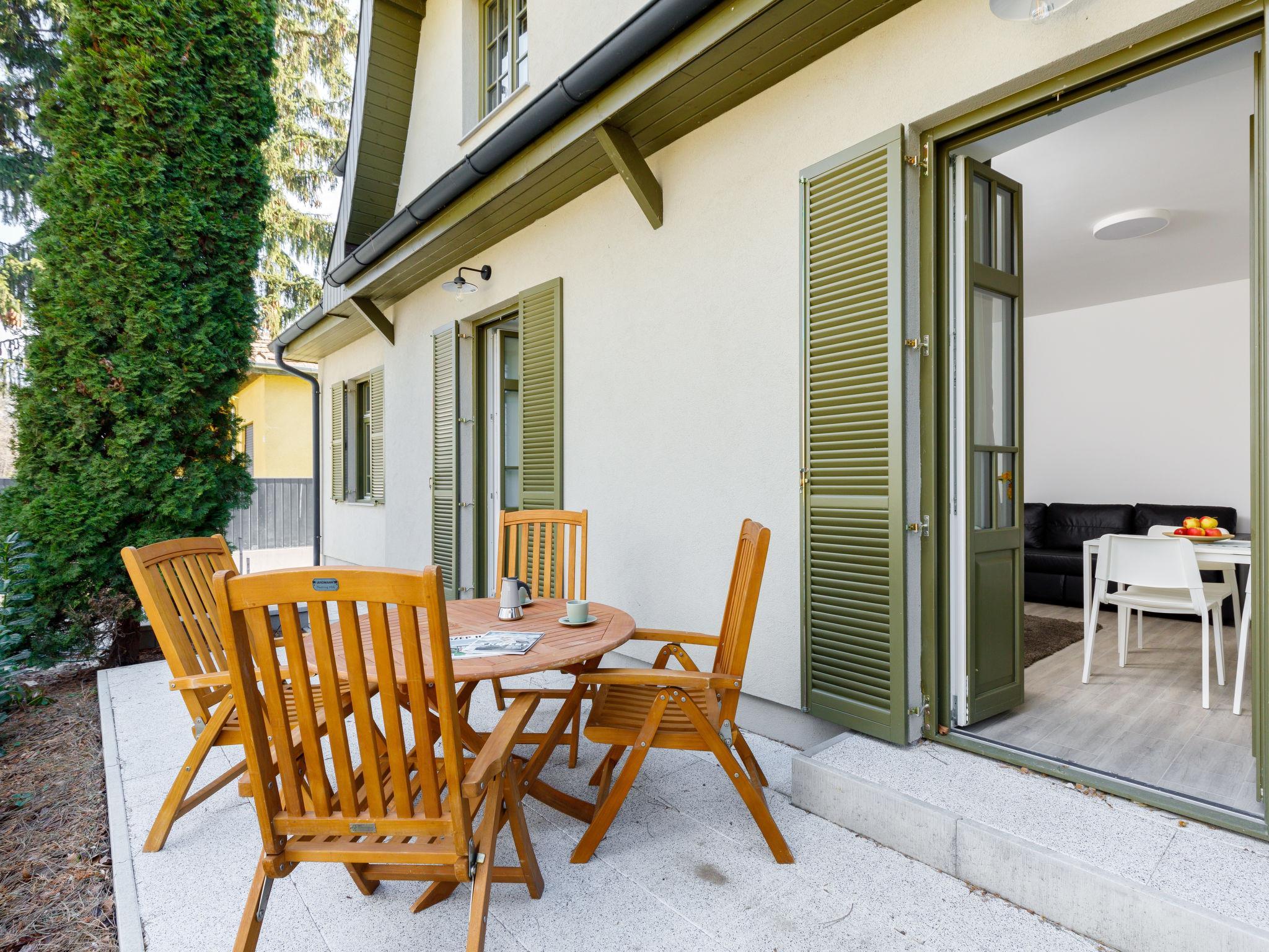 "Park 3", 2-room apartment on the ground floor. Beautiful and modern furnishings: open large living/dining room with 2 sofabeds and cable TV (flat screen). Exit to the terrace. 1 double bedroom with 1 french bed (160 cm, length 200 cm). Small, open kitchen (2 ceramic glass hob hotplates, microwave, electric coffee machine). Shower/WC. Floor heating. Solar power. Terrace, north-west facing position. Terrace furniture. Facilities: children's high chair, baby cot (extra), hair dryer. Internet (WiFi). Please note: apartment street side. Type of coffee machine: Nespresso.