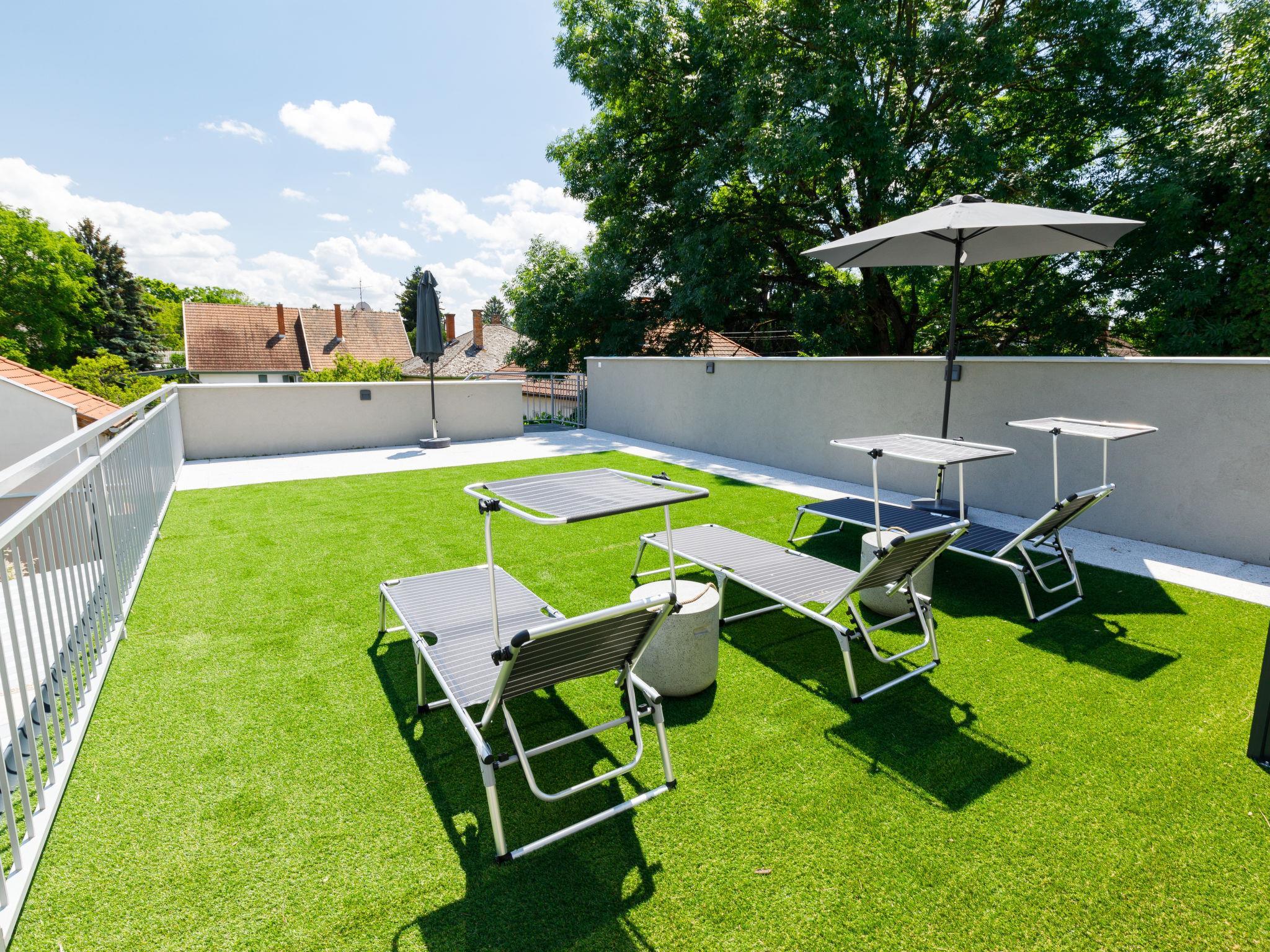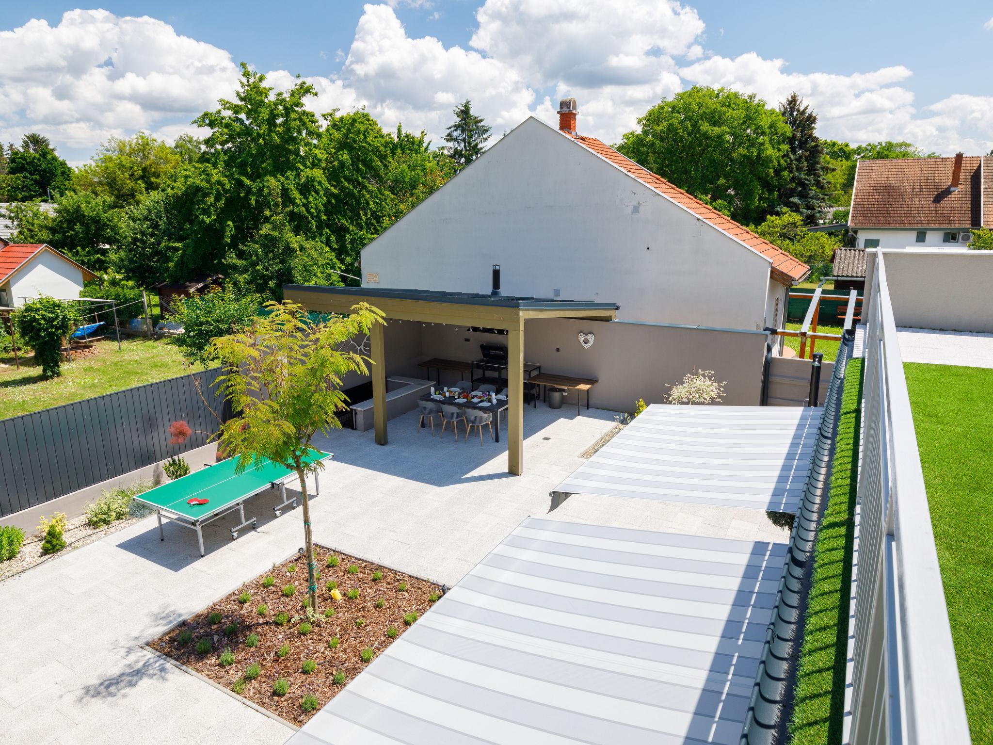 Balatonszárszó 5 km from Balatonföldvár: Modern, beautiful apartment house, built in 2023. 5 apartments in the residence. Excellent location: right in the centre but still quiet, 290 m from the lake, 350 m from the beach. For shared use: property (fenced). Outdoor shower, table tennis, pergola, garden furniture, barbecue, children's playground (slide, sandbox). In the house: WiFi, table tennis, billiard table, table football, sun terrace, central heating system, air conditioning, washing machine, tumble dryer. Breakfast on request (extra). Parking at the house. Grocery 90 m, supermarket 7 km, restaurant, café 140 m, bicycle rental 150 m, bus stop 850 m, railway station, 200 m, thermal baths "Csiszta" 36 km. Surf school 4 km, sailing school 1 km, tennis 500 m, riding stable 9 km, children's playground 600 m. Nearby attractions: Siófok Bella Zoo 24 km, Tihany 12 km, Siófok Theme Pak 24 km, Festetics Castle 57 km, Hévíz 61 m. The common area has a kitchen with a dishwasher, 4 ceramic hobs and an oven.
