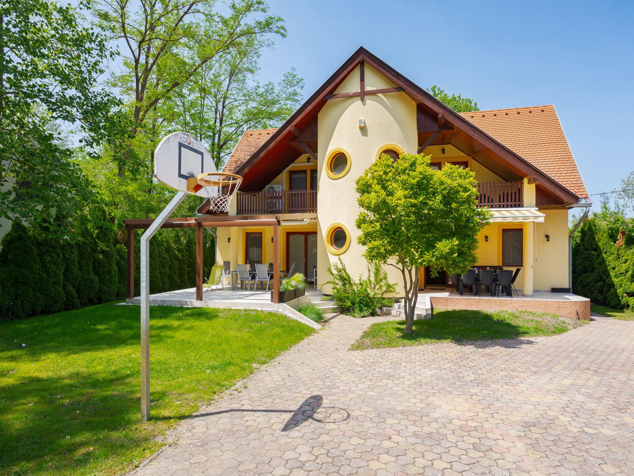 Balatonszárszó 22 km from Siófok: Beautiful semi-detached house. 1 km from the centre of Balatonszarszo, on the outskirts, 25 km from the centre of Siofok, in the residential district, 200 m from the lake, 350 m from the beach. For shared use: property 800 m2 (fenced), well-kept garden with lawn and trees. Private: basketball, children's playground (slide, swing, sandbox). In the house: air conditioning. Parking (for 2 cars) on the premises. Shop 1 km, grocery 1 km, supermarket 5 km, restaurant 300 m, bicycle rental 3 km, railway station 1 km, grass beach 200 m, thermal baths "Csiszta" 35 km. Surf school 6 km, tennis 1 km, cycle lane 10 m, children's playground 350 m, fishing possibilities 7 km. Nearby attractions: Siófok Giant Wheels 28 km, Festetics Castle 65 km, Csiszta Thermal Bath 35 km, Siófok Zoo 32 km, Kereki Dinosaurs Park 15 km. Please note: suitable for families, baby equipment on request (extra). Owner lives in separate semi-detached house. Railway line closeby.