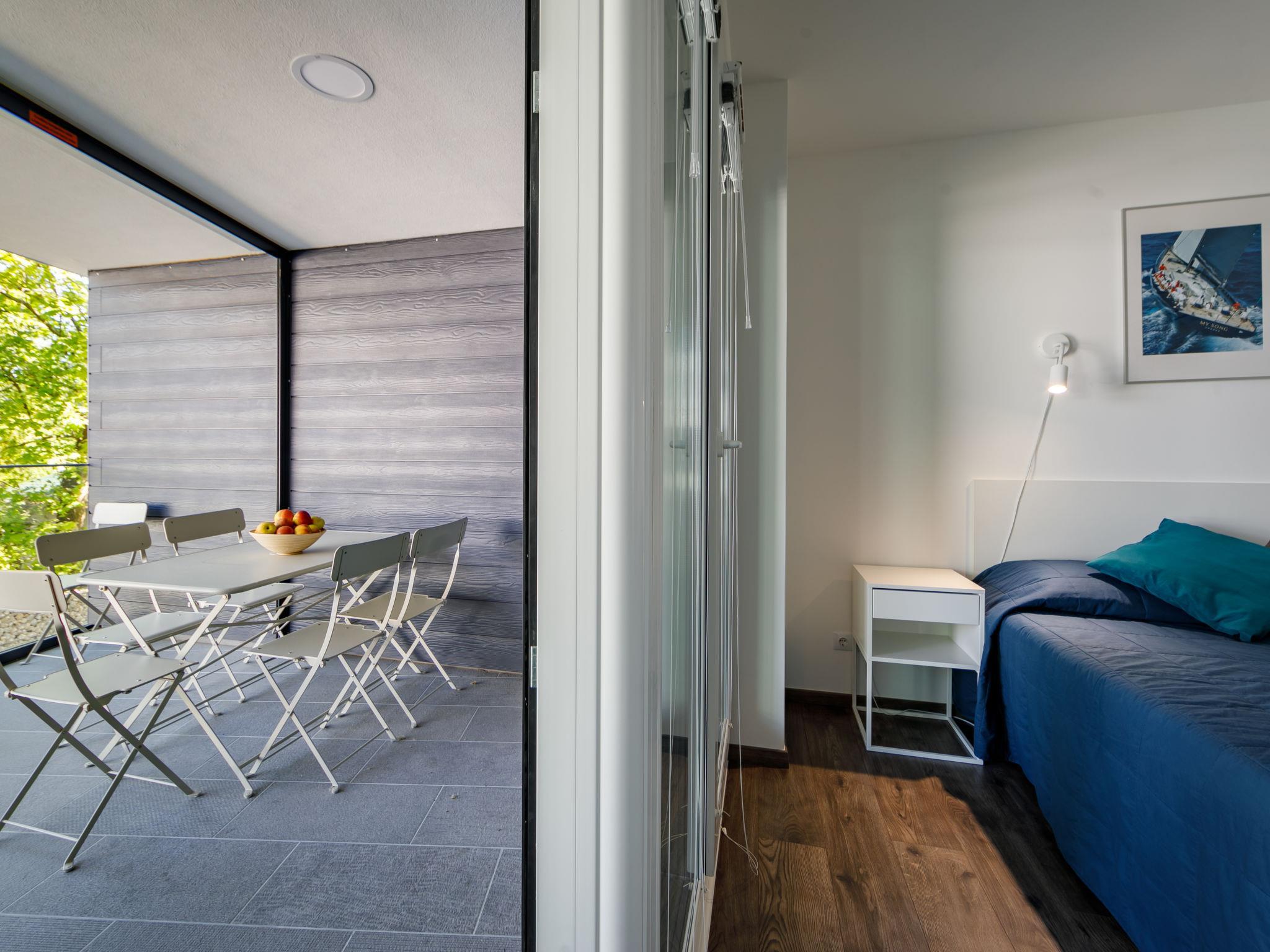 "Füred", 3-room apartment 44 m2 on 2nd floor. Modern and tasteful furnishings: living/sleeping room with 1 pull-out bed (2 pers.), cable TV and air conditioning. Exit to the terrace. 1 room with 1 french bed. 1 room with 2 beds. Open kitchen (oven, toaster, kettle). Shower/WC, sep. WC. Heating (extra), floor heating. Terrace 11 m2. Terrace furniture. Facilities: children's high chair, baby cot (extra). Parking (1 car). Maximum 1 pet/ dog allowed. EG21000354