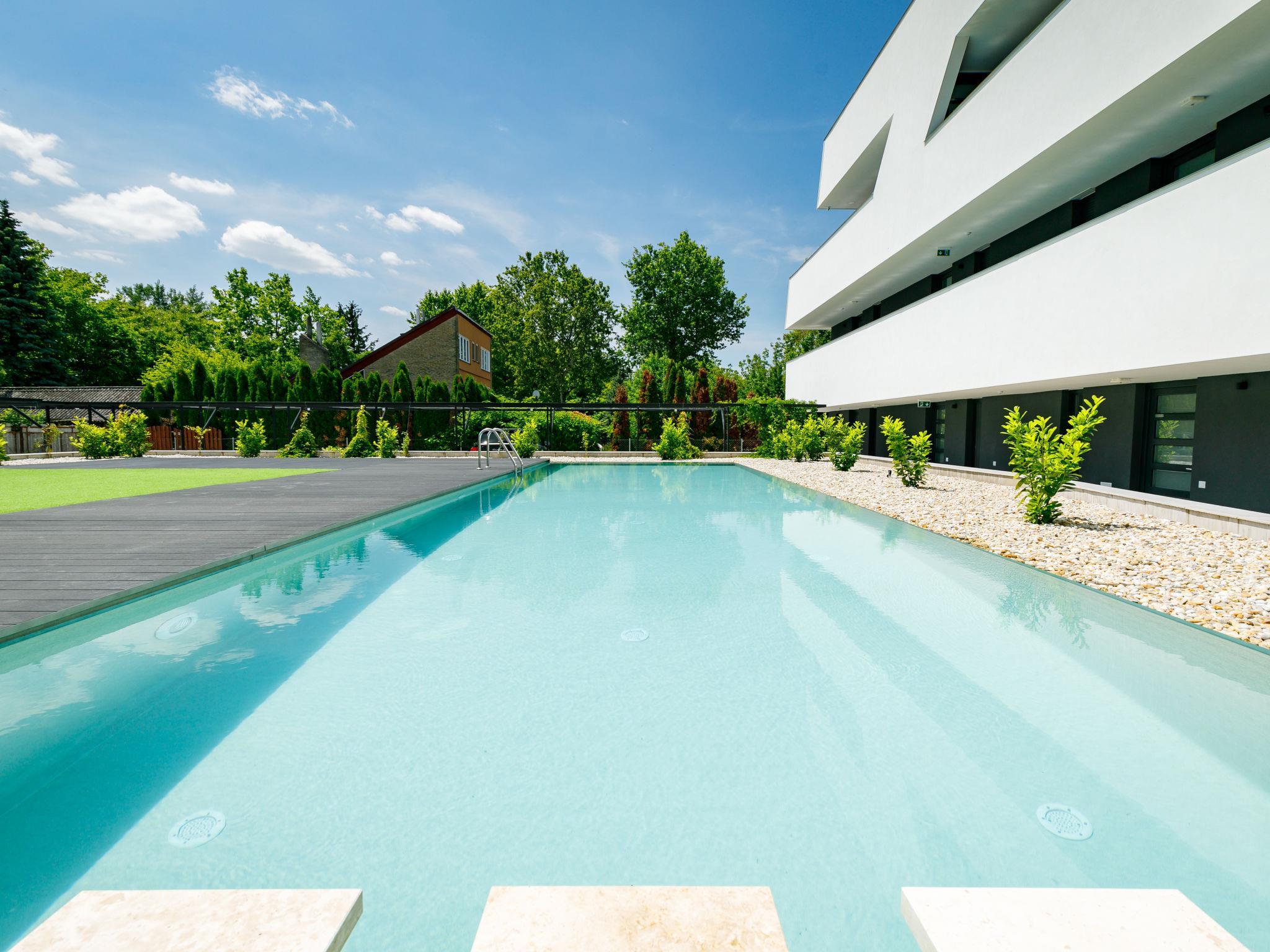 Balatonszemes 7 km from Balatonlelle: Modern, beautiful apartment block, built in 2020. In the resort, in a central position, 100 m from the lake, 350 m from the beach. For shared use: swimming pool angular heated (8 x 20 m, seasonal availability: 15.May. - 15.Sep.). In the house: internet café, WiFi, lift, sun terrace. Breakfast on request (extra). Grocery 200 m, restaurant 100 m, railway station 450 m, grass beach 300 m. Sports harbour 100 m. Nearby attractions: Tihany 14 km.