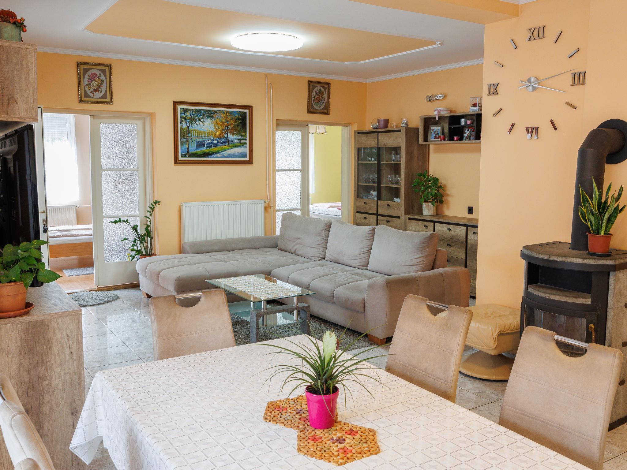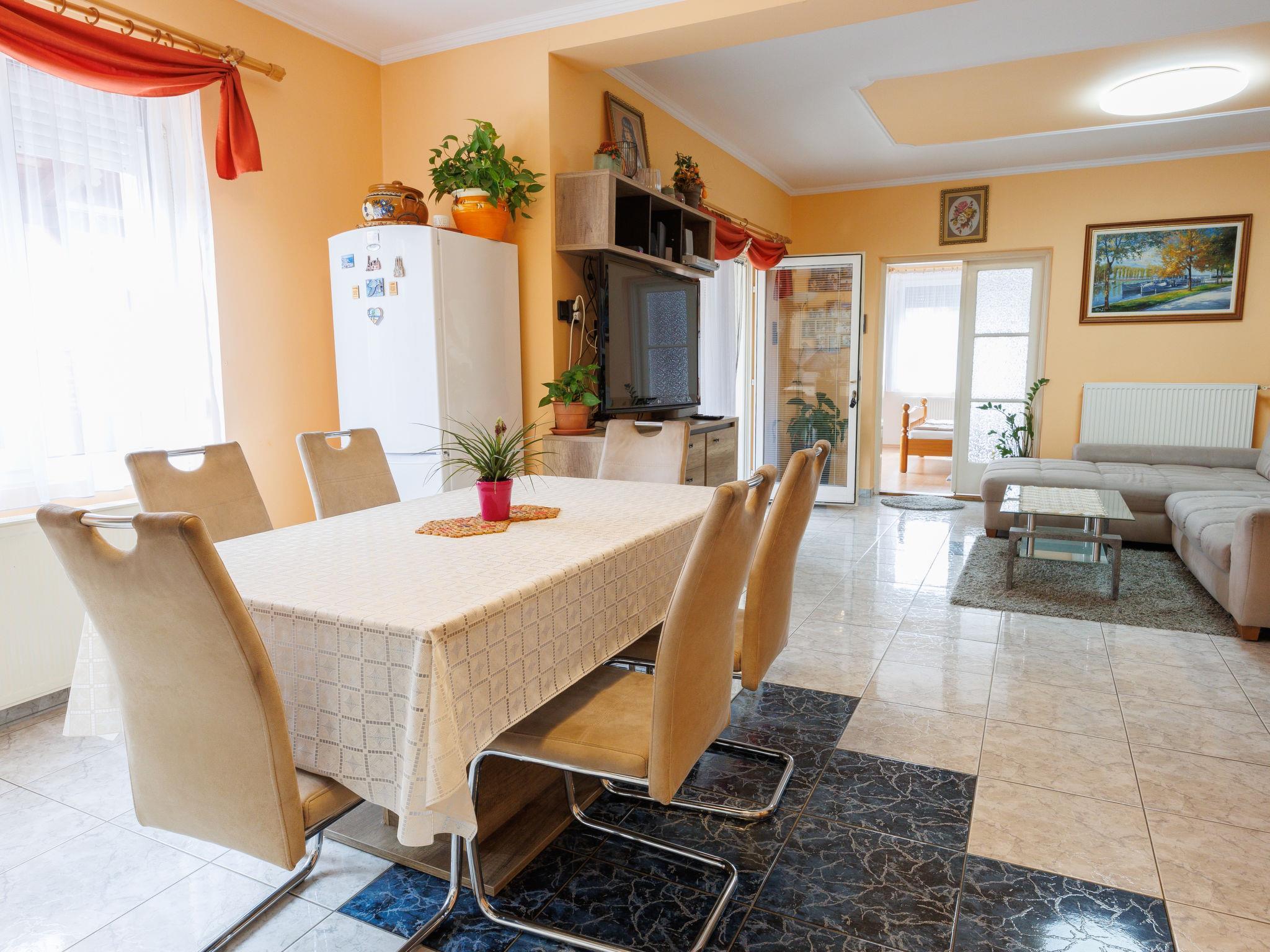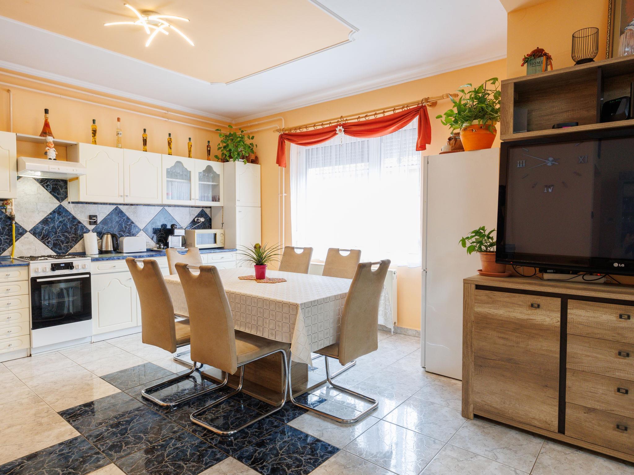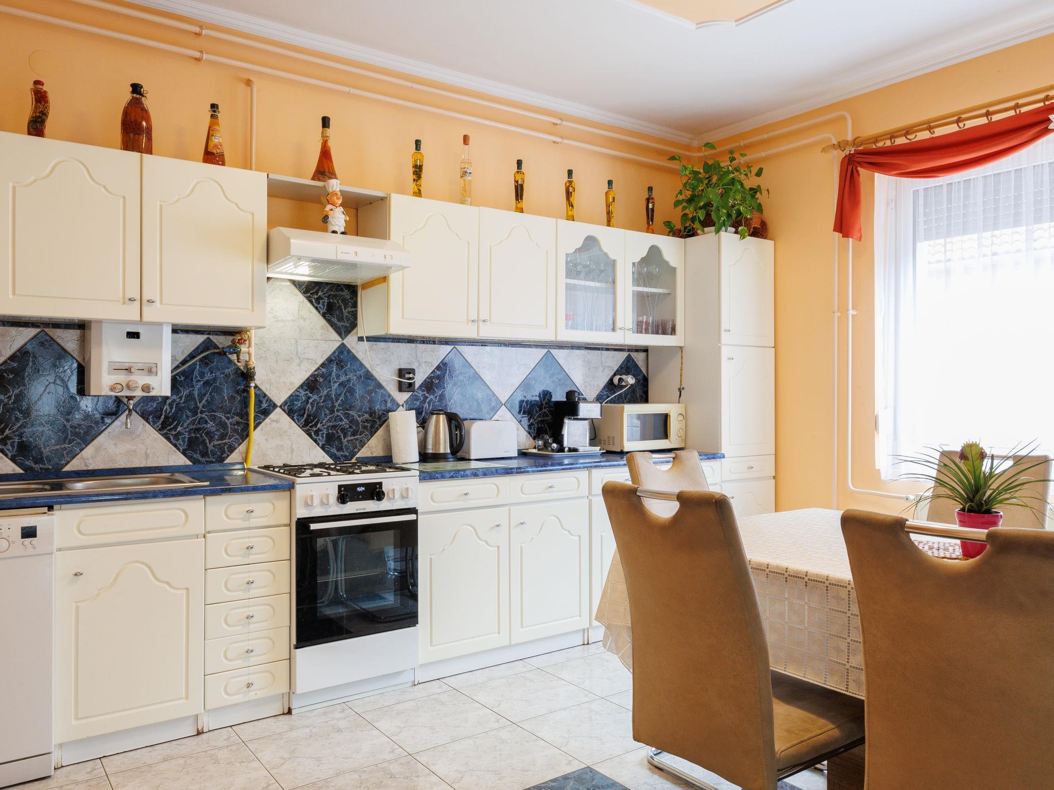 "Gyula", 4-room apartment on the ground floor. Spacious, partly renovated in 2024, comfortable furnishings: open living/dining room with dining table, cable TV, international TV channels and flat screen. Exit to the veranda. 1 large double bedroom with 1 french bed. 2 double bedrooms, each room with 1 french bed. Open kitchen (oven, dishwasher, Gas stove, 4 gas rings, toaster, kettle, microwave, electric coffee machine). Bath/shower, sep. WC. No heating option. Terrace furniture. Facilities: Internet (WiFi). Parking (2 cars). MA23062507