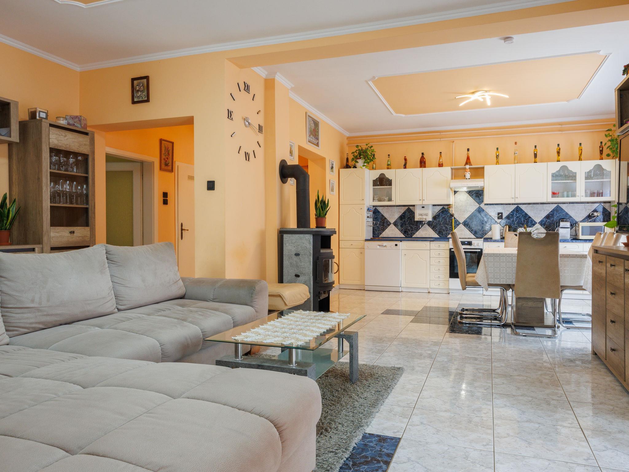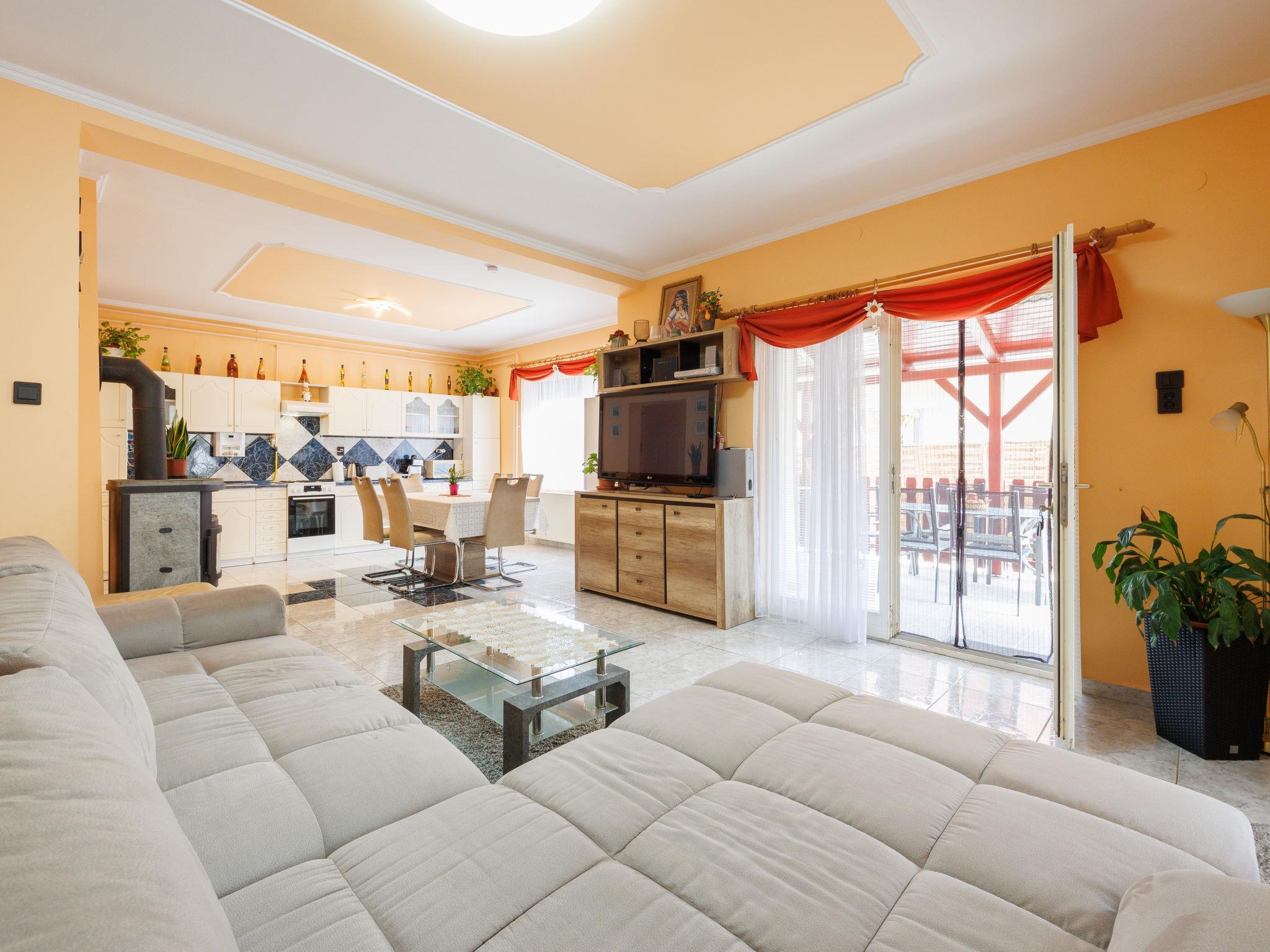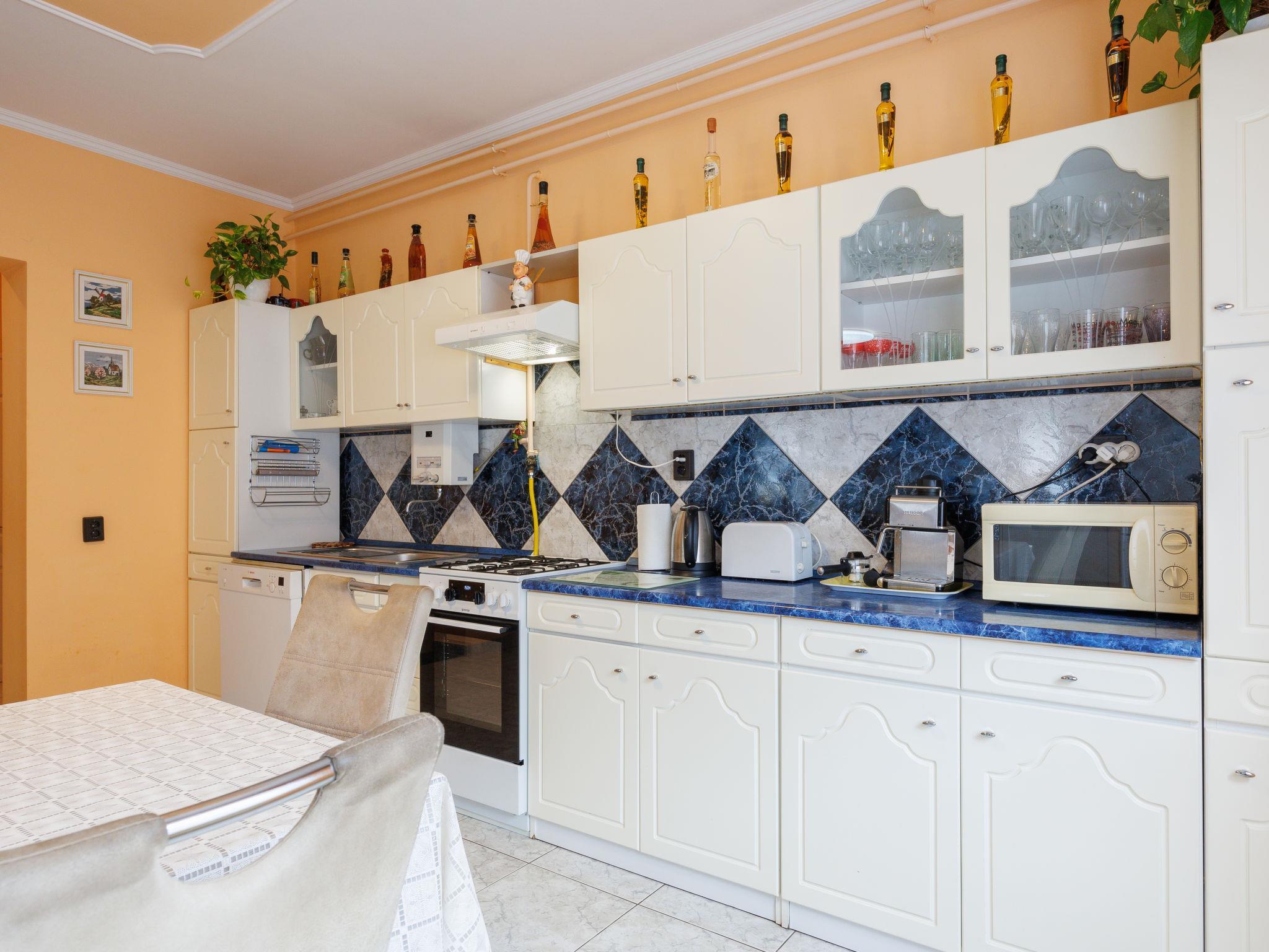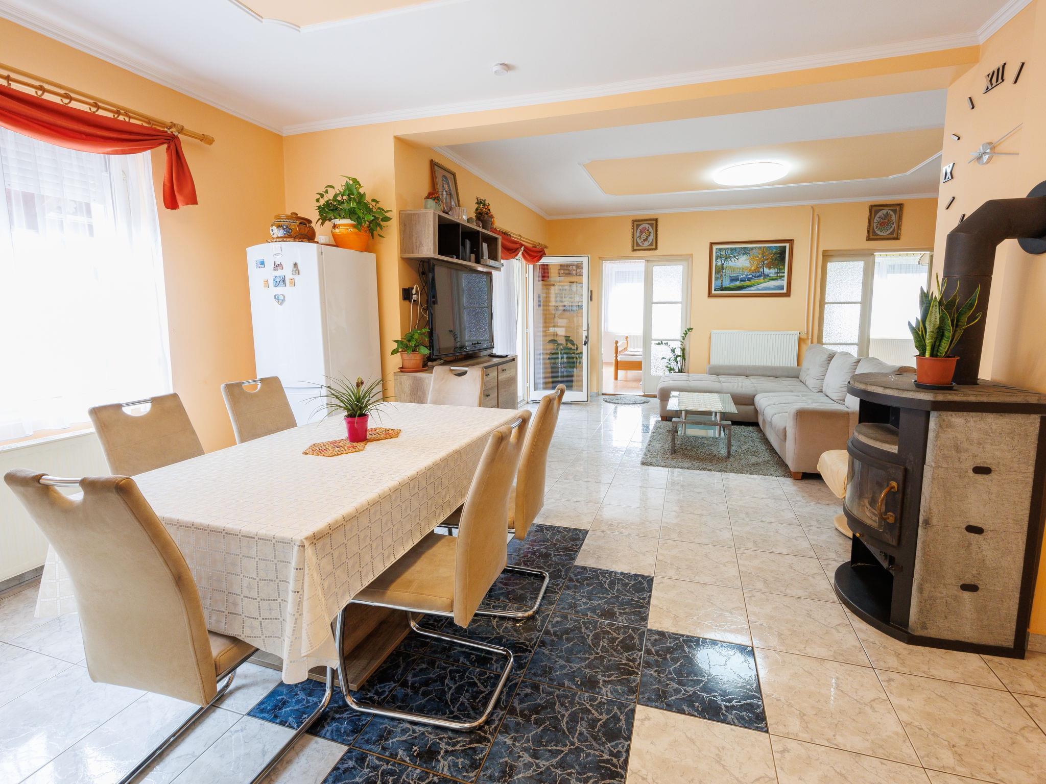 "Gyula", 4-room apartment on the ground floor. Spacious, partly renovated in 2024, comfortable furnishings: open living/dining room with dining table, cable TV, international TV channels and flat screen. Exit to the veranda. 1 large double bedroom with 1 french bed. 2 double bedrooms, each room with 1 french bed. Open kitchen (oven, dishwasher, Gas stove, 4 gas rings, toaster, kettle, microwave, electric coffee machine). Bath/shower, sep. WC. No heating option. Terrace furniture. Facilities: Internet (WiFi). Parking (2 cars). MA23062507