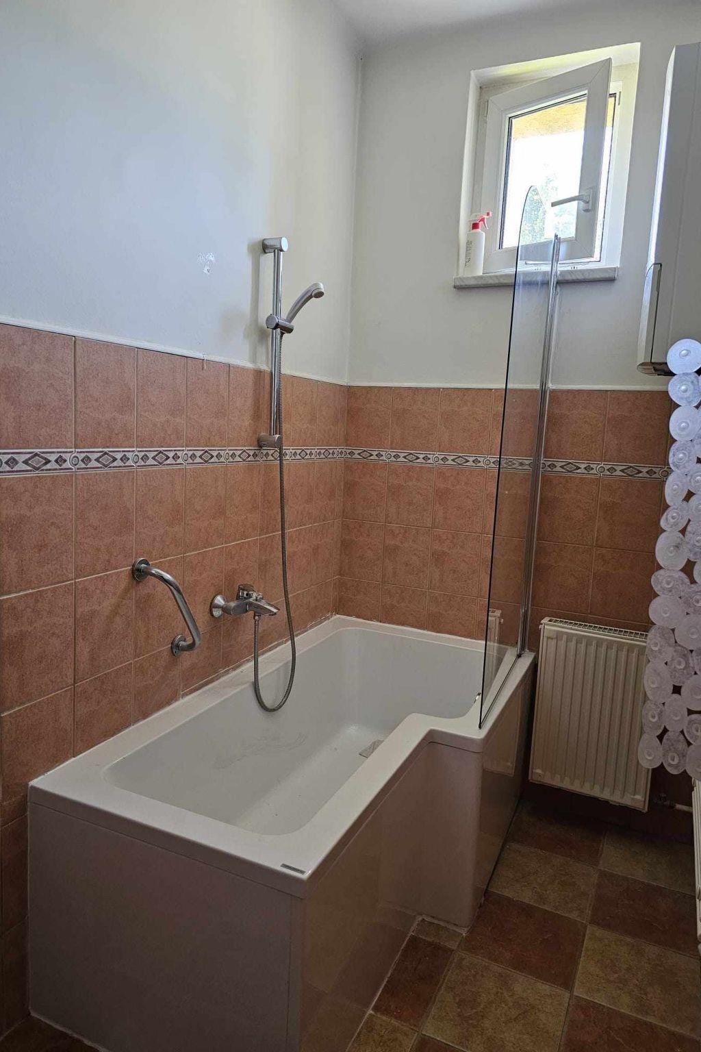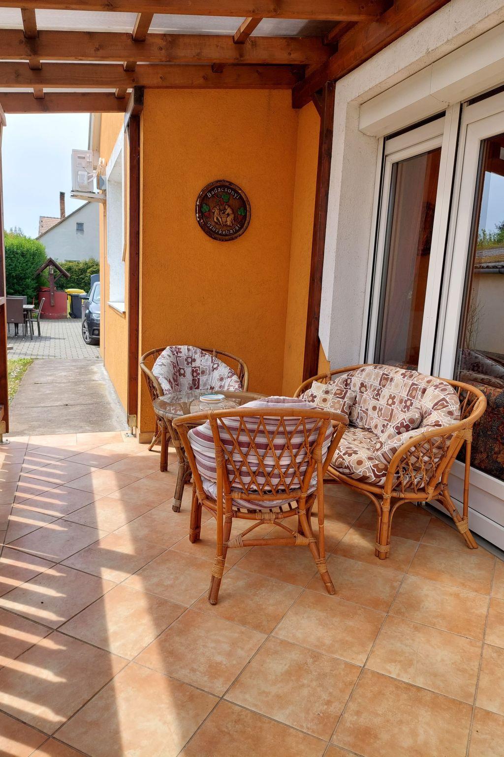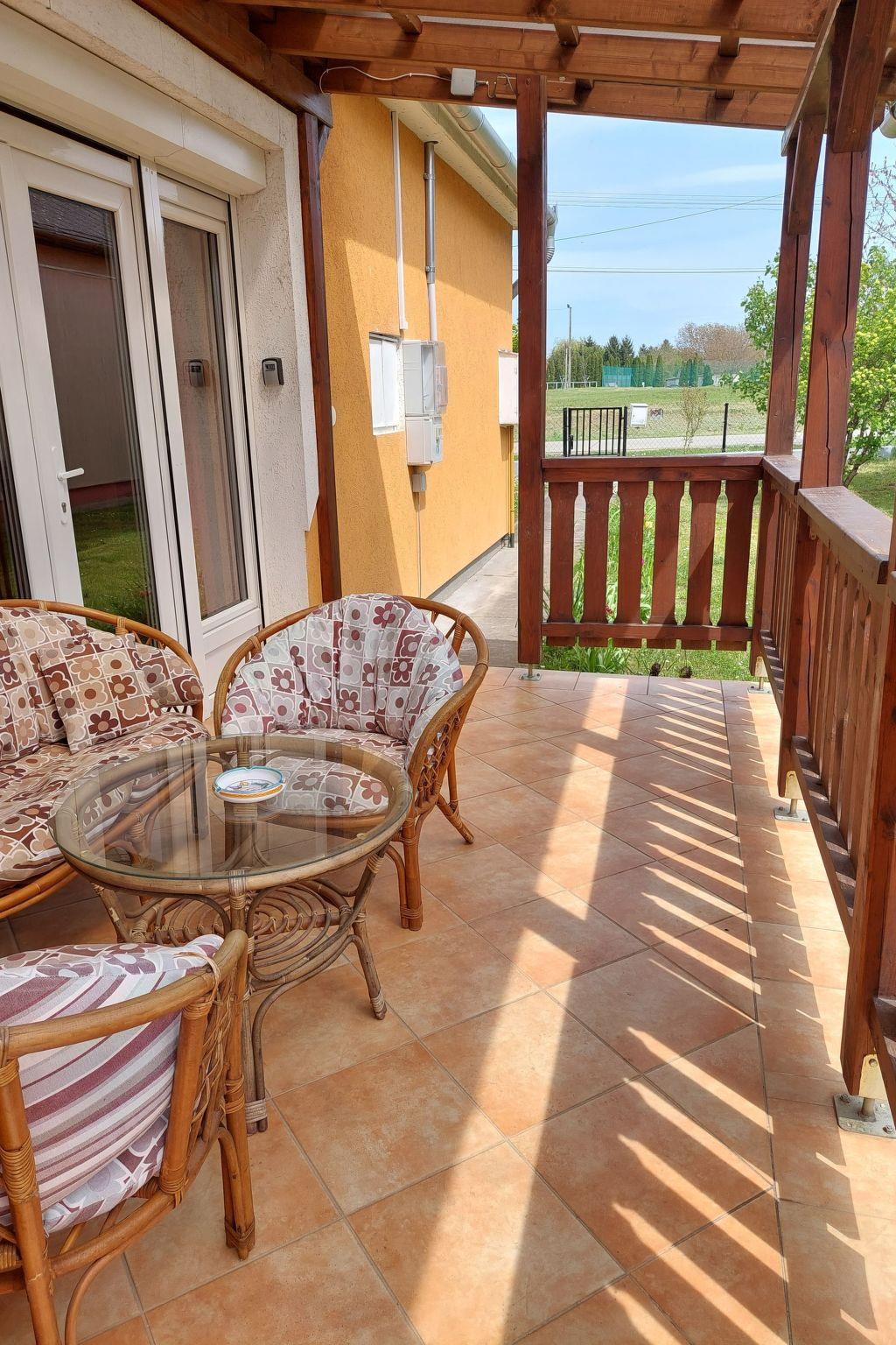 Beautiful holiday home in Balatonszentgyörgy on the south-western shore of the beautiful Balaton for up to 6 people.it is for your sole use.the house is in a 1000 square metre, enclosed garden plot with a partial hedge and completely surrounded by a fence and house wall.with outdoor pool, which will be built this year.pool dimensions 8 x 3 x 1.50 m The pool maintenance and pool service is provided by the landlord, who will be happy to help you with any questions you may have about the area, country and people, money exchange, etc..Garden equipment:Garden table, garden chairs, parasol, sun loungers and barbecueUp to 4 secure parking spaces in the property (outdoor area).The house is designed for up to 6 people and comprises approx. 100 square metres of living space.living units:Winter garden with tarpaulin to openA further small terrace.Kitchen:A kitchen with, 4 burner gas hob, electric oven, extractor bonnet, microwave, coffee machine, toaster and kettle, various crockery and cutlery and a seating area and German SAT TVBathroom:Very nice bathroom, bathtub with shower function, washing area and washing machine, daylight.1 Separate WC,1st bedroom with king-size bed, air conditioning, wardrobe, blackout blinds and German SAT TV2. Bedroom with king-size bed, air conditioning, wardrobe, blackout blinds and German SAT TV3. Bedroom with 2 single beds or pull-out couch, air conditioning, wardrobe, darkenable (roller blinds)1 living room with small seating area and tiled stove.in all 3 bedrooms is German satellite TV.Internet: WLANShopping facilities nearby approx. 100 mAll-year restaurant approx. 100 mBalaton approx. 4 km away Bicycle rental from the landlord on requestIn the photo where the leather suite is shown, a king-size bed is used instead of the leather suiteThe pool opening hours are from 1 May to 30 September Thank you for your interest.