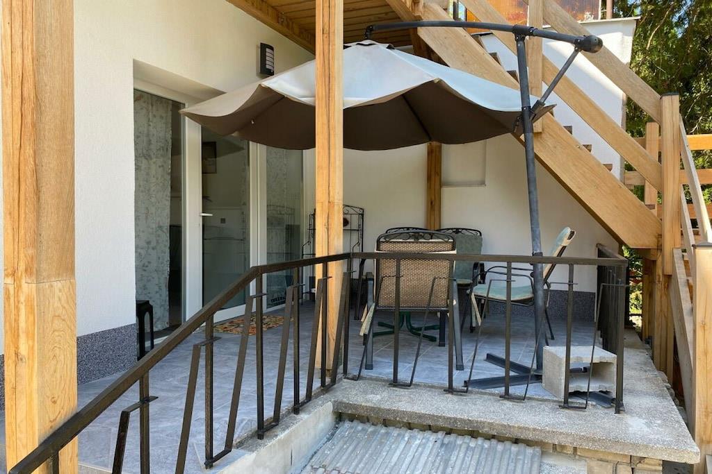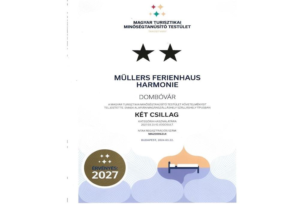 Feriehuset Harmonie ligger i en ferielandsby lige ved siden af Gunaras termiske og wellness-spa. En swimmingpool i haven tilbyder en velkommen forfriskning på varme dage. Feriehuset blev fuldstændig renoveret og attraktivt møbleret i 2025 af sine tyske ejere med stor sans for detaljer. Det tilbyder cirka 75 kvadratmeter boligareal, bestående af to komplette ferielejligheder med separate indgange, der hver har plads til op til tre gæster. Hunde er velkomne. Haven er fuldt indhegnet og hundevenlig.