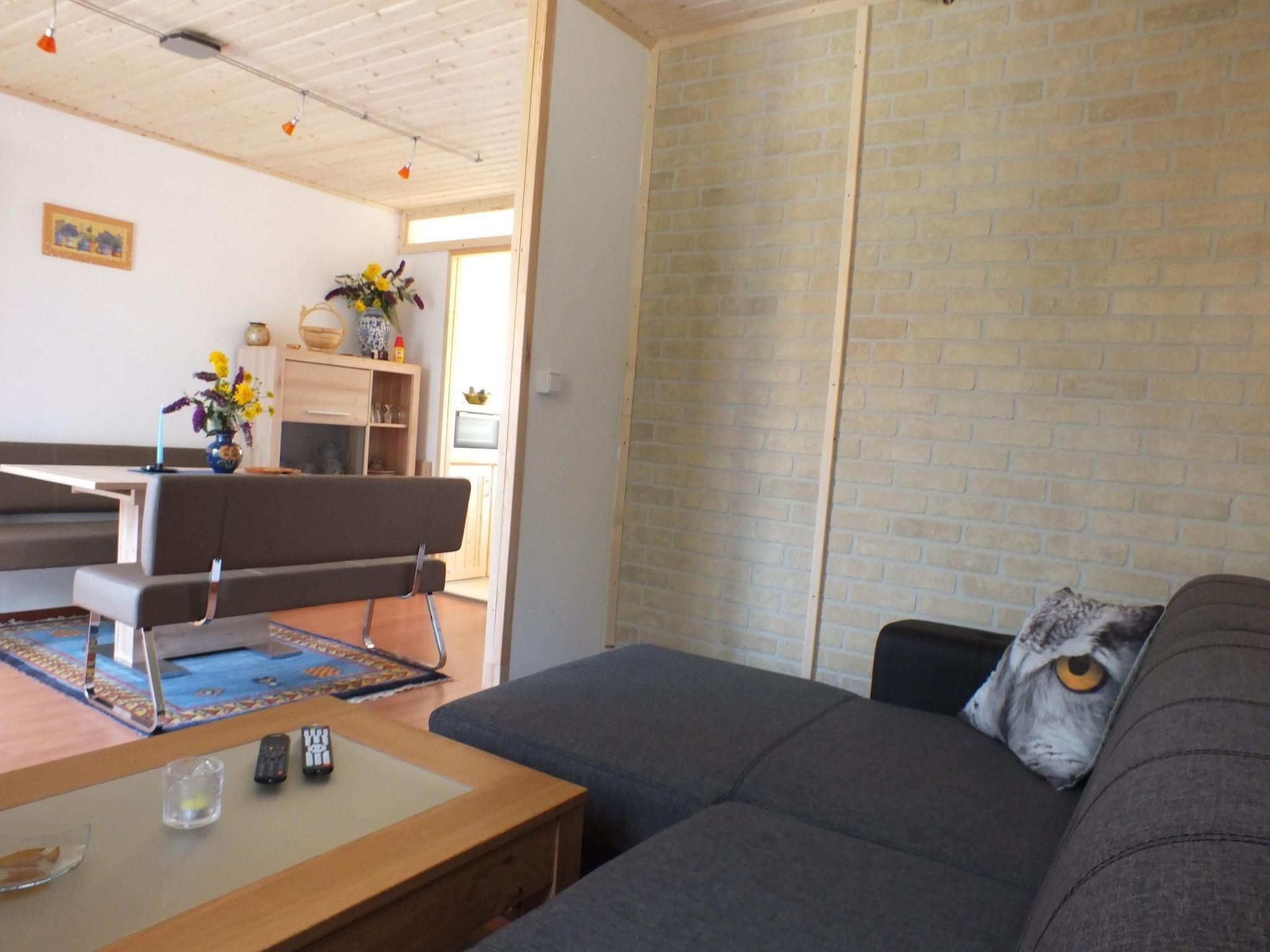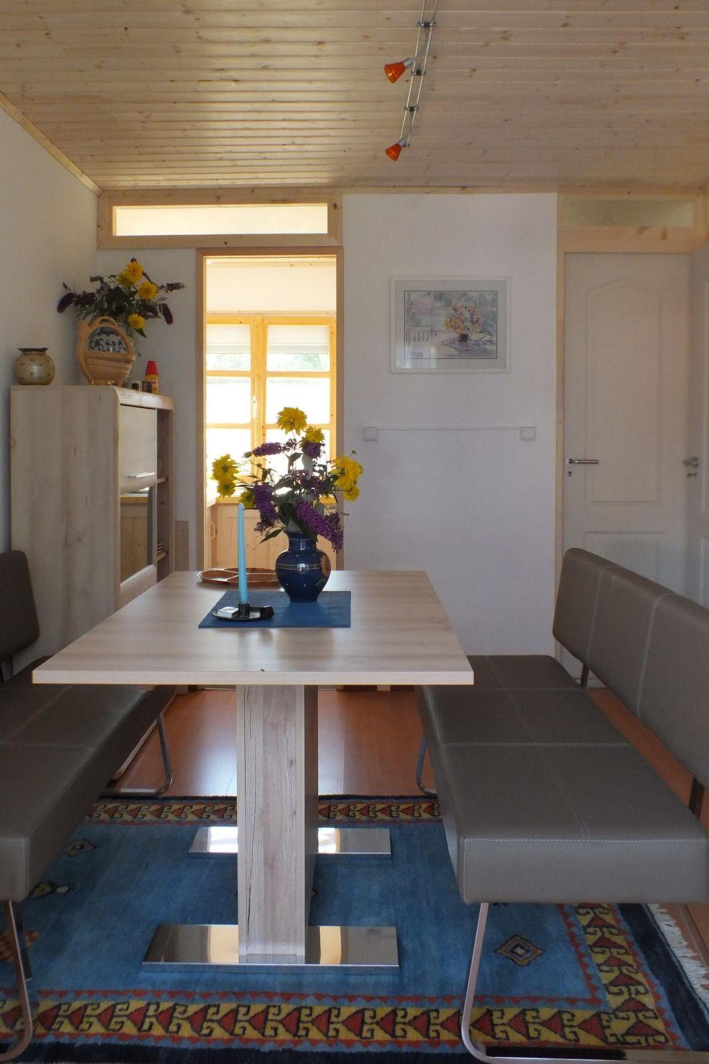 The holiday house fully newly renovated and furnished in 2016 on a 350m² garden site provides 33m² of living space, comprising a bedroom, a cosy living and dining room with a comfortable sofa corner, a separate and fully-equipped cooking niche, and a bathroom with a shower and WC. It can therefoe welcome up to four holiday guests. The little bedroom is furnished with a comfortable box spring bed (140 x 200cm) with one large mattress. After a day trip you can relax in the living room on the comfortable sofa, with the satellite TV (including German channels) providing entertainment in the evening. The sofa corner can easily be converted into a double bed 140cm wide. A dining table invites you to enjoy meals together. The cooking niche enables comprehensive self-catering with two cooking rings, a mini oven, a fridge, a coffee machine, kettle, plenty of crockery, cutlery and cooking utensils. Free bed linen and towels are provided.