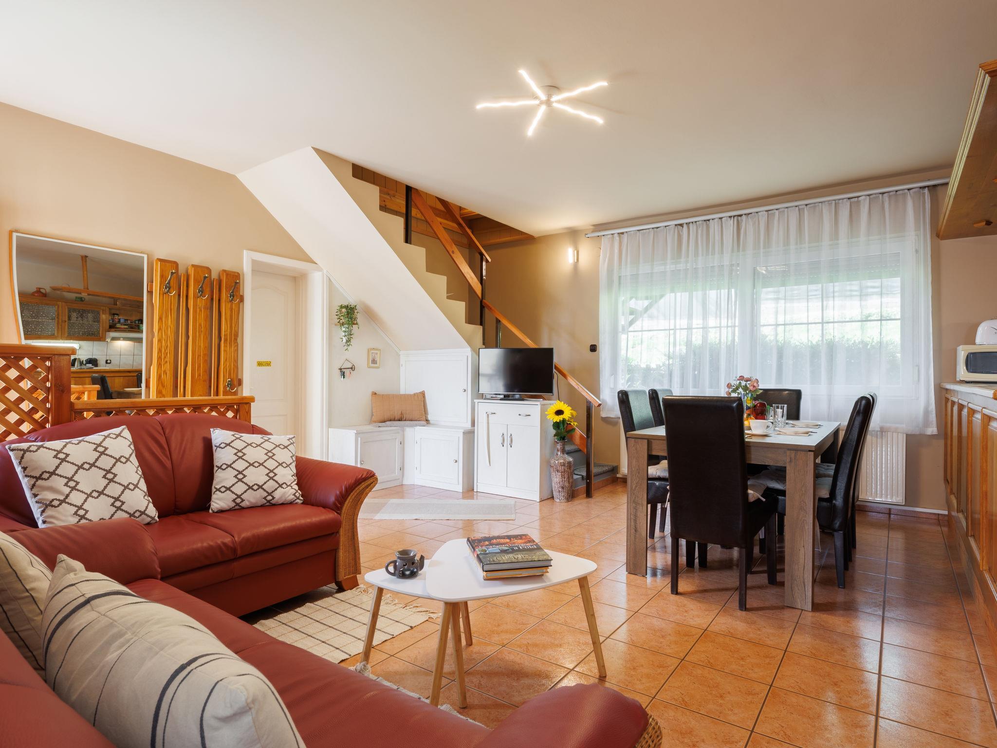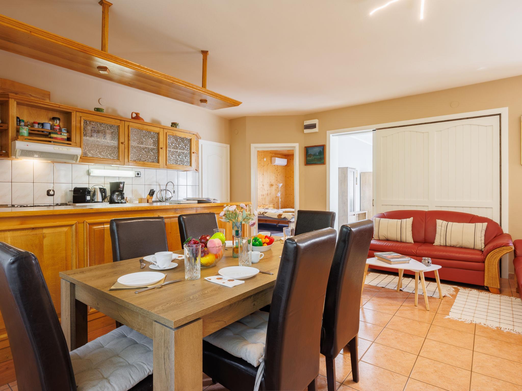 "Baum", 2-room apartment 85 m2, on the ground floor. Comfortable and cosy furnishings: open living/dining room with dining table, cable TV and international TV channels. 1 room with 1 bed and 1 french bed. Exit to the terrace. 1 room with 2 beds. Exit to the terrace. Open kitchen (oven, dishwasher, Gas stove, 4 gas rings, toaster, kettle, microwave, freezer, electric coffee machine). Bath/WC, shower/WC. Heating. Terrace furniture, barbecue (portable), deck chairs. Facilities: washing machine, sauna (extra), iron, mosquito net, children's high chair, baby cot. Please note: private entrance, smoke alarm. MA19006039