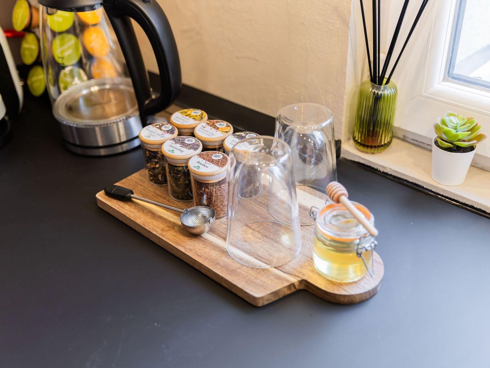 - Coffee & tea bar with organic loose leaf tea and Dolce Gusto