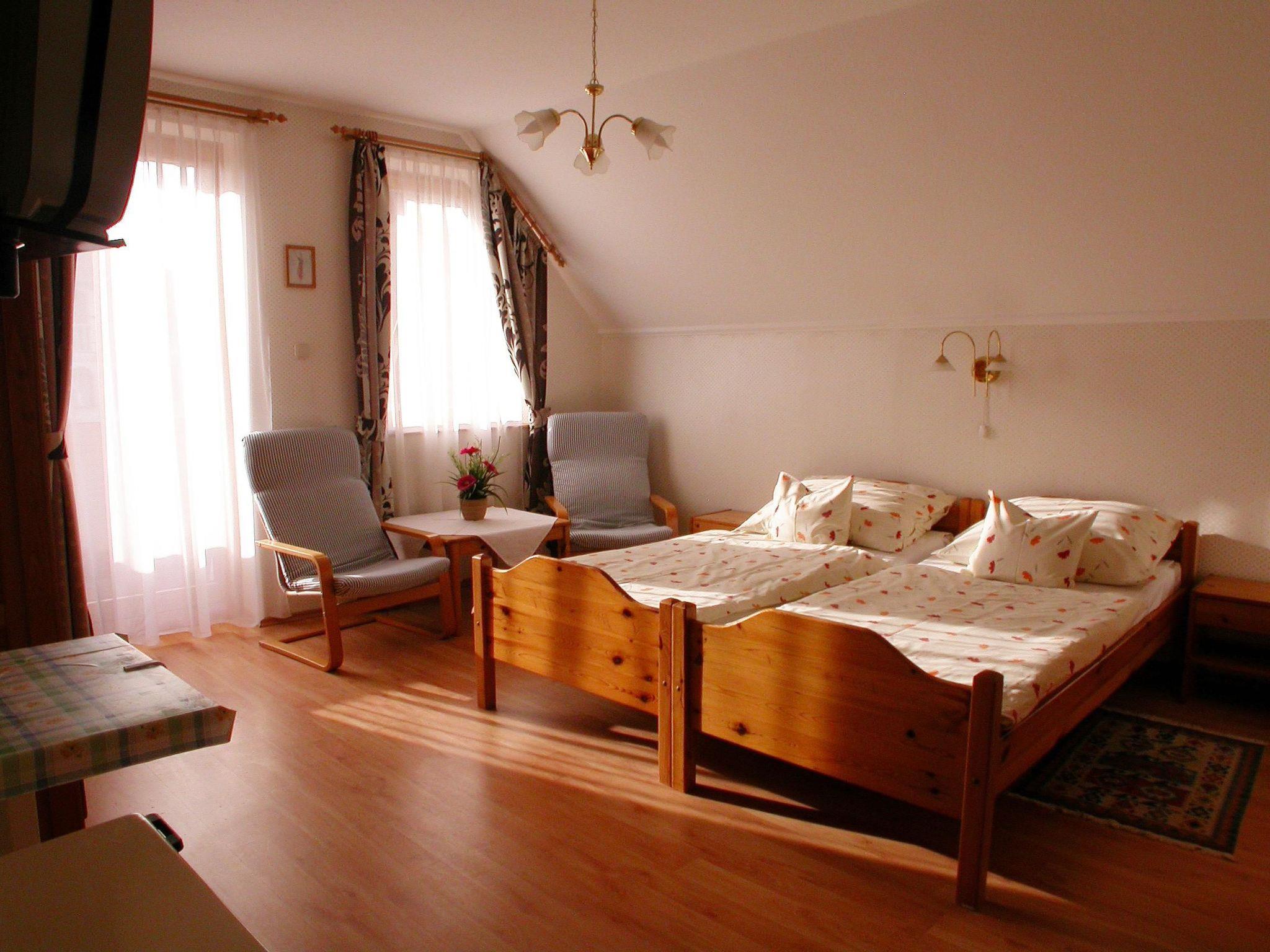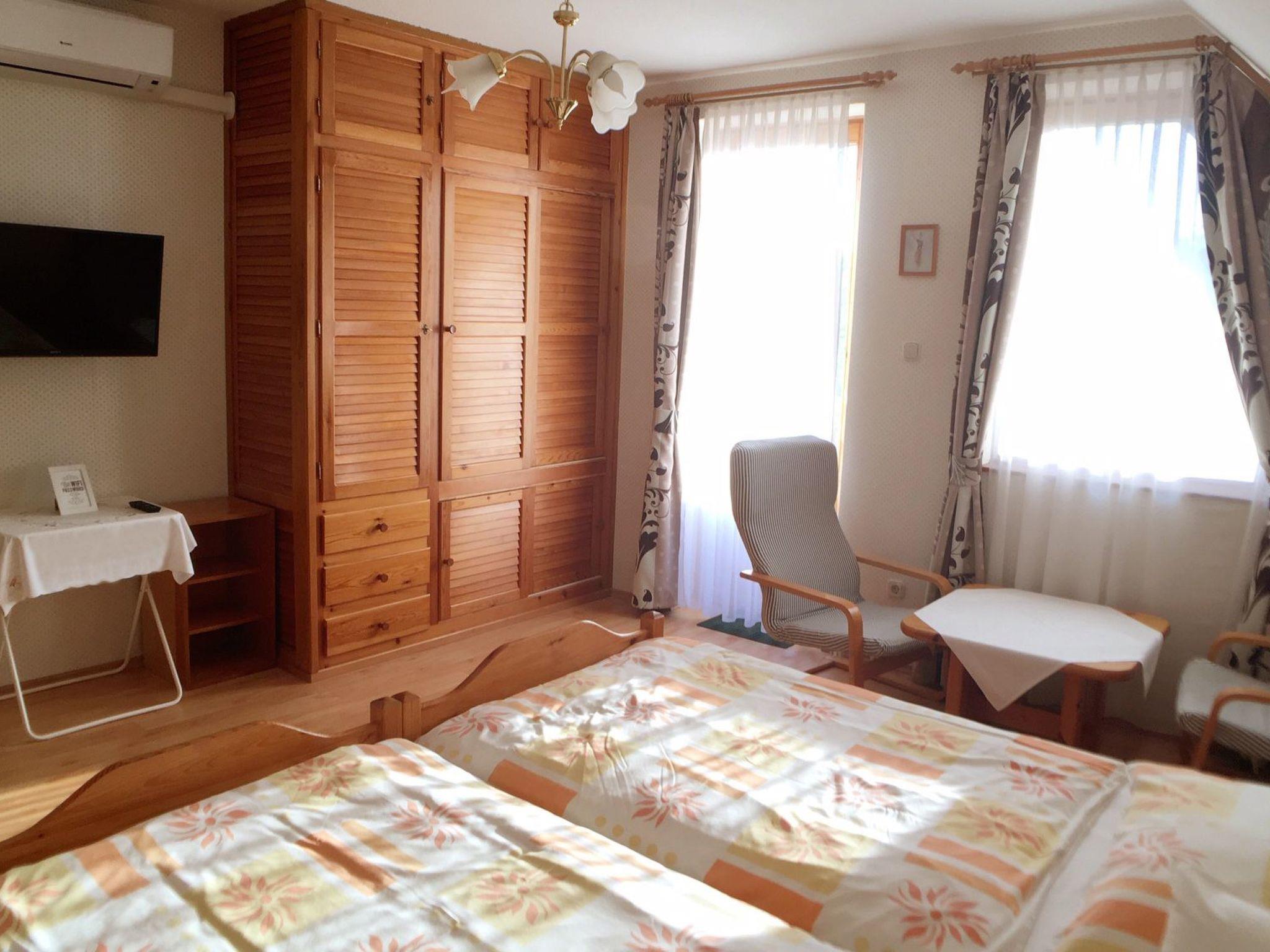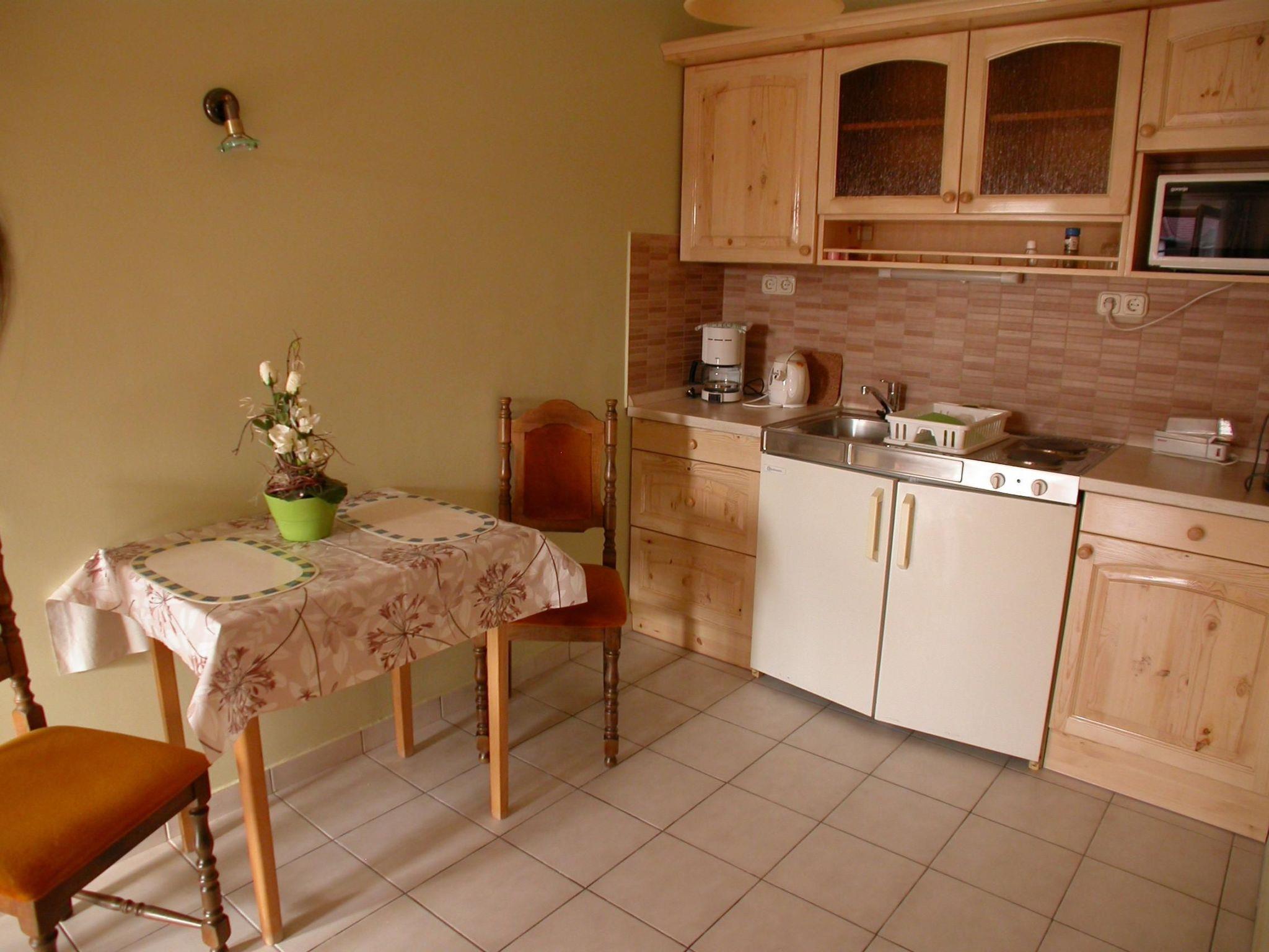 The interior of the holiday flat comprises a practical living/sleeping area with two comfortable single beds (90 x 200 cm each), satellite TV and an adjoining kitchenette. This is equipped with a kitchenette with two hotplates, fridge, microwave, coffee machine, toaster, kettle and egg cooker. There is also a dining table where you can enjoy your home-cooked meals. The modern bathroom has a shower, washbasin and WC to ensure your comfort. In addition, air conditioning is available for an extra charge and free Internet access via WLAN is guaranteed.
