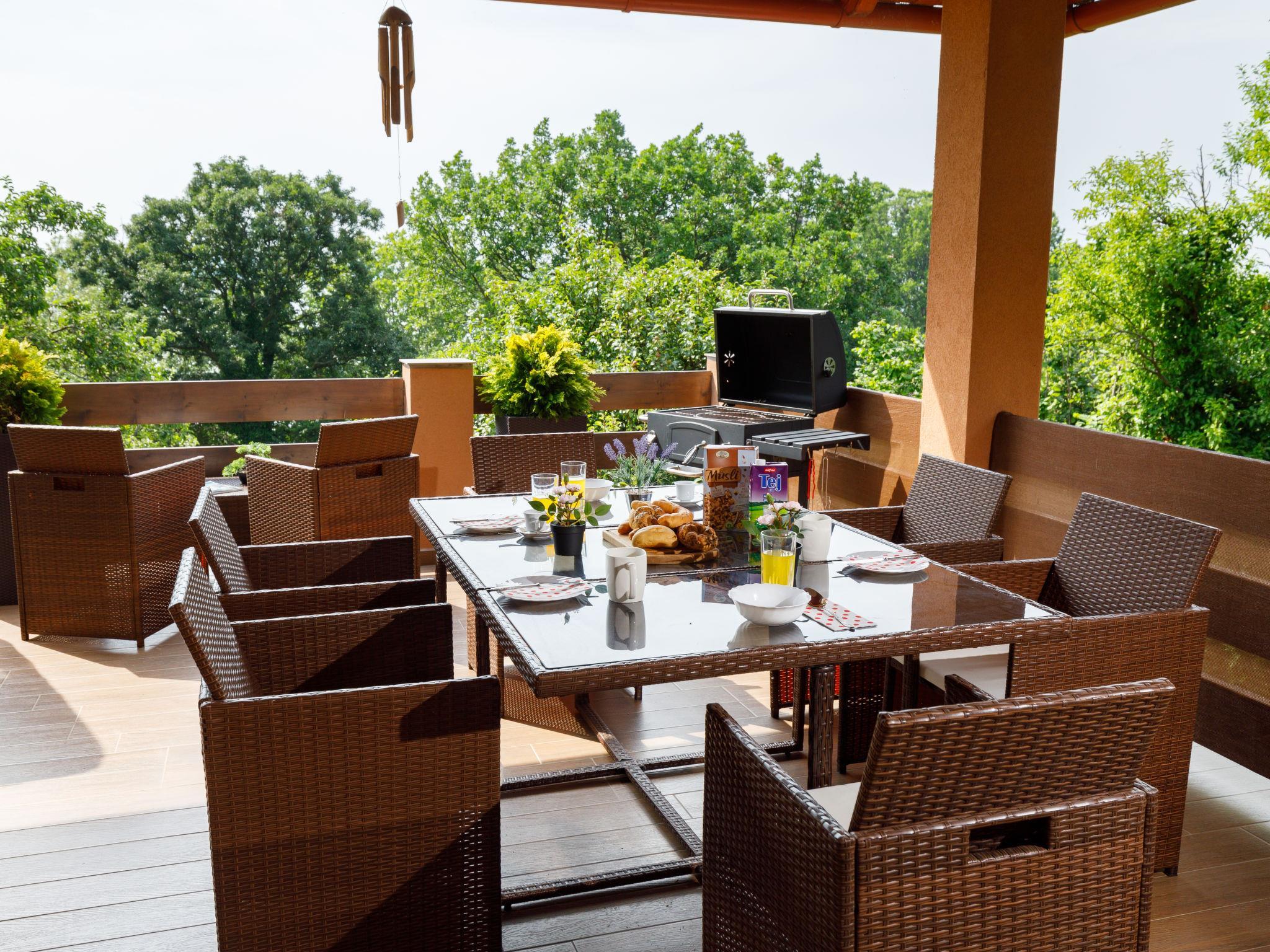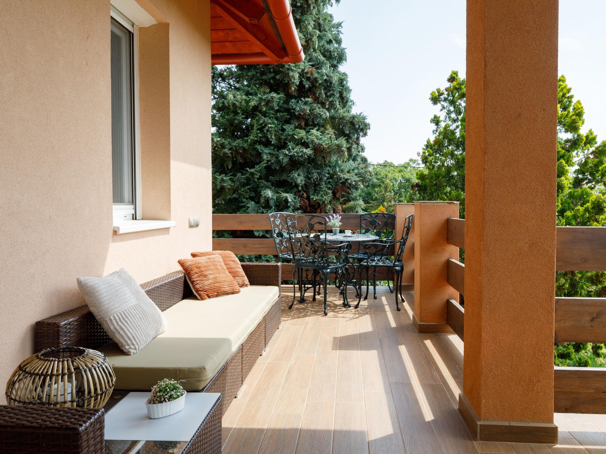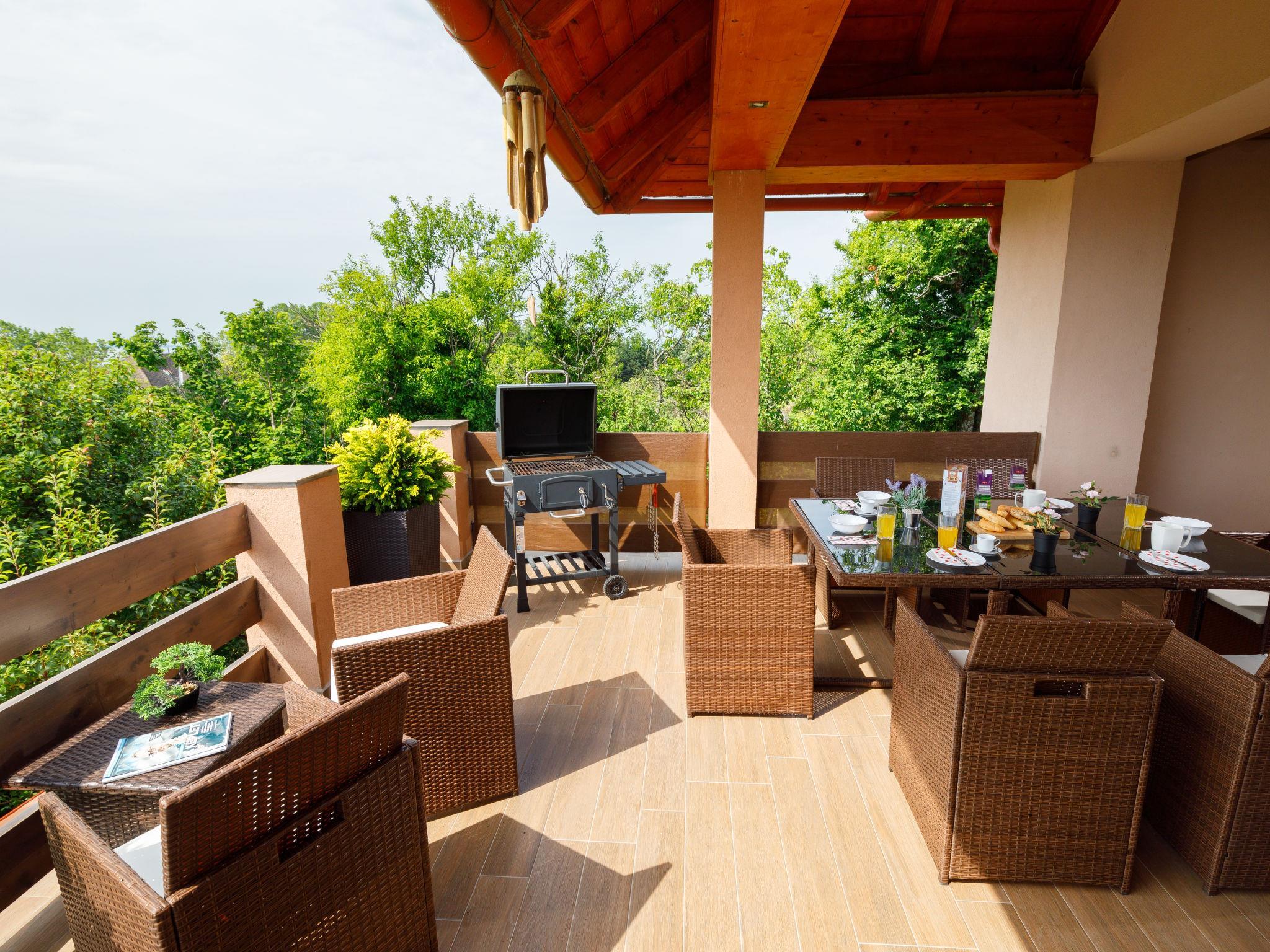"Zen". Spacious, beautiful and stylish furnishings: living/dining room with 1 double sofabed (2 pers.), cable TV. Exit to the terrace. 1 room with 1 french bed (160 cm, length 200 cm), cable TV. 1 room with 1 french bed (180 cm, length 200 cm). Exit to the terrace. Open kitchen (4 ceramic glass hob hotplates, toaster, kettle, microwave, freezer, electric coffee machine). Sep. WC, bath/shower/WC. Floor heating. Large terrace 40 m2. Terrace furniture, barbecue (portable). Beautiful view of the garden. Facilities: children's high chair, baby cot. Internet (WiFi). The owner sometimes lives on the lower floor. MA23060705