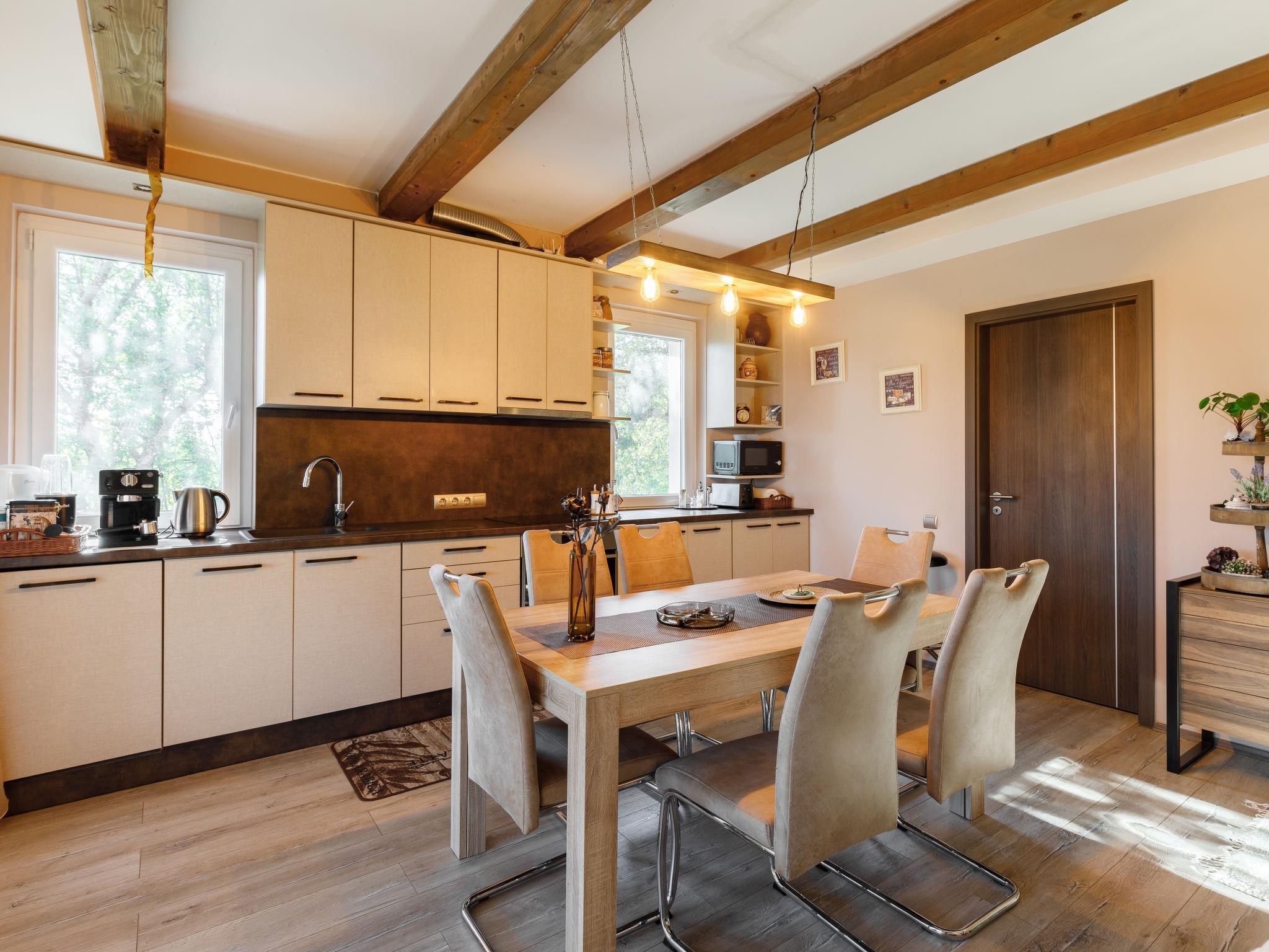 Révfülöp 25 km from Balatonfüred: Modern, beautiful villa, renovated in 2022. In the resort, in a sunny position residential area (villas), 120 m from the lake, 500 m from the beach. For shared use: property 1'800 m2 (fenced), beautiful garden to relax. Private: outdoor shower, garden furniture, barbecue. In the house: table tennis, central heating system. Parking (for 3 cars). Grocery 900 m, supermarket 1 km, restaurant, bar, café 700 m, pedestrian zone 700 m, bicycle rental 1.1 km, railway station 1 km, grass beach 500 m, 500 m, thermal baths "Hévíz" 43 km. Golf course (18 hole) 18 km, tennis 6 km, riding stable 2 km, sports centre 2 km, children's playground 500 m. Nearby attractions: Tihany Abbey 26 km, Annagora Aquapark 27 km, Veszprem Zoo 43 km, Festetics Palace 37 km, Tapolca Lake Cave 17 km. Hiking paths: Badacsony 13 km. In Balatonfüred, 28 km.