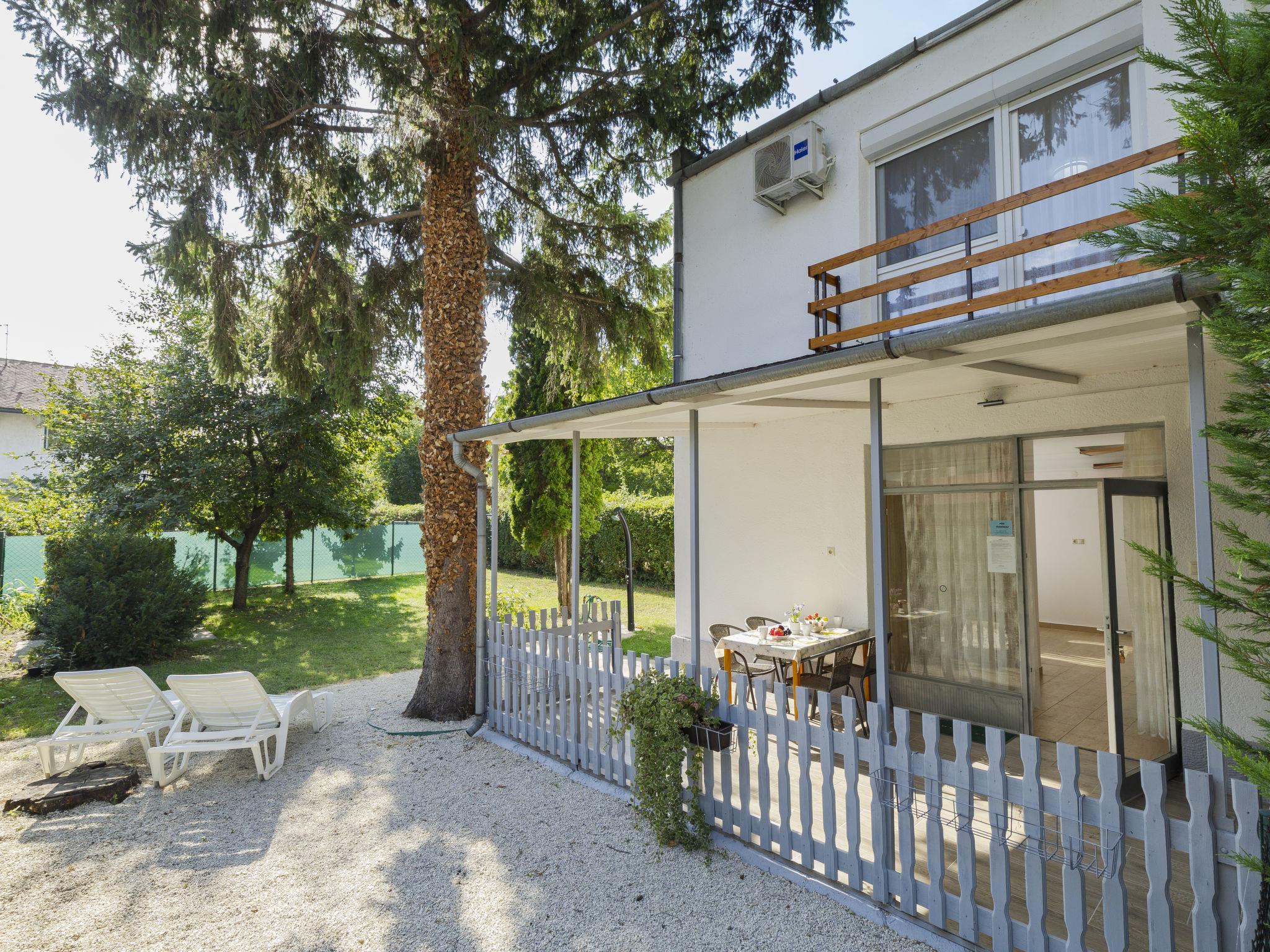 Siófok: Simple, comfortable semi-detached house, 2 storeys in 2020. On the outskirts, in the residential district, 230 m from the lake, 800 m from the beach. Private: property (fenced), garden. Outdoor shower, terrace, garden furniture, barbecue, fireplace. In the house: WiFi, air conditioning. Parking at the house. Grocery 700 m, supermarket 9 km, restaurant 650 m, bicycle rental 700 m, bus stop "Szabadisostó" 800 m, railway station "Szabadisostó" 800 m. Tennis 300 m, riding stable 12 km, cycle lane 300 m, children's playground 750 m. Nearby attractions: Siófok Bella Zoo 3 km, Siófok Bebo Aquapark 4 km, Siófok Water Tower 7 km, Siófok Marina 8 km, Siófok Ferris Wheel 7 km, Sió Rallay Auto Park 16 km. Well-known lakes can easily be reached: Siófok fishing lake 500 m. Ideal for families.