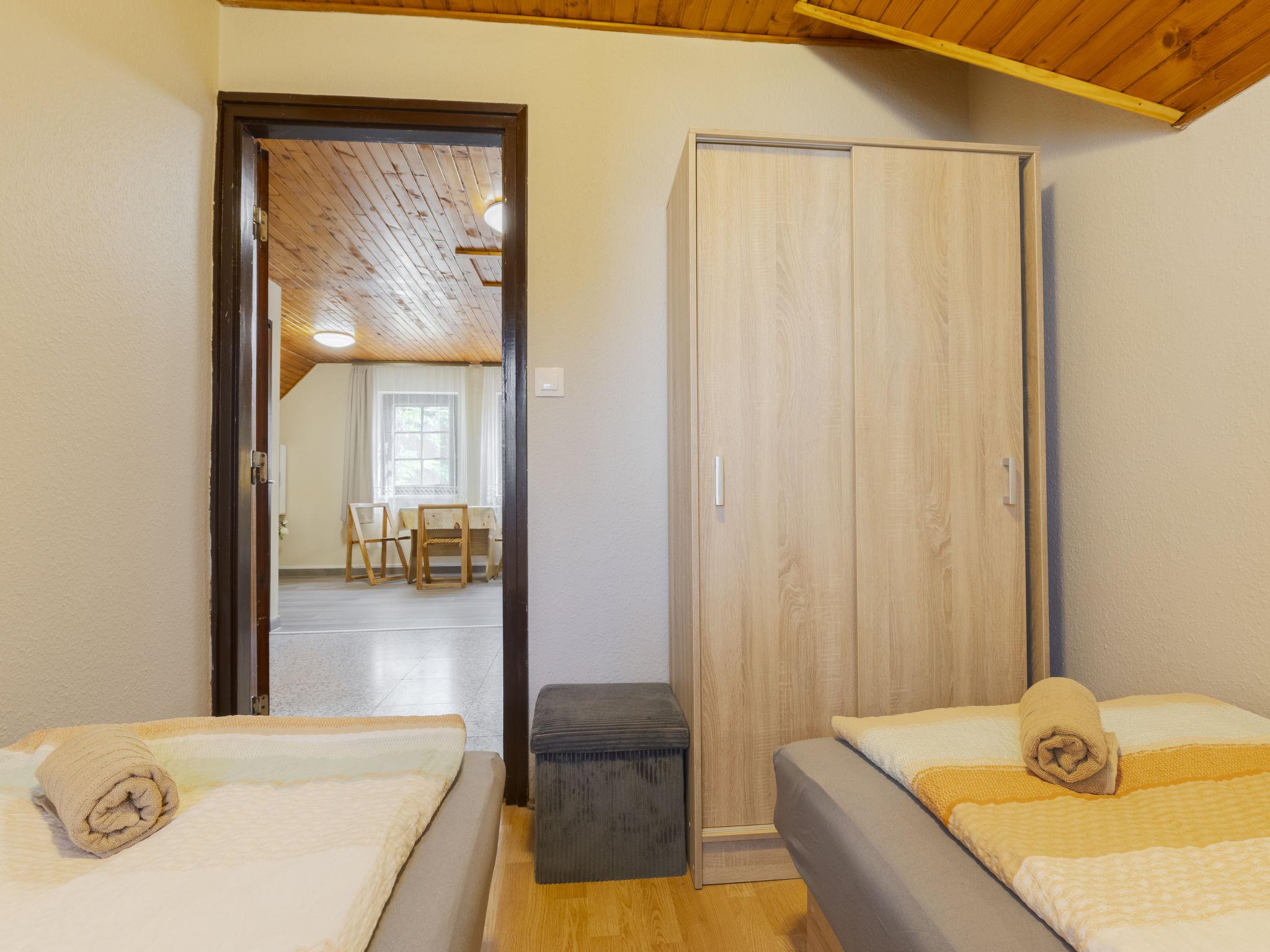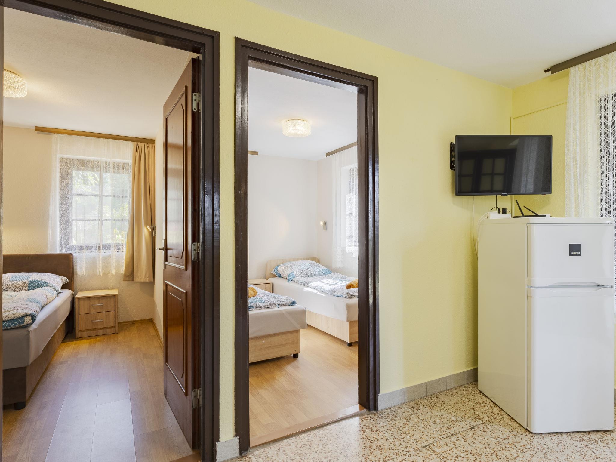 6-room semi-detached house on 2 levels. Spacious, partly renovated in 2025, practical and comfortable furnishings: living/dining room with satellite TV and air conditioning. Exit to the terrace. 1 room with 1 french bed (160 cm, length 200 cm). 1 room with 2 beds (90 cm, length 200 cm). Open kitchen (oven, Gas stove, 4 gas rings, toaster, kettle, microwave, freezer, electric coffee machine). Shower/WC. Air-conditioning. Upper floor: (exterior staircase) living room with 1 sofabed, satellite TV and air conditioning. 2 rooms, each room with 2 beds (90 cm, length 200 cm). (Gas stove, 2 gas rings, microwave) with dining table. Shower, sep. WC. Air-conditioning. Terrace furniture, deck chairs. Facilities: mosquito net, children's high chair, baby cot. Internet (WiFi).