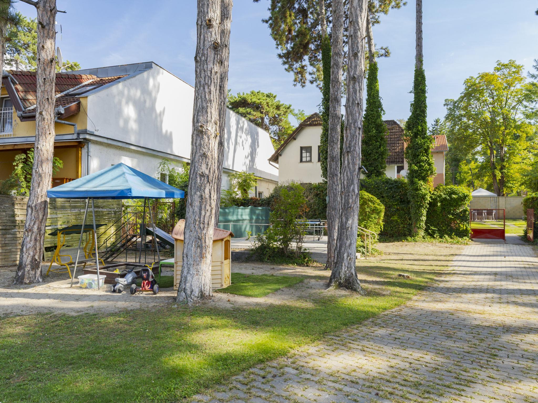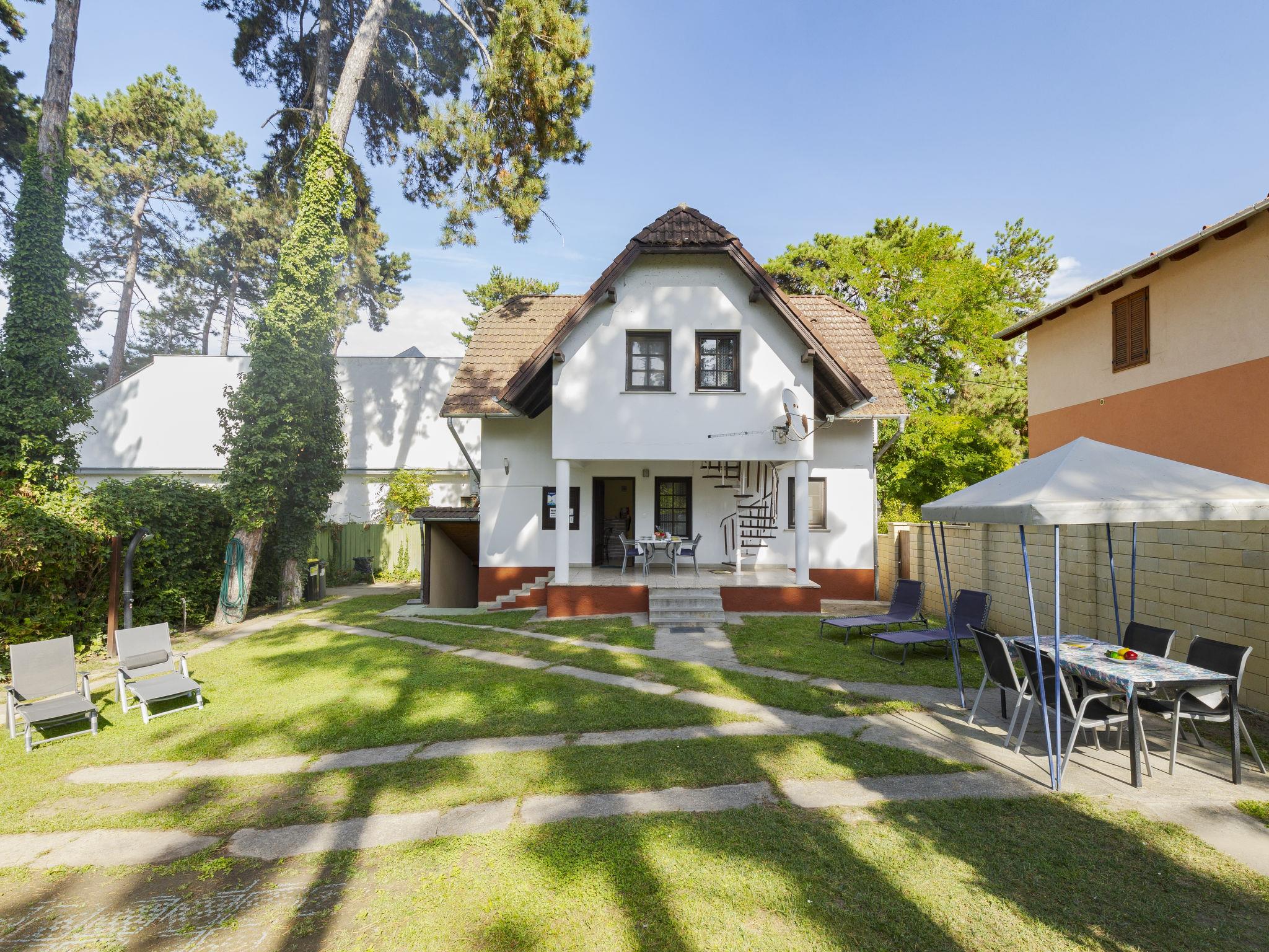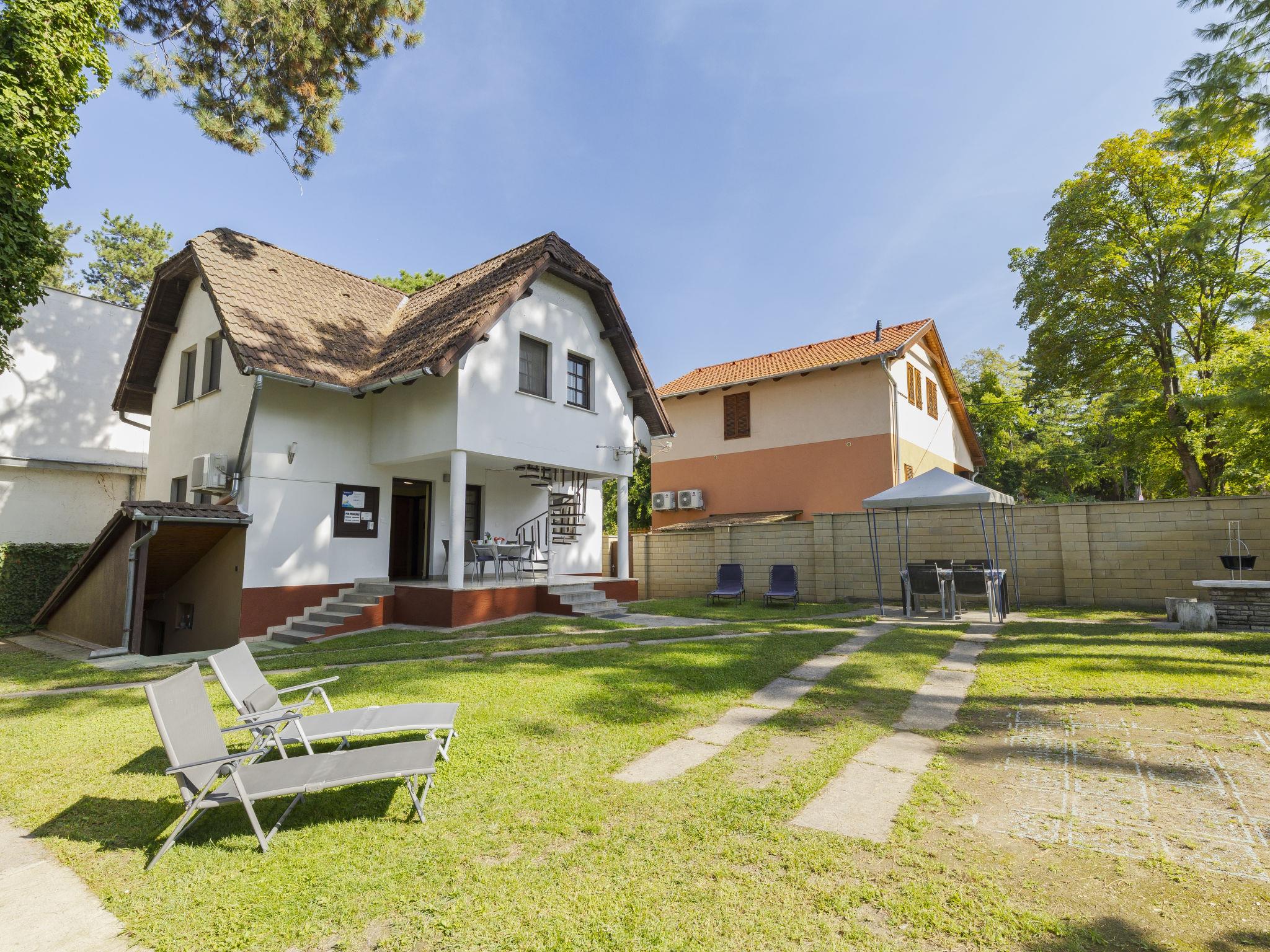 Siófok: Comfortable 2-family house "Leslie", 2 storeys. In the resort, residential area (villas), 220 m from the lake, 400 m from the beach. Private: property (fenced), garden. Outdoor shower, table tennis, terrace, garden furniture, fireplace. In the house: WiFi, air conditioning. Parking on the premises. Grocery 100 m, supermarket 7 km, restaurant 300 m, bicycle rental 2.5 km, bus stop "Siófok (Szabadifürdo)" 650 m, railway station "Szabadifürdo" 500 m. Marina 5 km, tennis 2 km, riding stable 13 km, cycle lane 500 m, children's playground 950 m. Nearby attractions: Siófok Bella Zoo 2 km, Siófok Bebo Aquapark 1.6 km, Siófok Ferris Wheel 4 km, Siófok Water Tower 5 km, Bamboo Wakeboard 350 m, Siófok-Sostó Fishing Lake 3 km. Please note: baby equipment. Groups of teenagers on request only. Railway line closeby 100 m from the property.