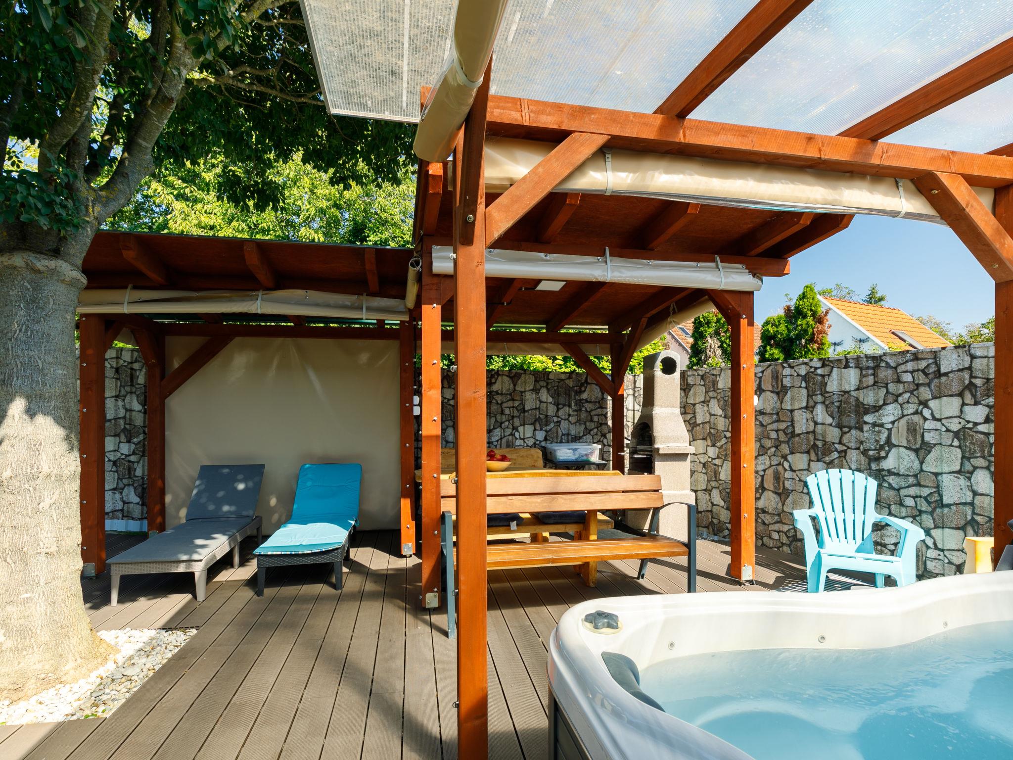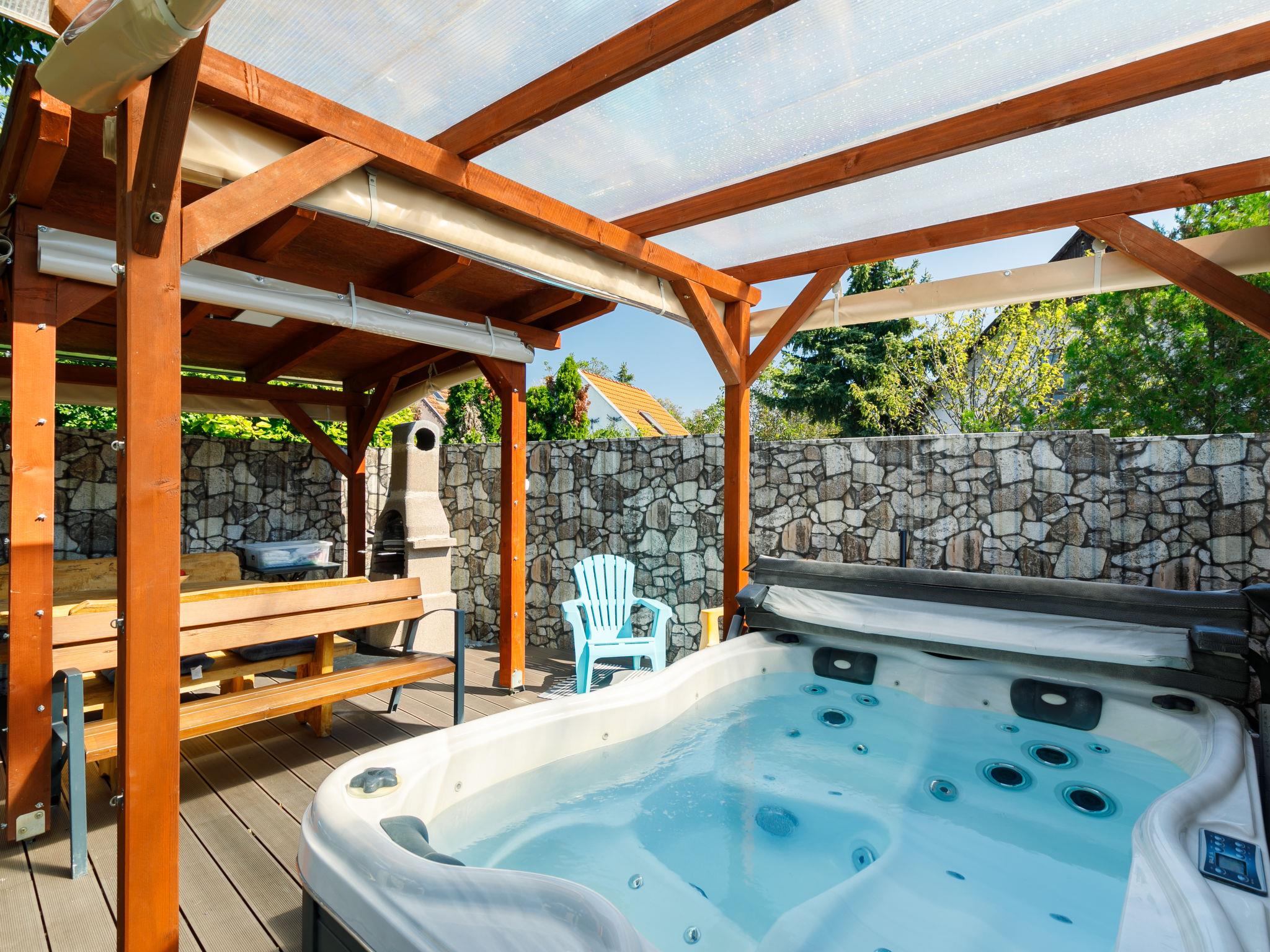 Siófok Sóstó 3 km from Siófok: Small, cosy semi-detached house "Particia", 2 storeys in 2023. In a quiet position, 700 m from the lake, 700 m from the beach. Private: property (fenced). Hot tub, garden furniture, barbecue. In the house: WiFi, air conditioning, washing machine. Roofed, parking at the house. Grocery 650 m, supermarket 10 km, restaurant 450 m, bakery 450 m, bicycle rental 2 km, railway station 800 m, grass beach 700 m, thermal baths "Igal" 65 km. Surf school 8 km, sailing school 7 km, tennis 850 m, riding stable 12 km, cycle lane 750 m, children's playground 700 m, fishing possibilities 1 km. Nearby attractions: Siófok-Sóstó Fishing Lake 1 km, Siófok Bella Zoo 2 km, Siófok Ferris Wheel 6 km, Sió Rally Car Park 15 km, Bebo Aquapark 3 km, BalatoniBob Theme Park 30 km.