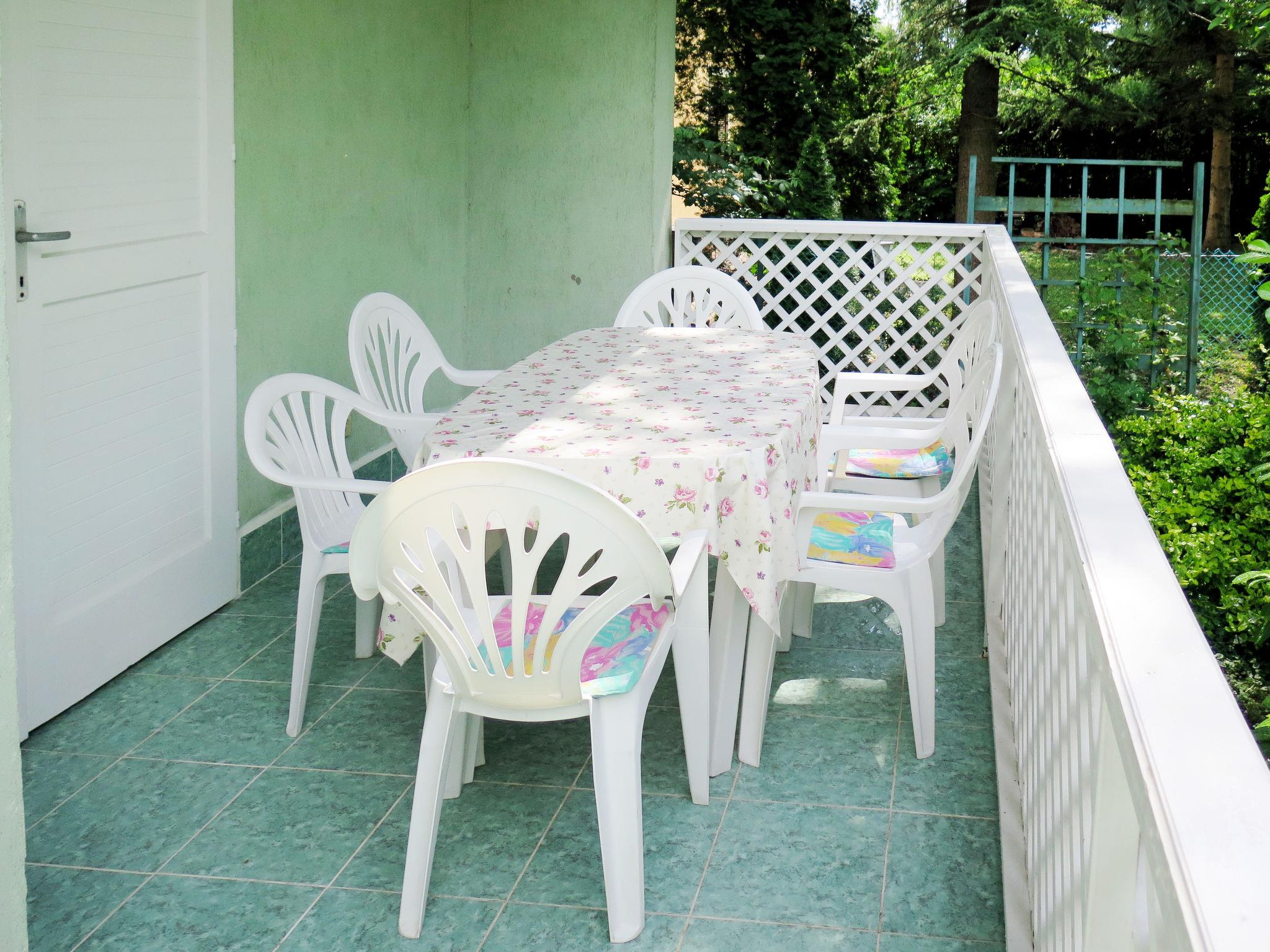 Siófok: Semi-detached house "Elisabeth". 400 m from the centre of Sosto, 6 km from the centre of Siofok, in the residential district, 500 m from the lake, 650 m from the beach. Private: property 200 m2 (fenced) with trees, meadow, parking (for 2 cars) on the premises. Shop, restaurant 400 m, grass beach 500 m. Owner lives in separate semi-detached house.