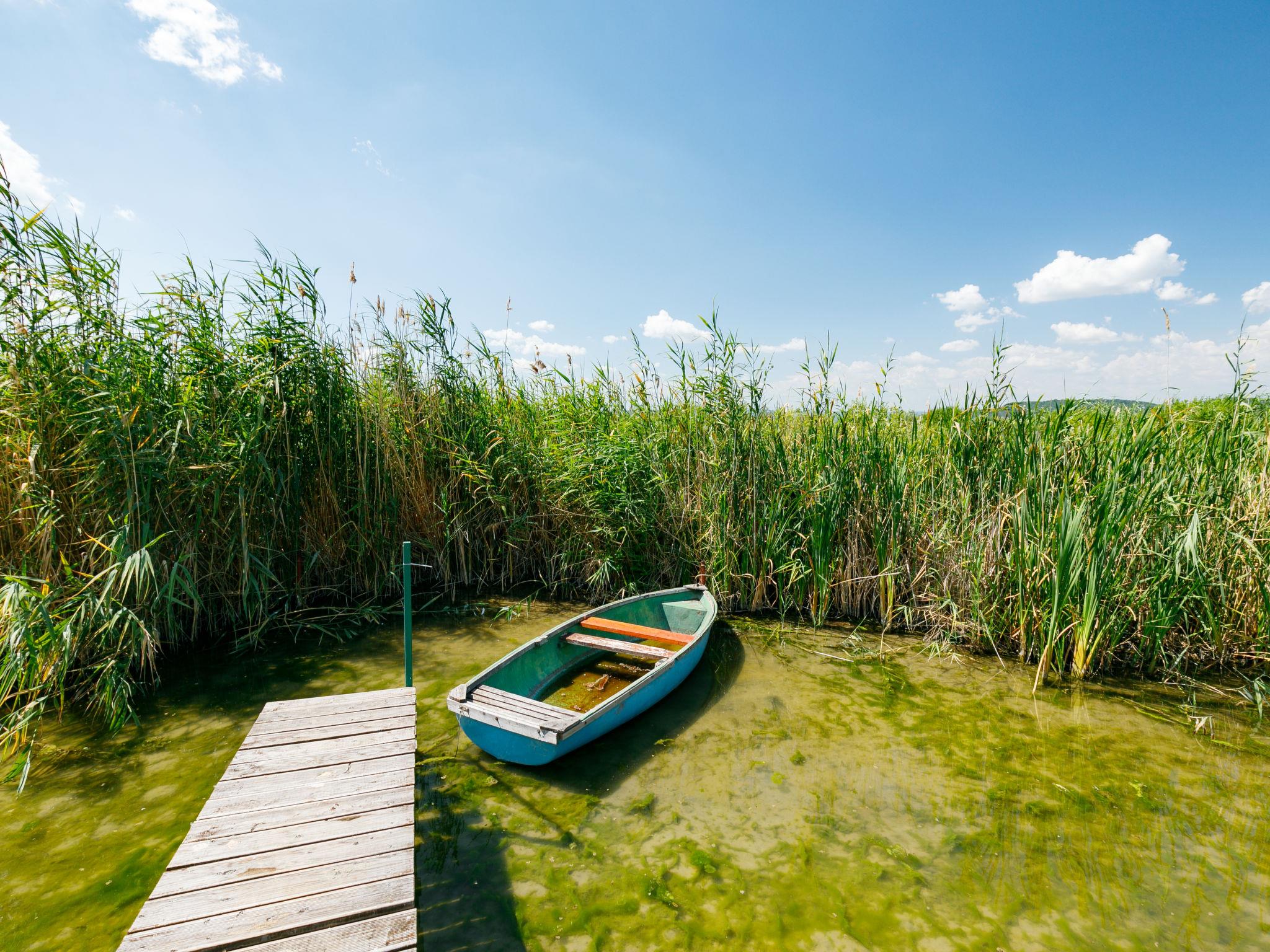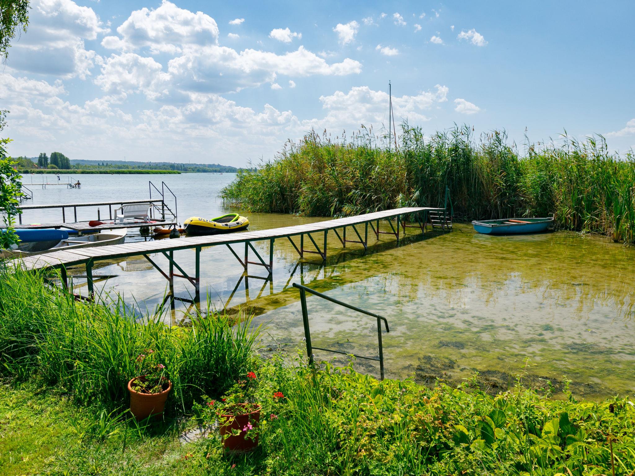 "Schilf", 3-room apartment 60 m2, on the upper floor. Simple and cosy furnishings: living/dining room with satellite TV and fan. 1 room with 2 beds and air conditioning. Exit to the balcony. 1 room with 2 beds. Exit to the balcony. Small kitchen (2 hot plates, toaster, kettle, microwave, electric coffee machine). Shower, sep. WC. No heating option. Parquet floors. Balcony, terrace. Terrace furniture, balcony furniture, barbecue (portable), deck chairs. View of the lake. Facilities: safe, children's high chair, baby cot (extra). Internet (WiFi). Parking (1 car). Please note: non-smokers only.