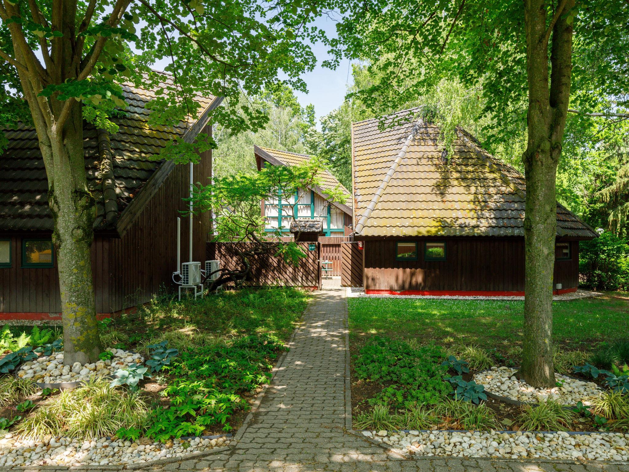 "Átrium 5 fos", 3-room bungalow 61 m2. Wooden furniture furnishings: living/dining room with 1 sleeping facility, satellite TV and radio. Exit to the terrace. 1 small room with 2 beds. Gallery with 1 double bed (180 cm, length 200 cm). Open kitchen (2 hot plates, microwave). Bath/WC. No heating option. Terrace 15 m2. Terrace furniture. Facilities: telephone. Internet (WiFi). Parking (fenced). Suitable for families. Maximum 1 pet/ dog allowed. Instead of an enclosed bedroom, some sleeping areas are located in an open-plan area (gallery, alcove, etc.). SZ19000220