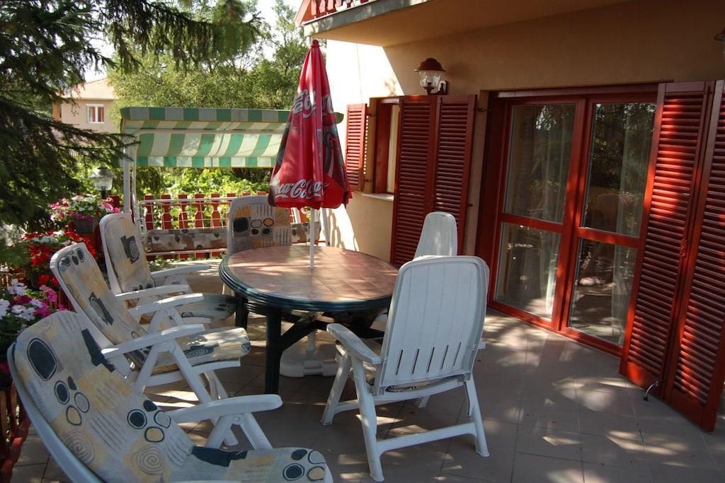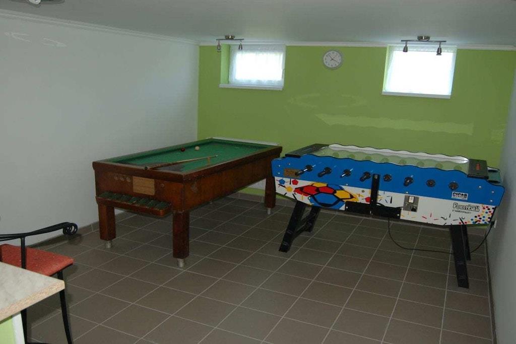 Gemütlich eingerichtetes Ferienhaus in sonniger Lage, an ein Weinfeld grenzend. Helle, schöne und freundliche Einrichtung. Wohnzimmer mit amerikanischer Küche, Geschirrspüler, Nespresso Kapseln-Kaffeemaschine. 109 cm Samsung UHD Smart-TV, Waschmaschine, Zentralheizung. Gepflegtes, großes Grundstück mit Rasenflächen und Blumen. Ovaler Pool (ca. 7,0 x 3,5 m, Tiefe 1,20 m), Sonnenschirm, Sonnenliegen, überdachter Freisitz mit Gartenmöbeln sowie gemauerter Gartengrill stehen zur Verfügung. Im Kellergeschoss 3 weitere Räume stehen zur Verfügung mit Tischtennis, Rex und Tischfußball (Kicker). Parkmöglichkeiten auf dem Grundstück für 1 PKW. 1-2x pro Woche Poolpflege durch den Besitzer.