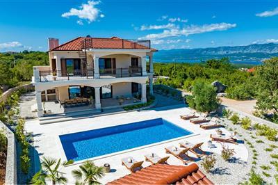 Se frem til en spektakulær boligoplevelse i denne luksusvilla med fantastisk panoramaudsigt over havet. Velkommen til denne store villa på den solrige ø Krk, hvor I kan se frem til en ferie i sus, dus og masser af komfort. Ikke bare står den på luksus og