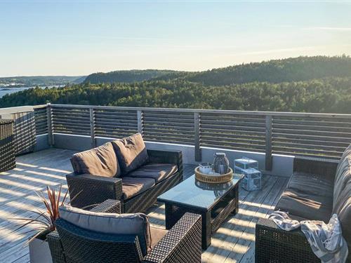 5,0Velkommen til dette unikke, fantastiske feriehus med opvarmet pool, sauna og tagterrasse. Dette moderne feriehus ligger smukt på Bjørkøya, lige uden for Brevik. I kan nå ud til øen med passagerskib eller bilfærge. Feriehuset er en lillle perle med lækre