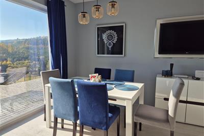 Glæd jer til en afslappende ferie i dette feriehus, som har panoramaudsigt over søen. Huset ligger på en stor naturgrund ved Mielno-søen. Det er hyggeligt og indbydende indrettet, så her vil I føle jer hjemme fra dag ét. Gulvvarmen på badeværelset sørger for